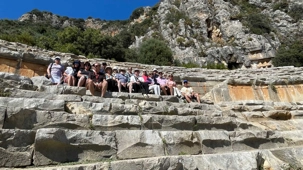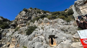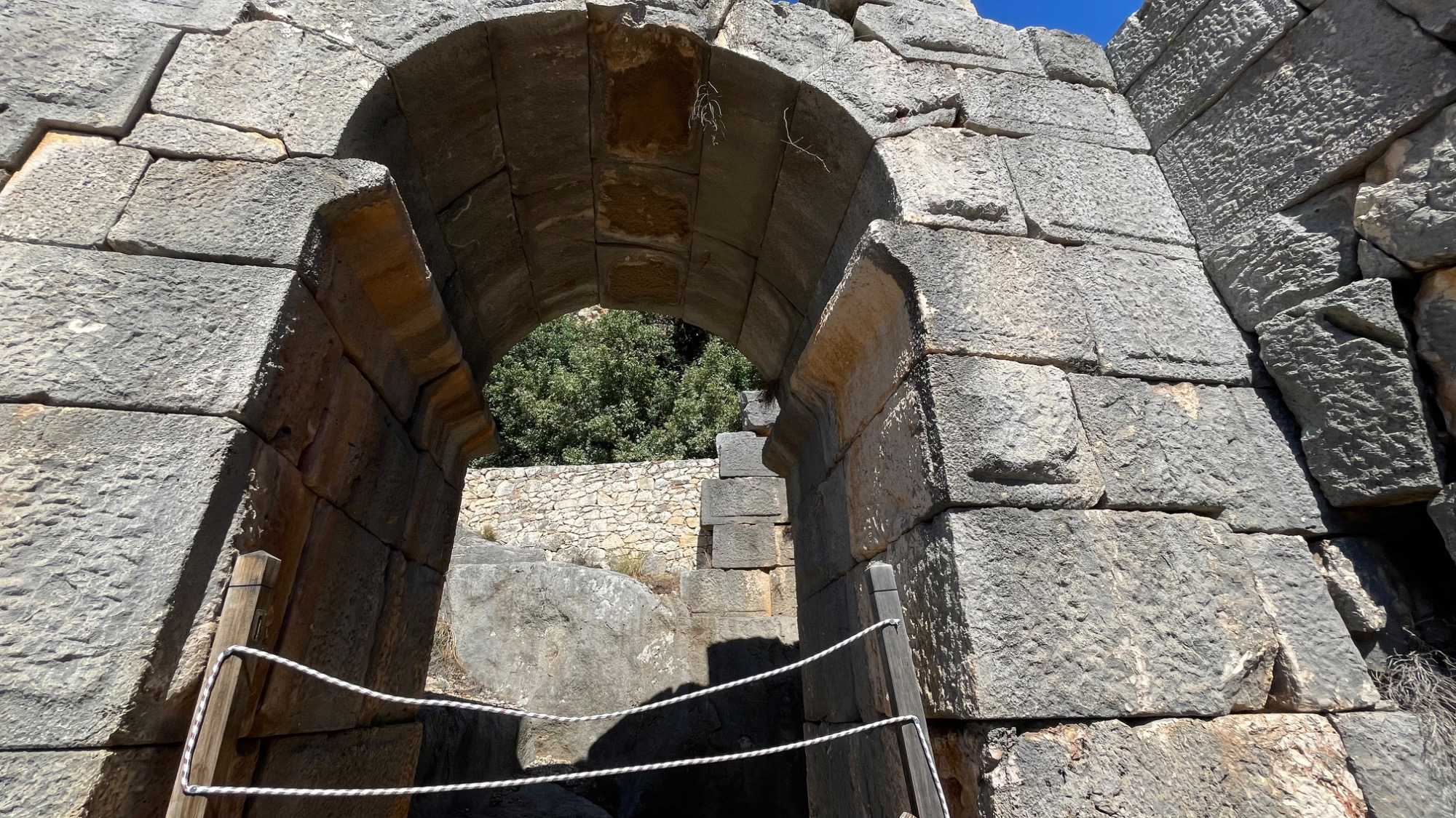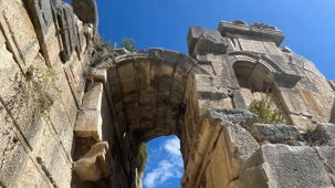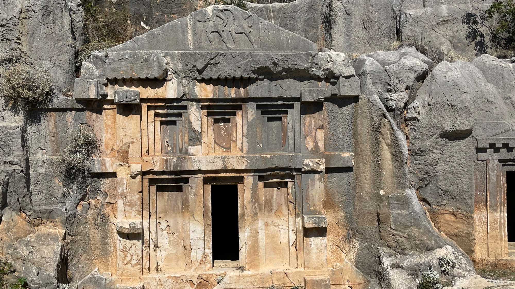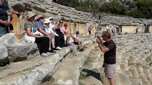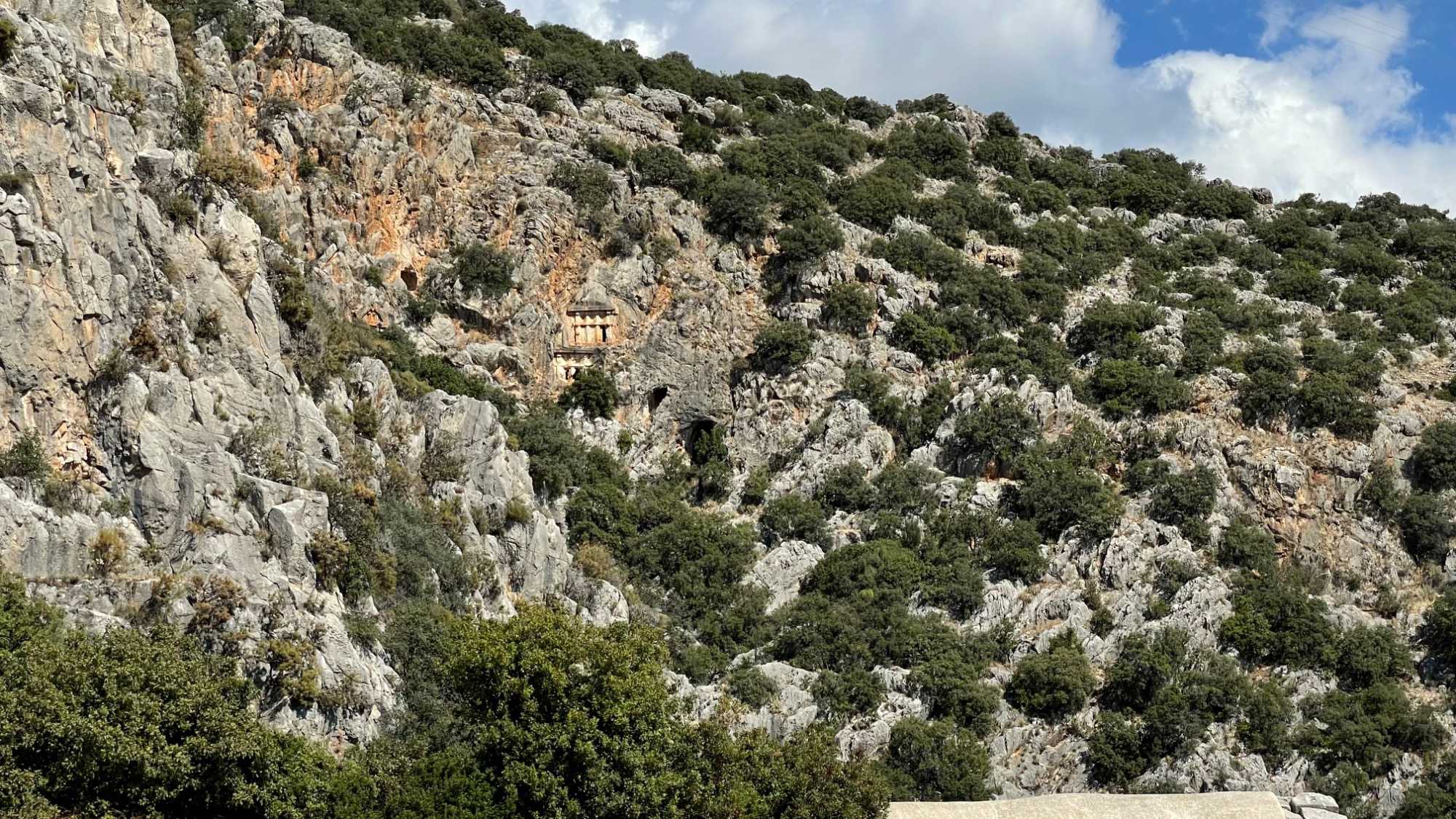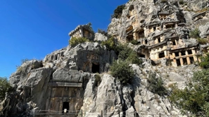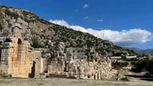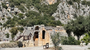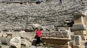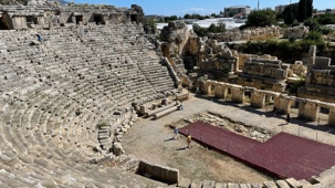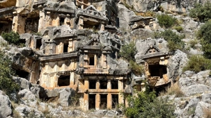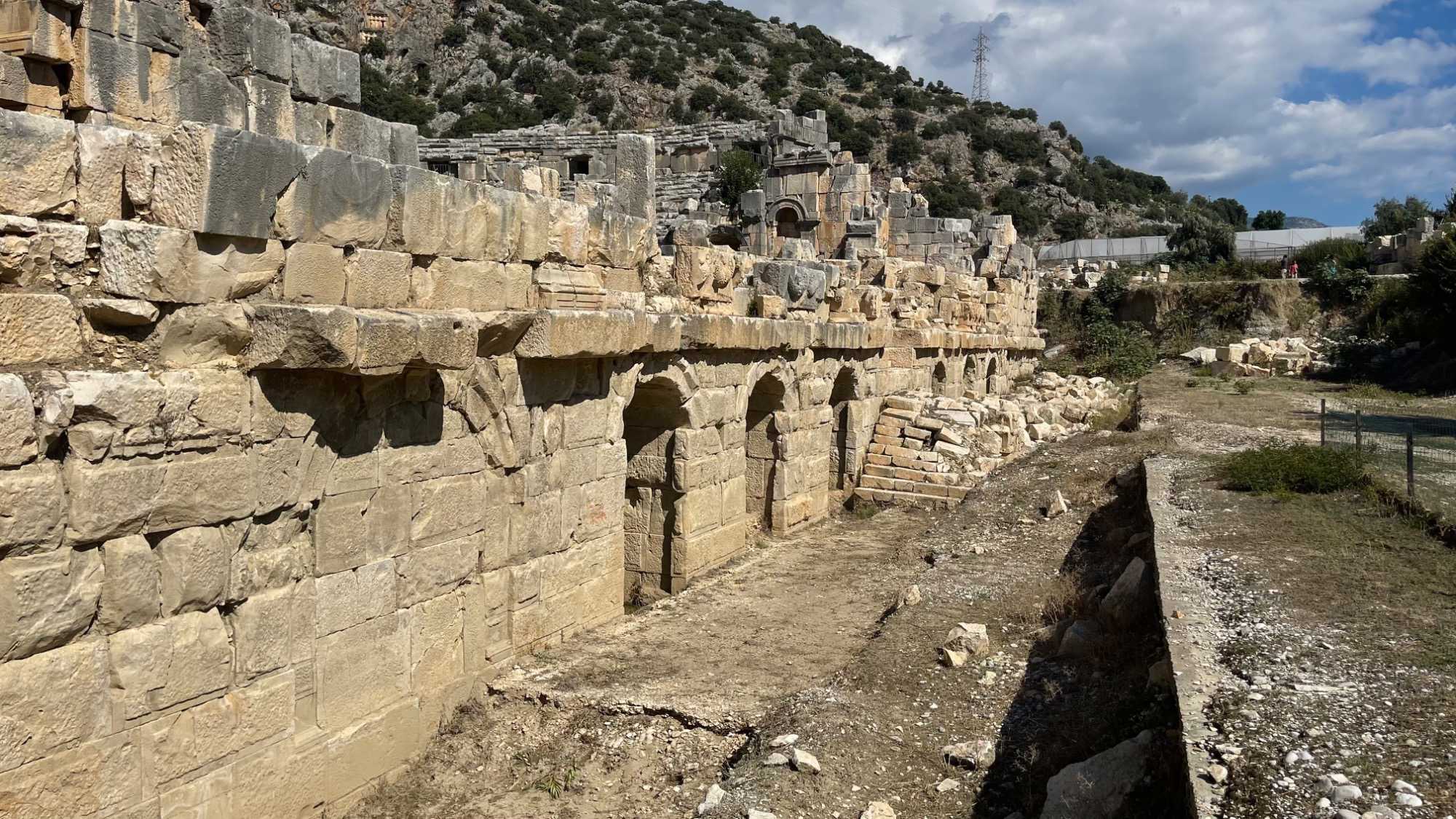 Les ruines du plus grand théâtre de Lycie subsistent encore aujourd'hui, ce qui en fait le théâtre le mieux préservé, avec ses 29 rangées de sièges et sa capacité de 9 000 à 10 000 spectateurs, le théâtre est adossé à une colline. Aujourd'hui encore, il accueille occasionnellement des festivals et des pièces de théâtre. Le théâtre, qui est divisé en métropoles orientale et occidentale, fut construit sur la colline rocheuse. Aussi, la métropole abrite d'importants exemples de différents types de tombes lyciennes. Les tombes étaient creusées dans la roche et décorées de bas-reliefs et d'inscriptions. On observe et on se demande comment ils ont bien pu effectuer un travail aussi précis! Aujourd’hui nous avons les outils nécessaires mais au 5e siècle!