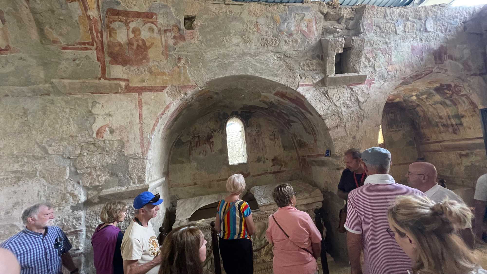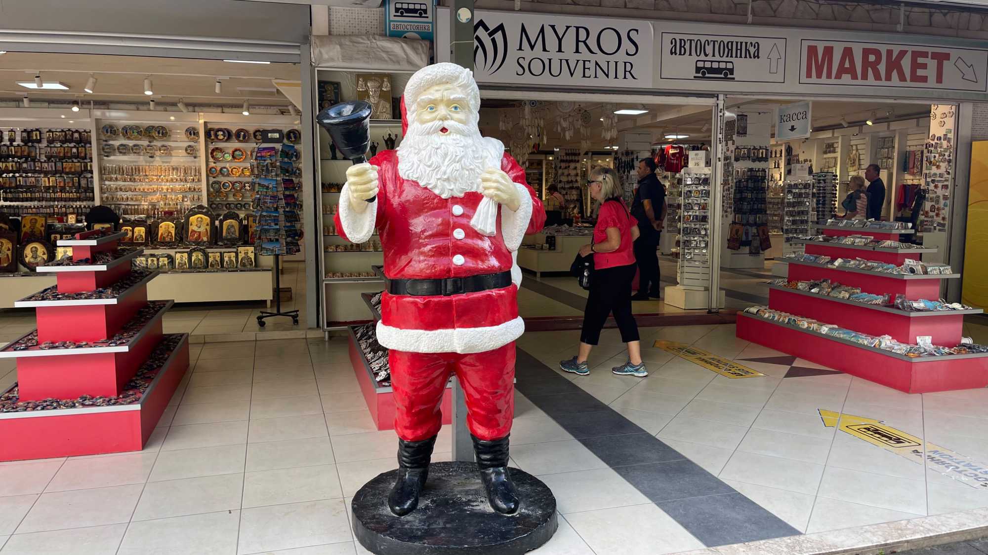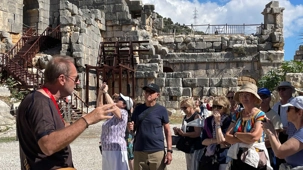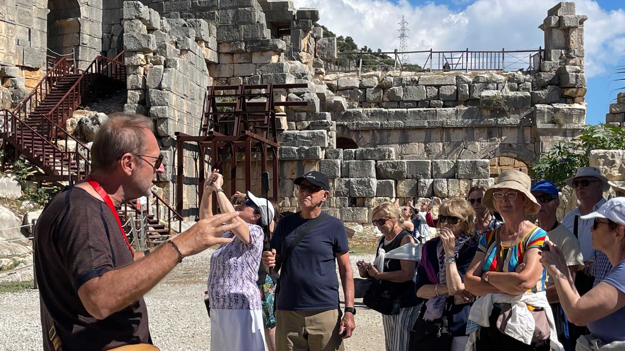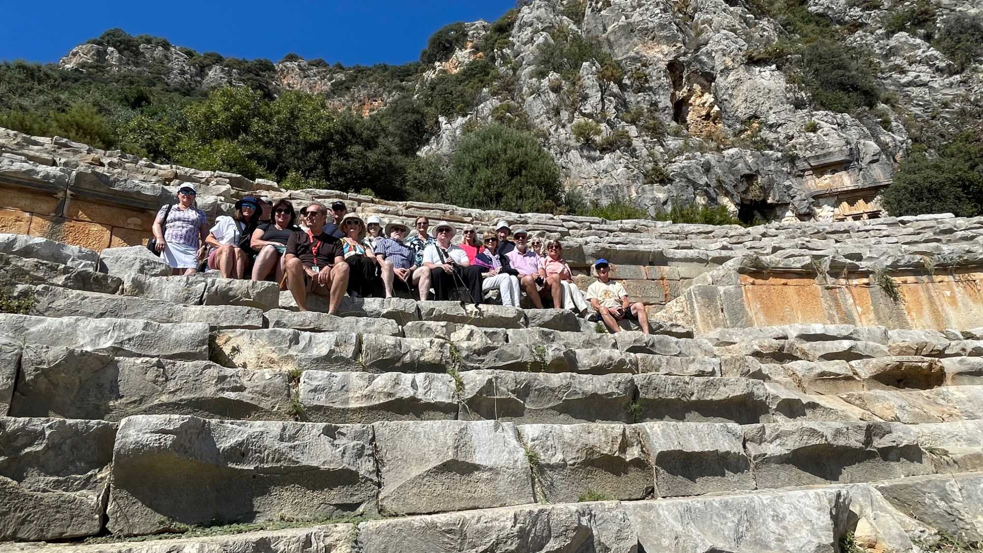 Nous arrivons à Demre ou Myra, l'un des districts touristiques de la province d’Antalya, un peu avant midi. Sous la domination romaine, Myra prospéra et connut un essor considérable, et ses habitants contribuèrent généreusement à des projets civiques même que Saint Paul visita la ville au VIe siècle apr. J.-C. Saint-Nicolas, ancêtre du Père Noël, y fut évêque et le lieu servait également d’évêché.