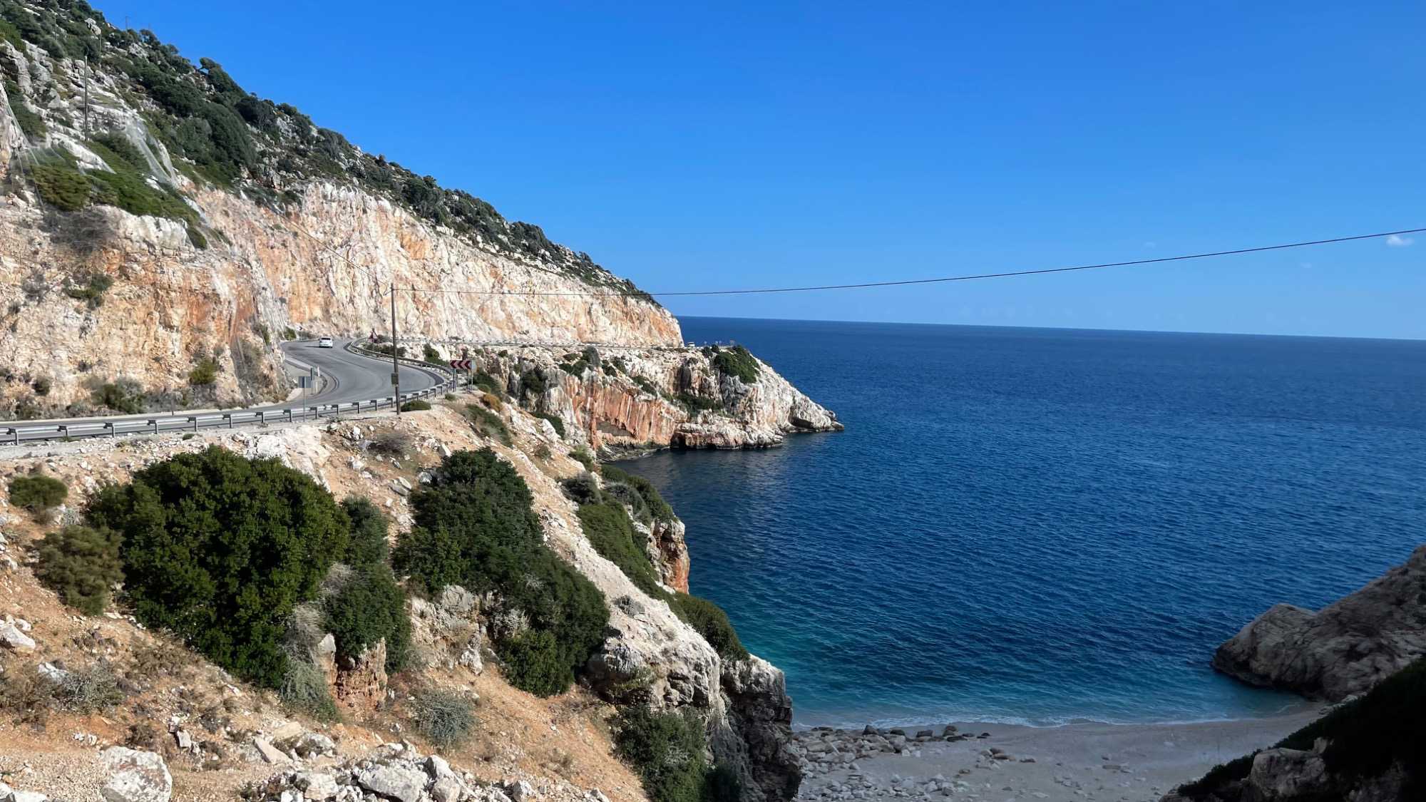 La route pour se rendre à Antalya est splendide. Nous longeons la côte méditerranéenne, de superbes plages tout en bas et des montagnes sur notre gauche. Congestion lorsque nous arrivons aux abords de la ville cependant et on voit bien que nous avons quitté la campagne, les édifices sont bien présents dans cette ville de près de 3 millions d’habitants.