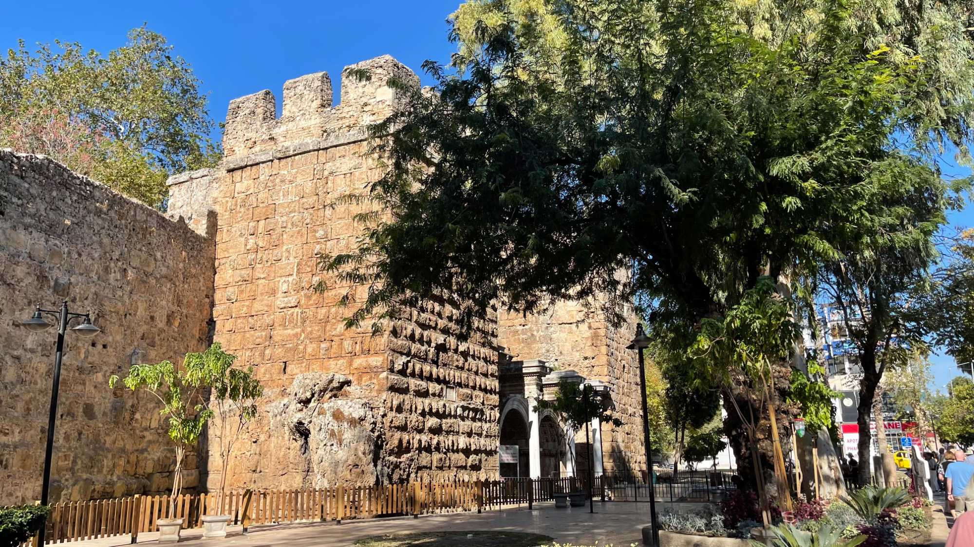 La vieille ville est entourée de fortifications dont la porte d’Hadrien. Elle a été construite en 139 après J.-C; au nom de l’empereur romain Hadrien. Imaginez, construite il y a 1186 ans! Le bâtiment, également connu sous le nom de 3 portes aujourd’hui, tire son nom de 3 portes et a une ouverture de porte voûtée ronde entièrement en marbre blanc.