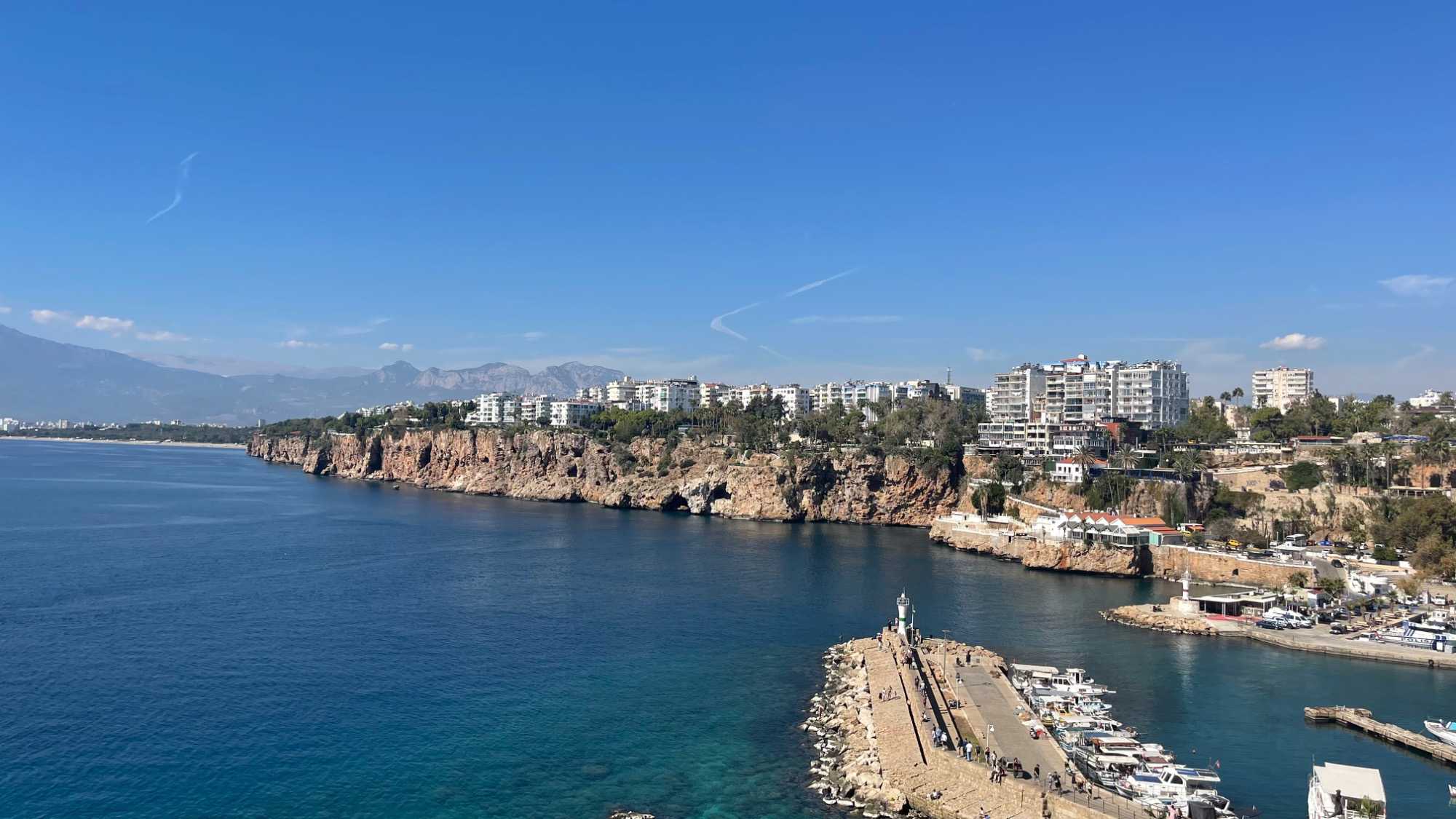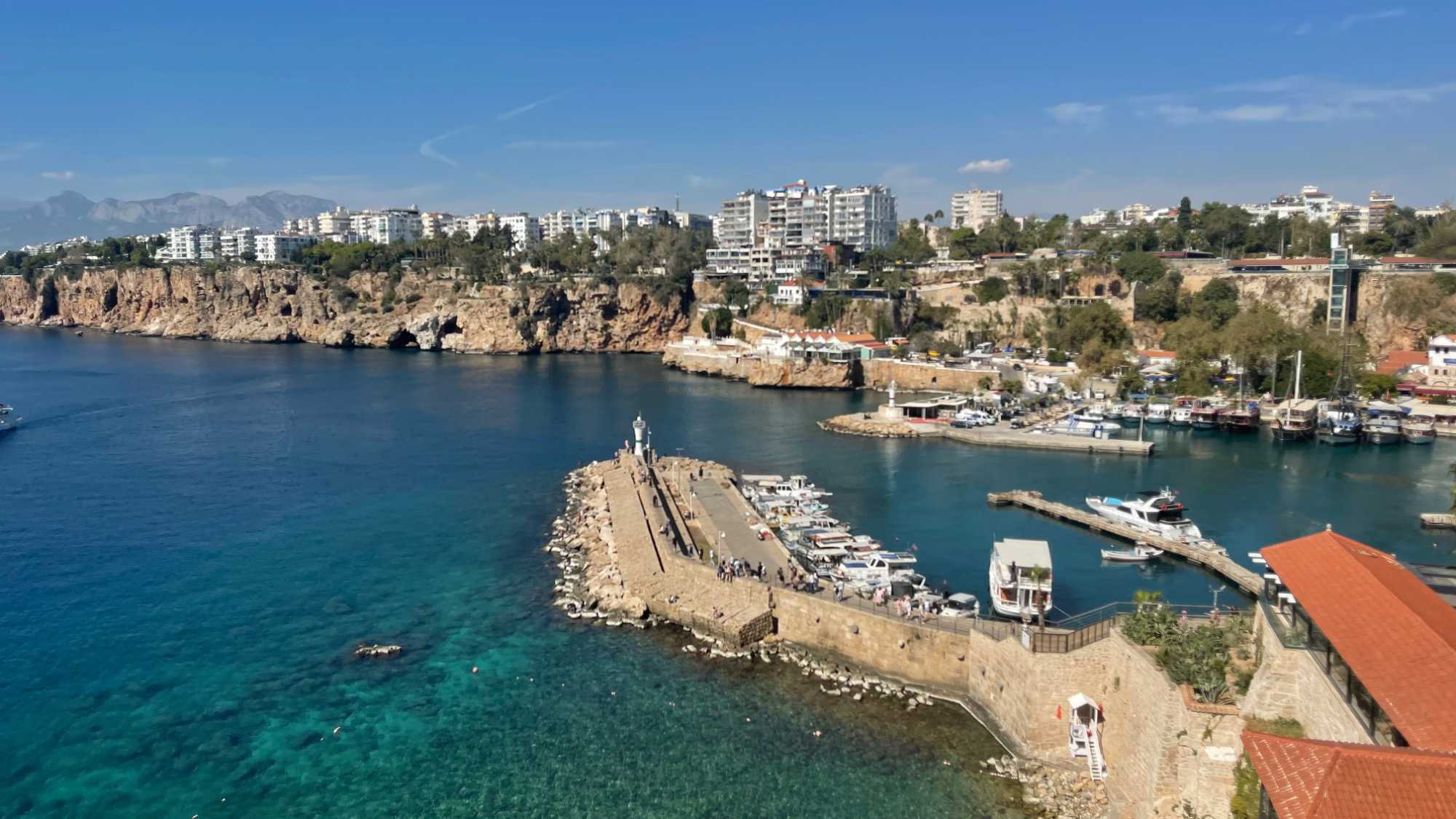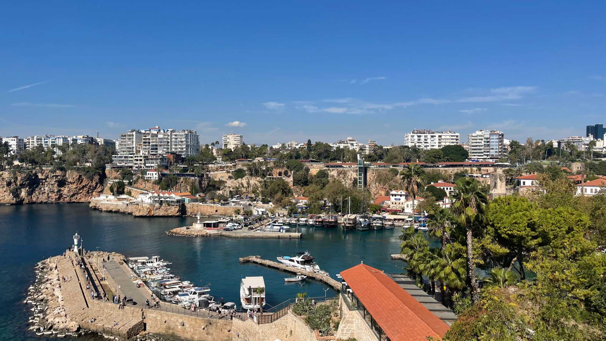 Le port de plaisance est l’un des centres importants de la ville. Avant la création de la vieille cité, le port était utilisé comme port pirate. C’est maintenant une marina ouverte au public comportant de nombreux restaurants et cafés. Le port est exploité par la municipalité d’Antalya.
