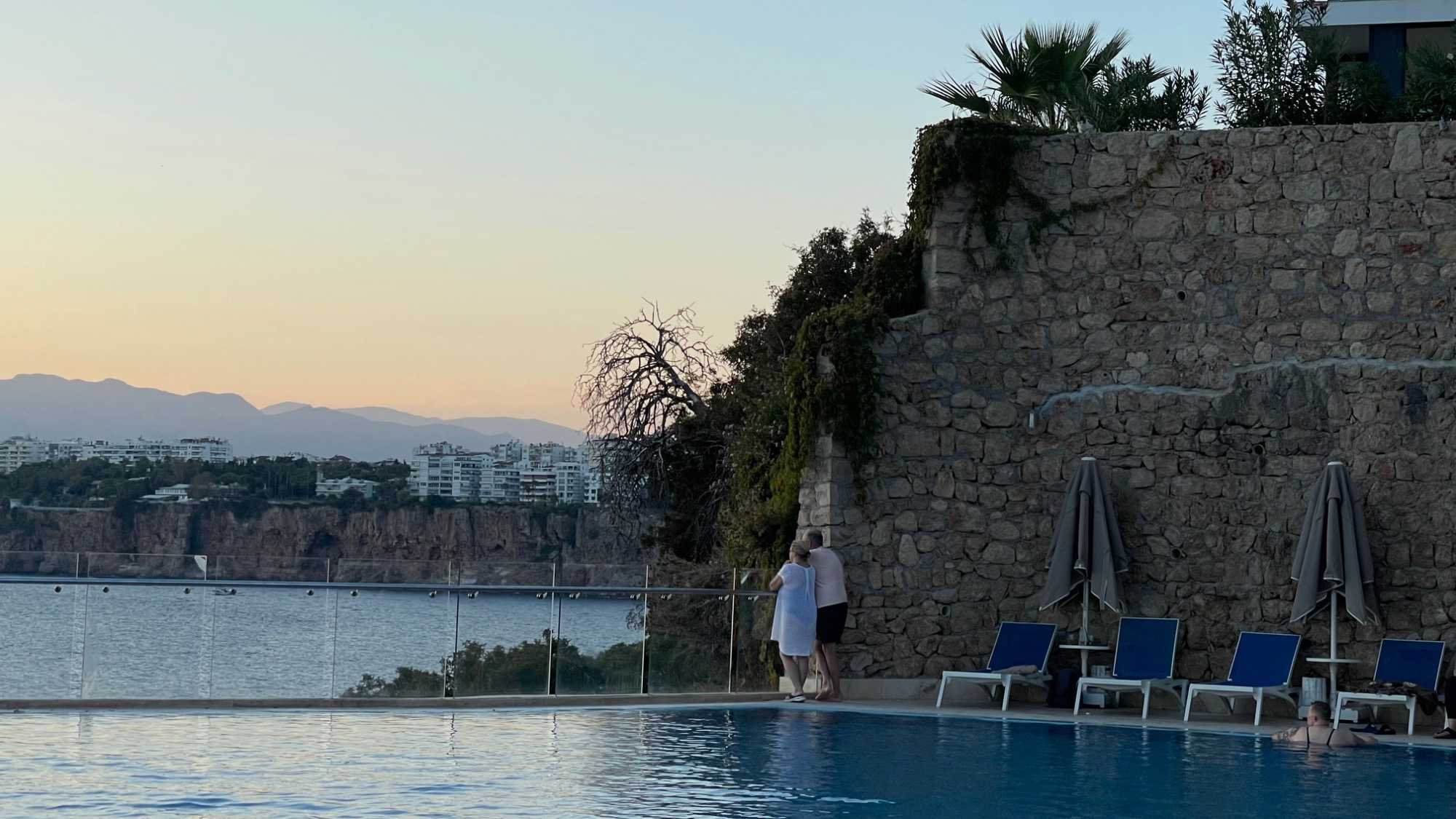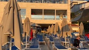 Plusieurs ont profité du soleil de l’après-midi, la température est montée jusqu’à 250C, pour faire une baignade dans la mer ou dans la piscine, se faire masser, lire ou faire des achats. Il y a, sur place à l'hôtel, une piscine intérieure et une piscine extérieure, un accès à la mer par une série de balcons en bois ou par l'ascenseur, un coin spa et détente (massage) et plusieurs bars et restaurants. De tout pour se sentir chez-soi.