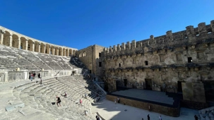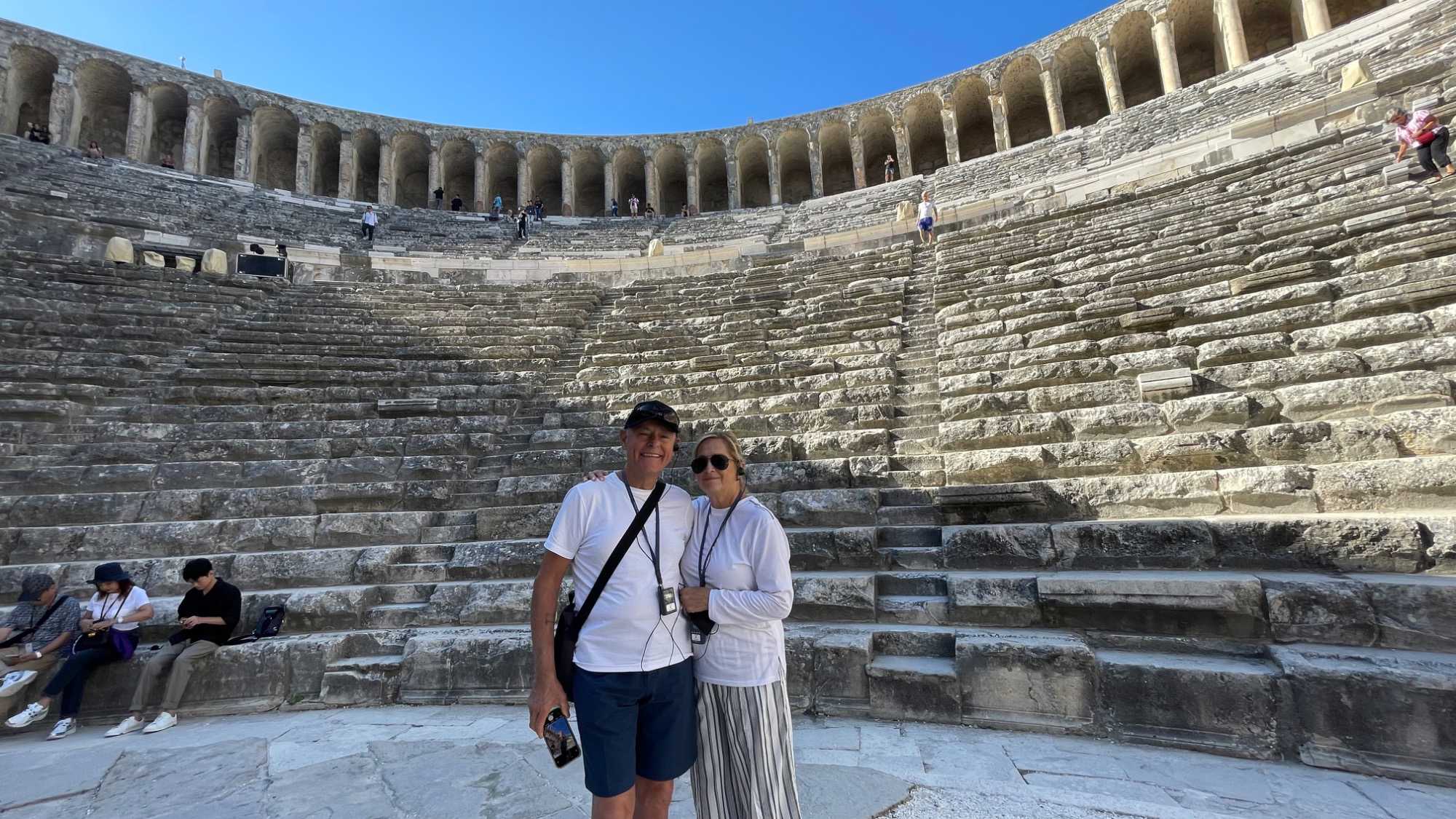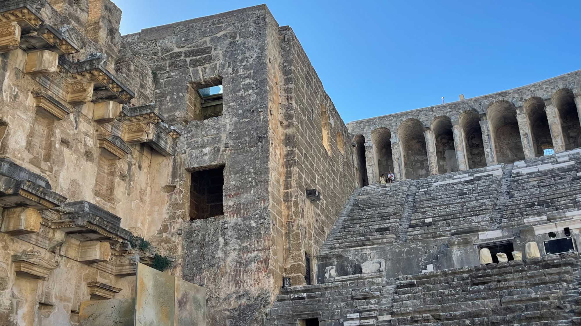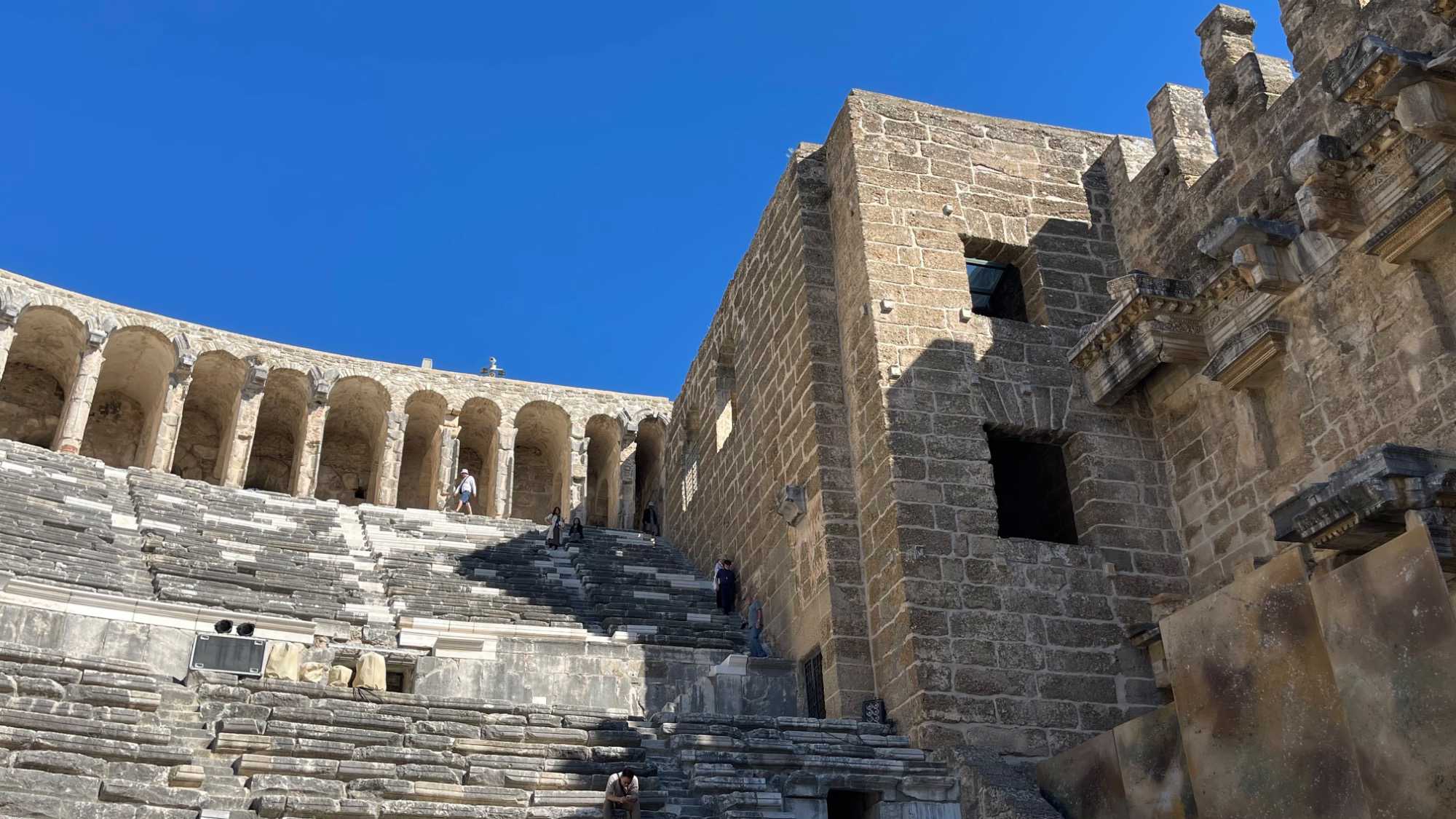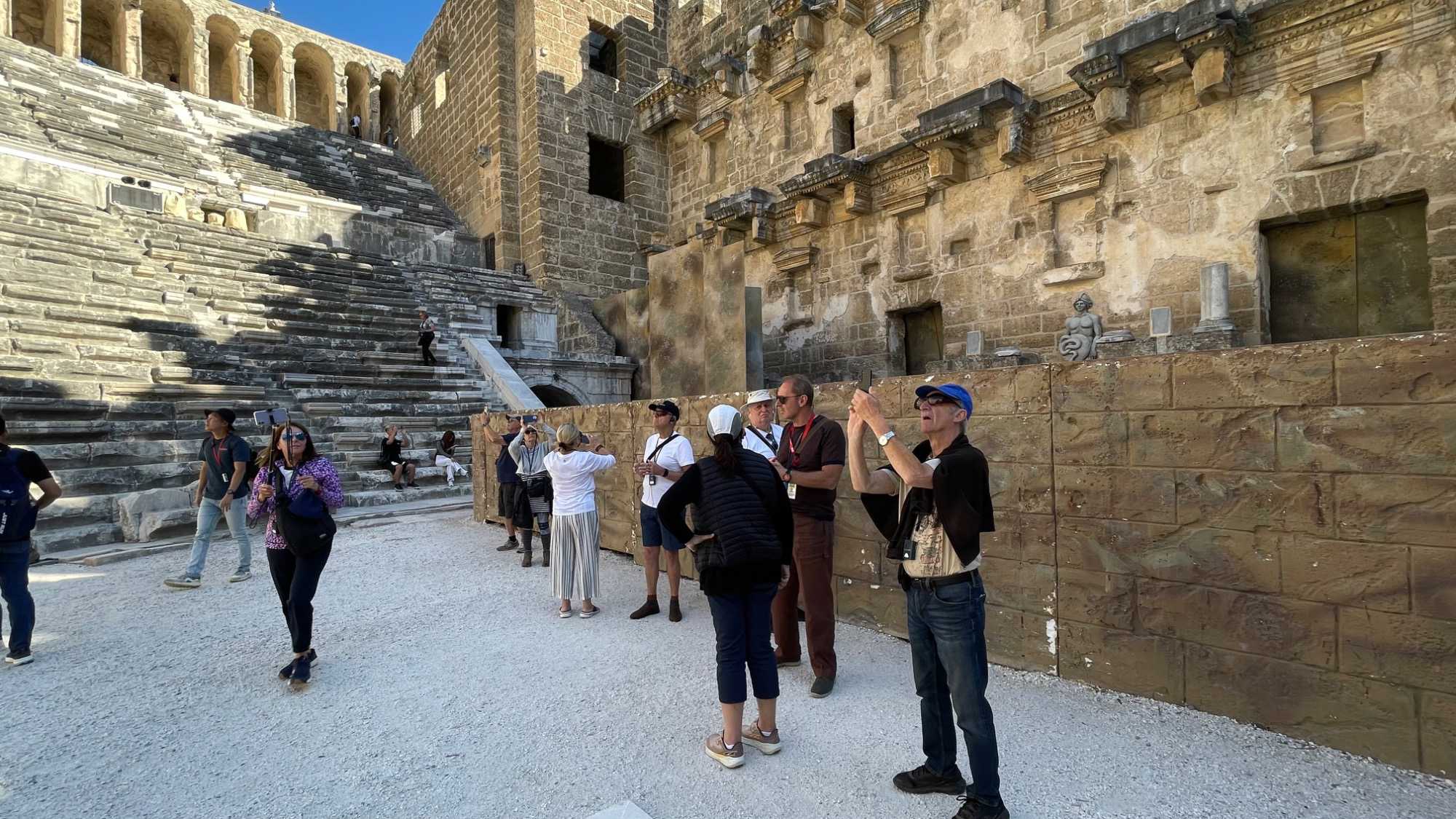 Arrêt à Aspendos, ancienne cité gréco-romaine situé à 45 km d’Antalya. Elle se distingue par son théâtre romain le mieux conservé de toute l'Asie Mineure, dans lequel tous les étés des spectacles sont organisés. Dans l’Antiquité, le théâtre d’Aspendos pouvait accueillir environ 12 000 spectateurs. La ville fut fondée, selon la tradition antique, à l'époque préhellénique (XIIe siècle avant J.-C). Dalida a donné son dernier concert dans ce théâtre, le 28 avril 1987. Nous sommes sous le charme dans ce théâtre bâtit il y a des siècles.