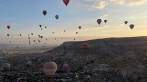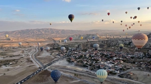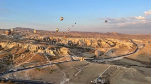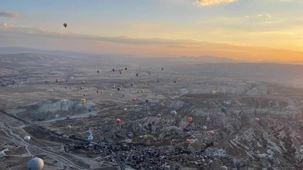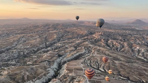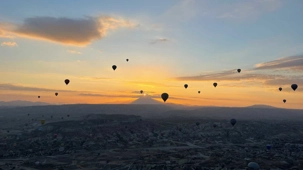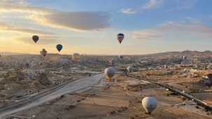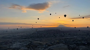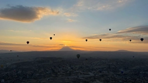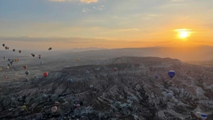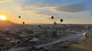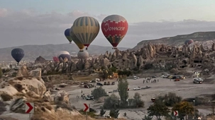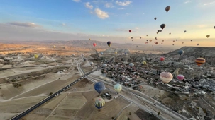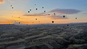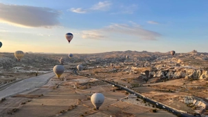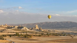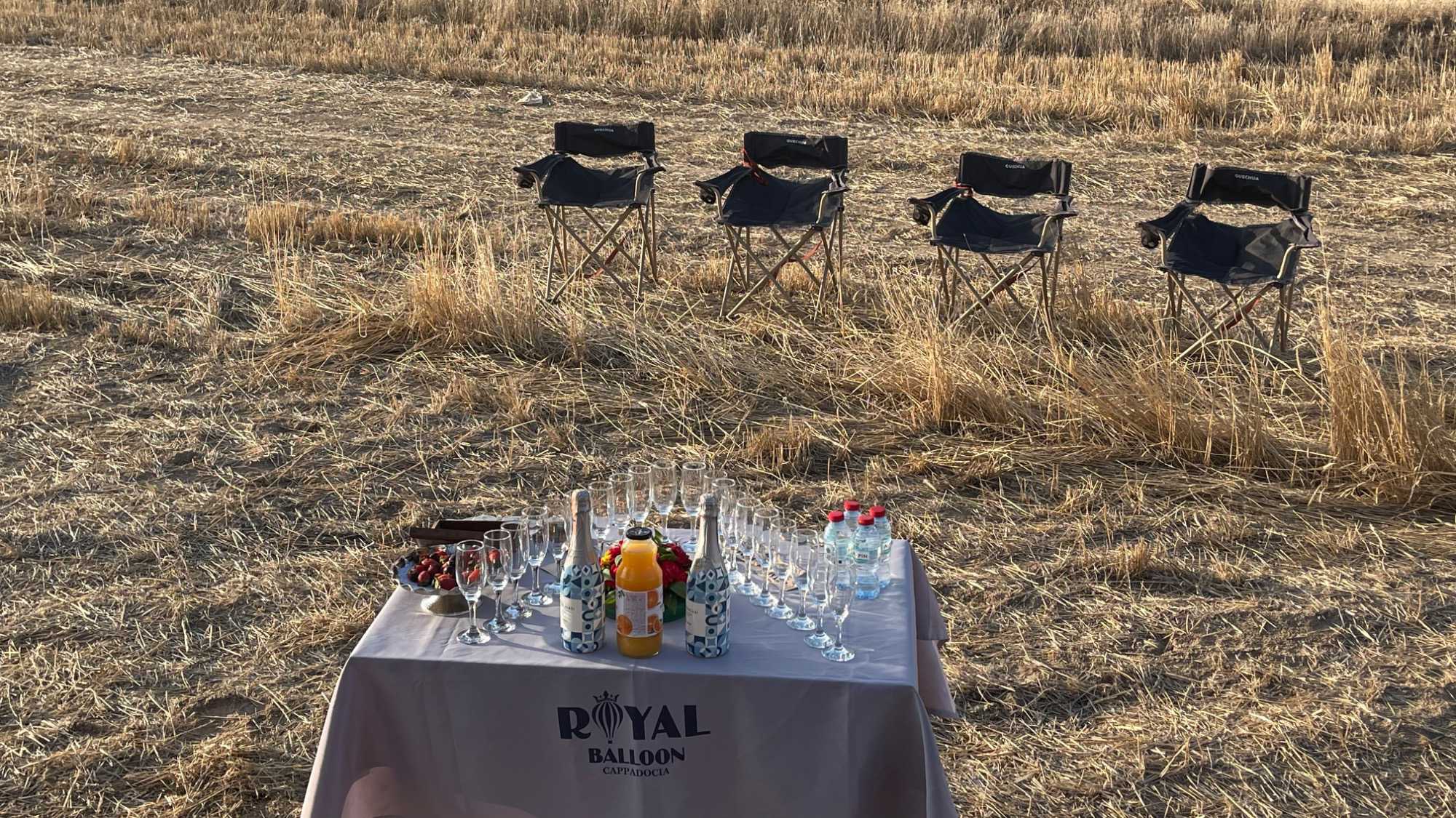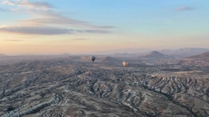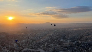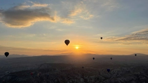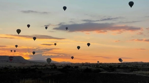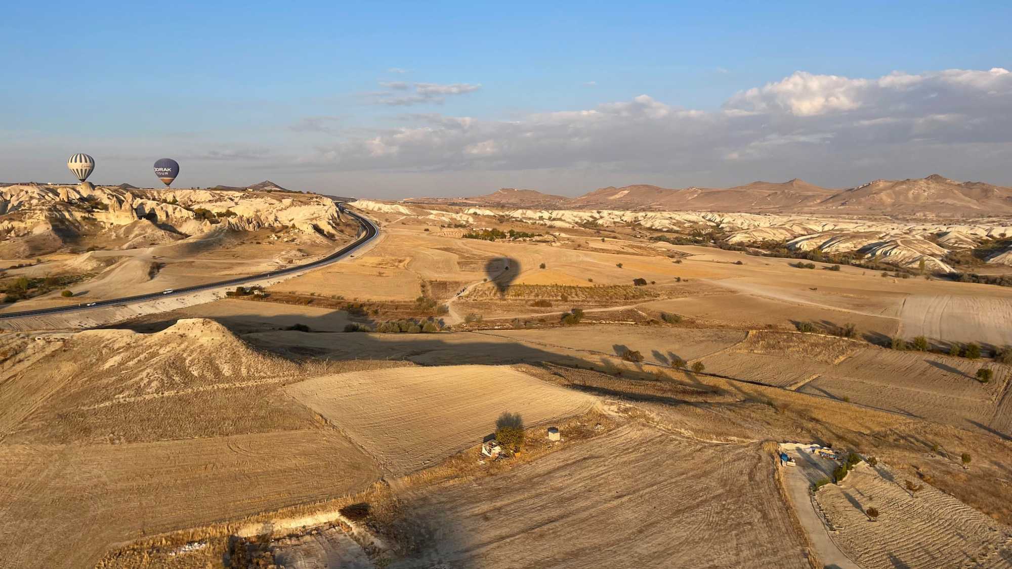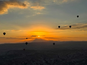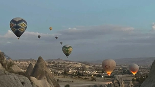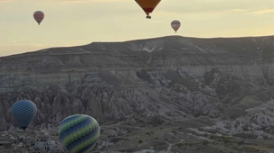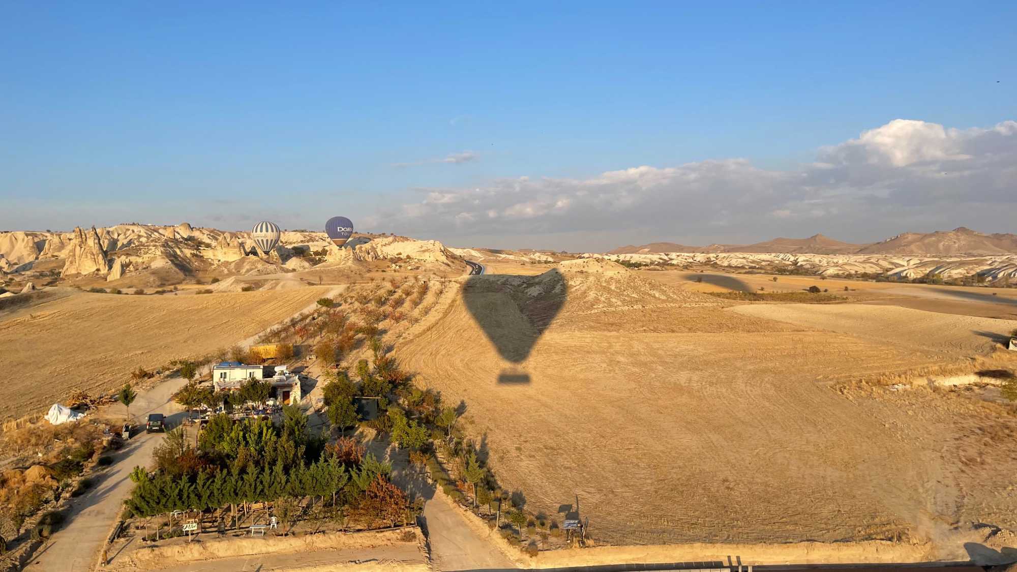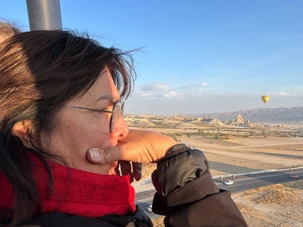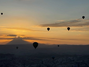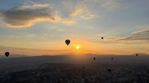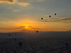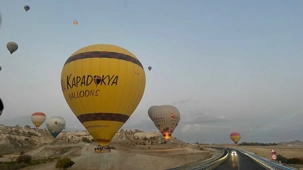 Une dizaine de kilomètres, il y avait un trafic monstre, et nous voilà rendu. Déjà plusieurs ballons survolent les vallées et les cheminées de fées. Les cheminées de fée sont des pinacles rocheux en forme de colonnes aux formes parfois étranges et évocatrices qui donnent lieu à de nombreuses légendes. Pouvant atteindre plusieurs dizaines de mètres de haut, elles sont des modèles d’érosion différentielle. L'érosion des cheminées peut avoir une ou plusieurs origines selon les lieux. Il peut ainsi s'agir de la force de l'écoulement des eaux de pluie et des réactions chimiques entre ces roches et les eaux. La force du vent a également un impact non négligeable, tout comme la succession de périodes de gel et de dégel qui détruit la roche par dilatation de l'eau changée en glace, suivie d'un éclatement de la roche. Nous y sommes à temps pour voir le lever du soleil, c’est somptueux, magnifique, magique. Nous y avons un traitement Royal (en référence à l’entreprise de montgolfière -on aime bien se péter les bretelles-)! Tout d’abord nous sommes seules dans le panier, on nous aide à monter, le pilote -qui doit effectuer 1500 heures de vol avant de piloter avec des clients- propulse l’engin à l’aide d’une valve qui donne du propane produisant un feu et c’est la chaleur qui fait monter le ballon dans les airs. C’est à peine si on sent bouger le ballon mais nous montons c’est évident. Notre balade dure près d’une heure. Nous sommes chanceux, il ne vente pas et la chaleur du feu du ballon nous réchauffe nous sommes bien. La vue est extraordinaire. Lorsque nous redescendons, on nous attend avec du vin mousseux, du jus d’orange, des fraises dans le chocolat et on nous remet une médaille pour avoir braver les airs. C’est une expérience que tous recommandent où que vous alliez si l’occasion se présente, soyez-y!