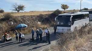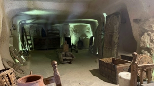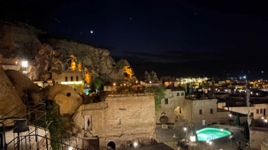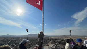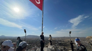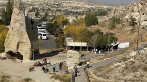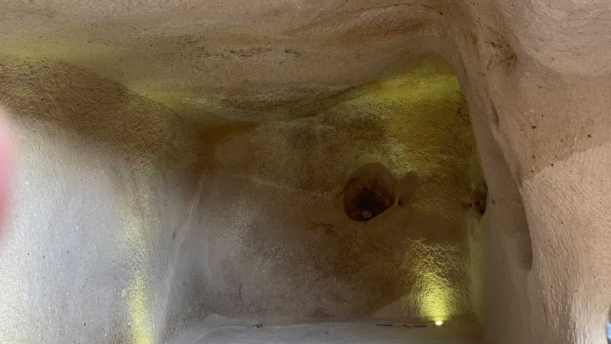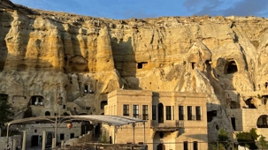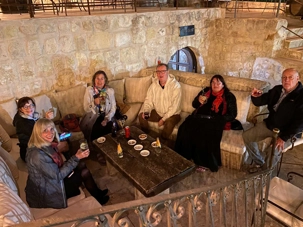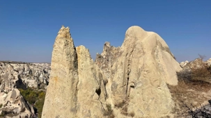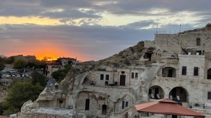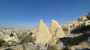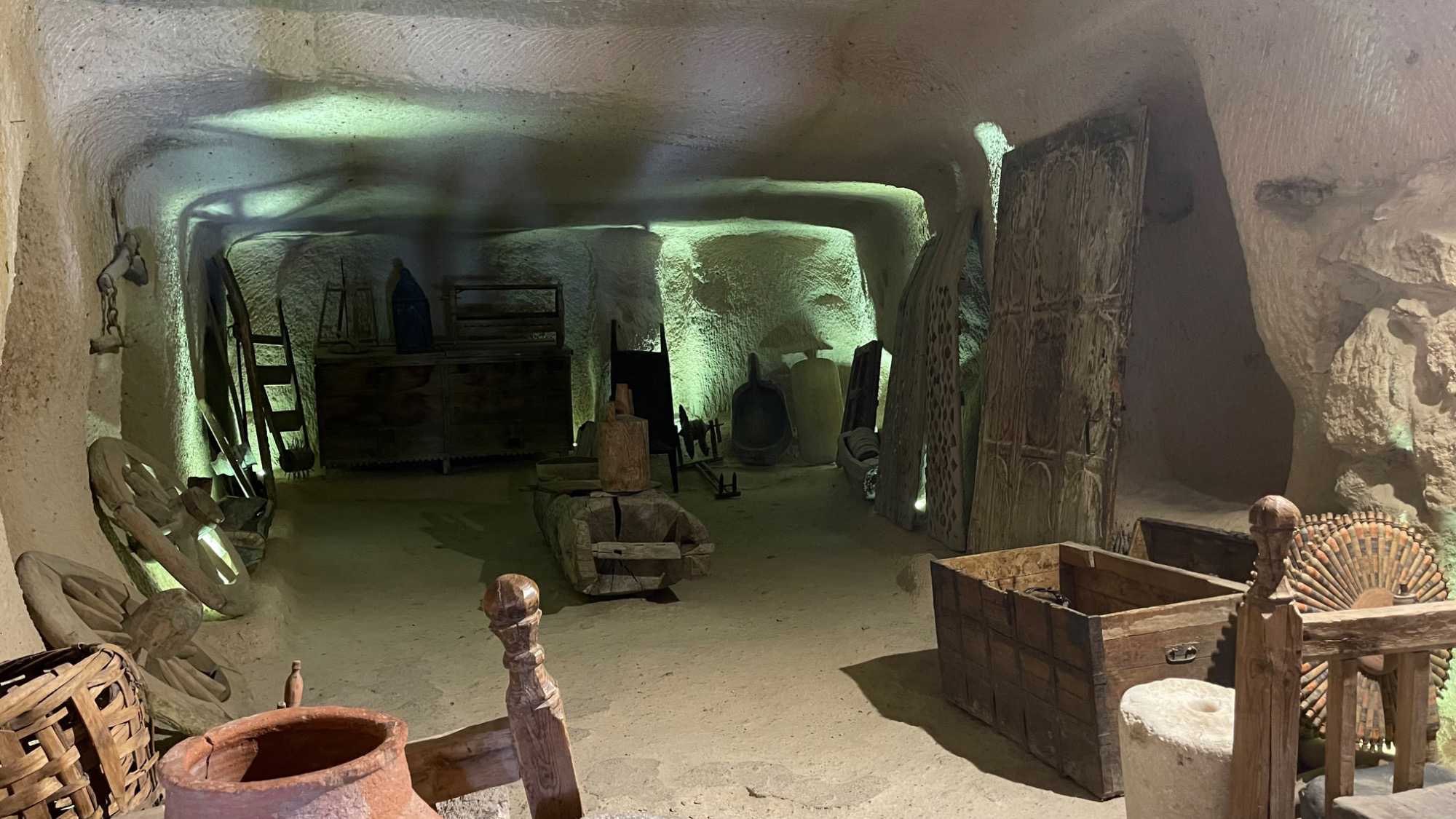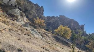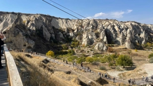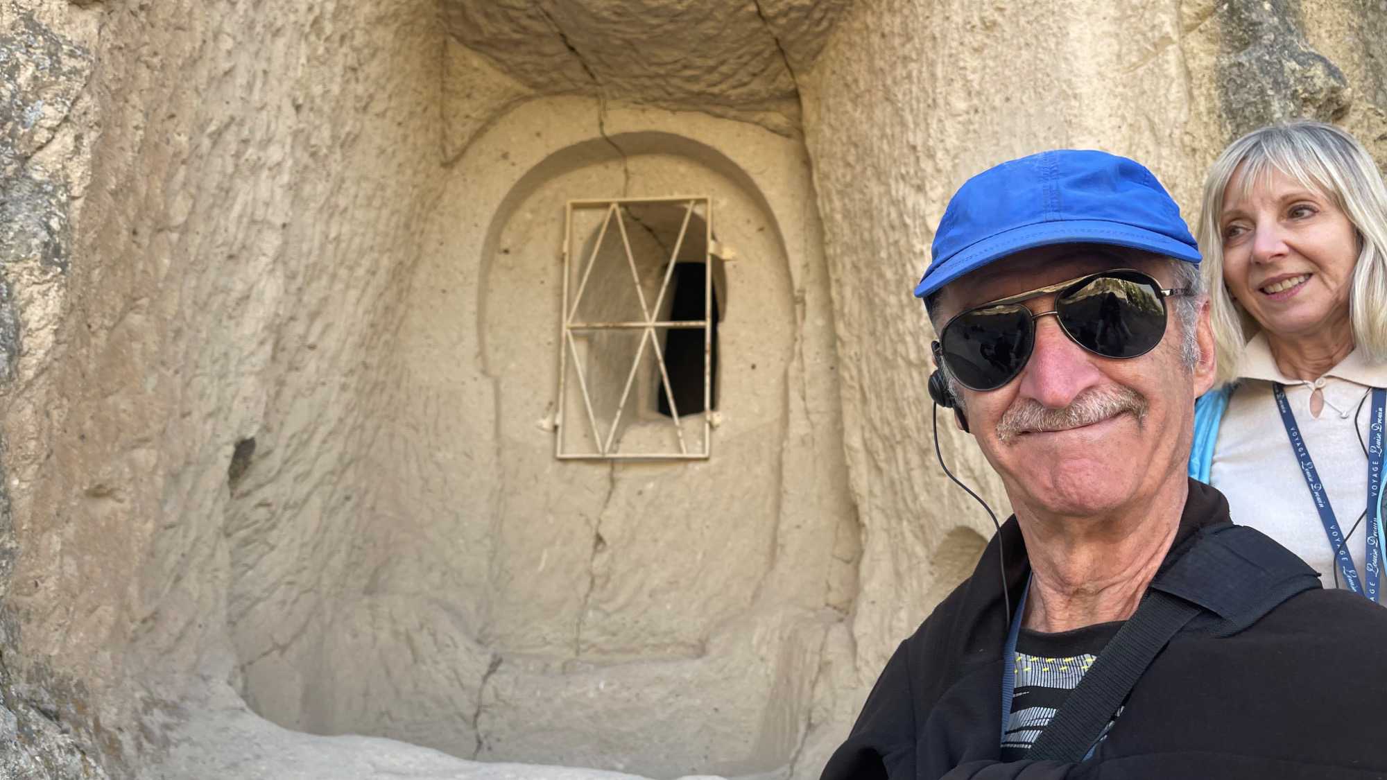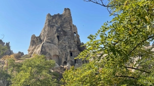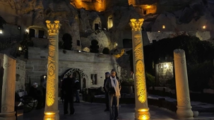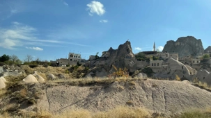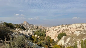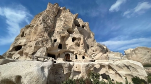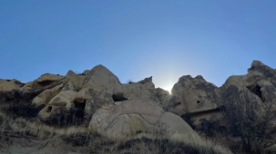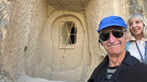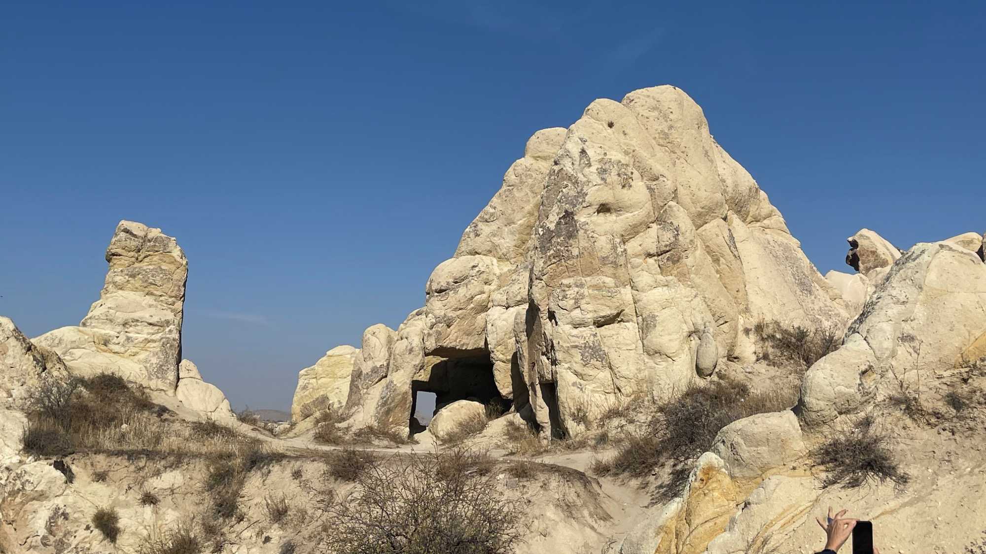 Puis nous visitons le château de la ville situé à quelques minutes à pied. Uçhisar signifie « citadelle extérieure » en turc et fait référence à l'énorme cône rocheux qui constitue son élément central. Quelques braves sont montés en haut de la colline, 60 mètres de haut -, 275 marches- Il est sillonné de nombreux passages et salles souterrains, aujourd'hui pour la plupart bloqués ou impraticables. Ils servaient de quartiers résidentiels et, peut-être, de cloîtres à l'époque byzantine. Environ 1 000 personnes vivaient autrefois dans le château. Il n'est plus habité aujourd'hui et la vue à son sommet est magnifique.