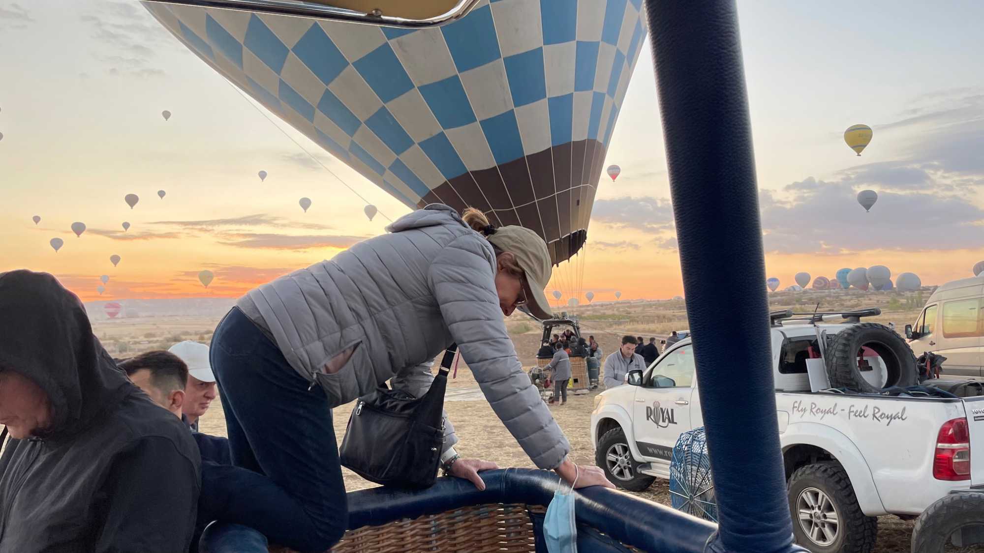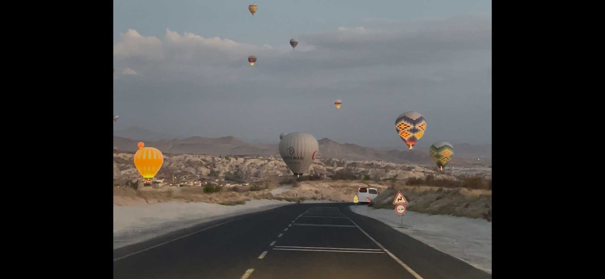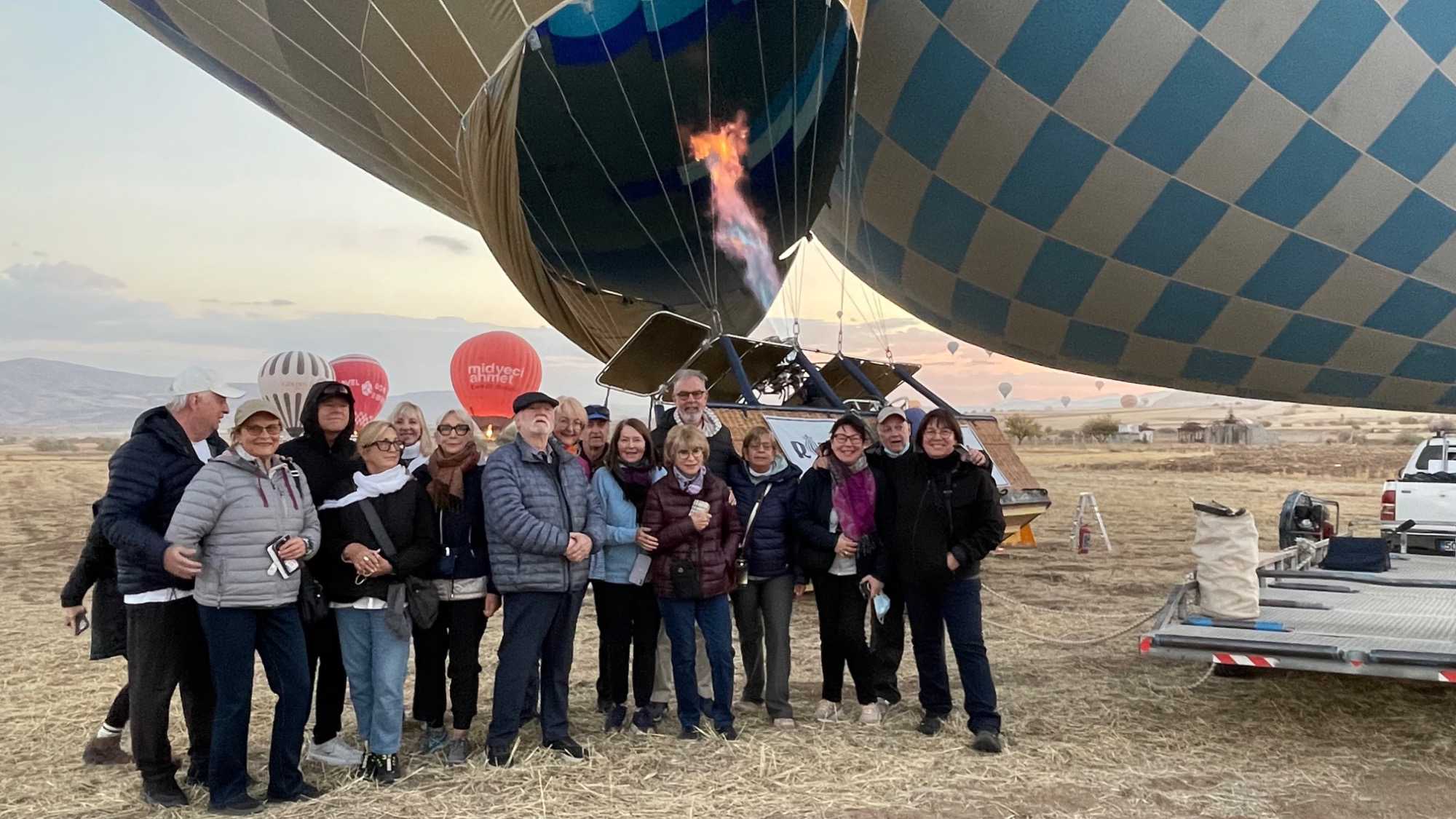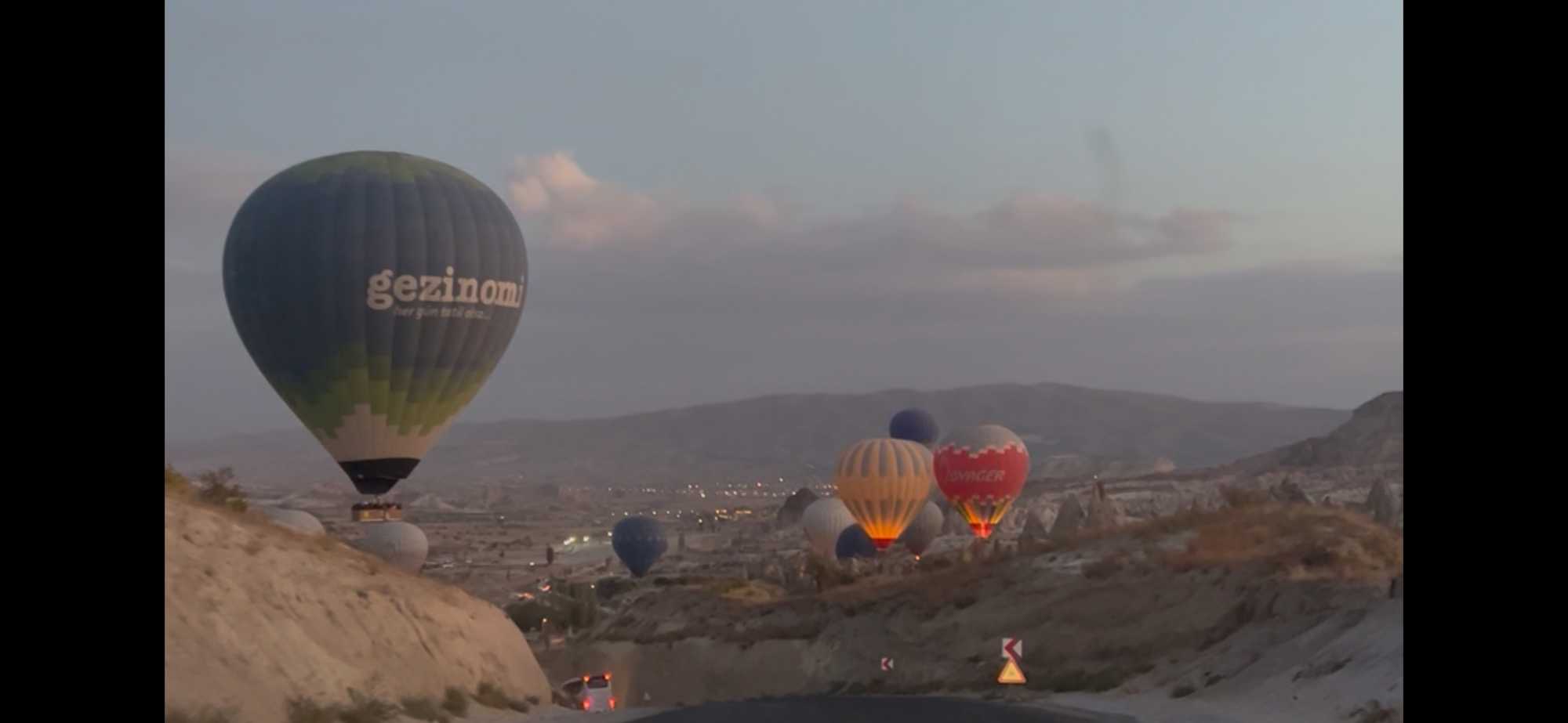 Nous nous attendions à ce qu’il fasse plus froid ce matin à 6 h 20 lorsque nous nous sommes rencontrés au lobby de l’hôtel, il fait 80C dans la belle province de Nevsehir. Nous sommes 18 et attendons le transport qui nous mènera vers notre envolée en montgolfière.