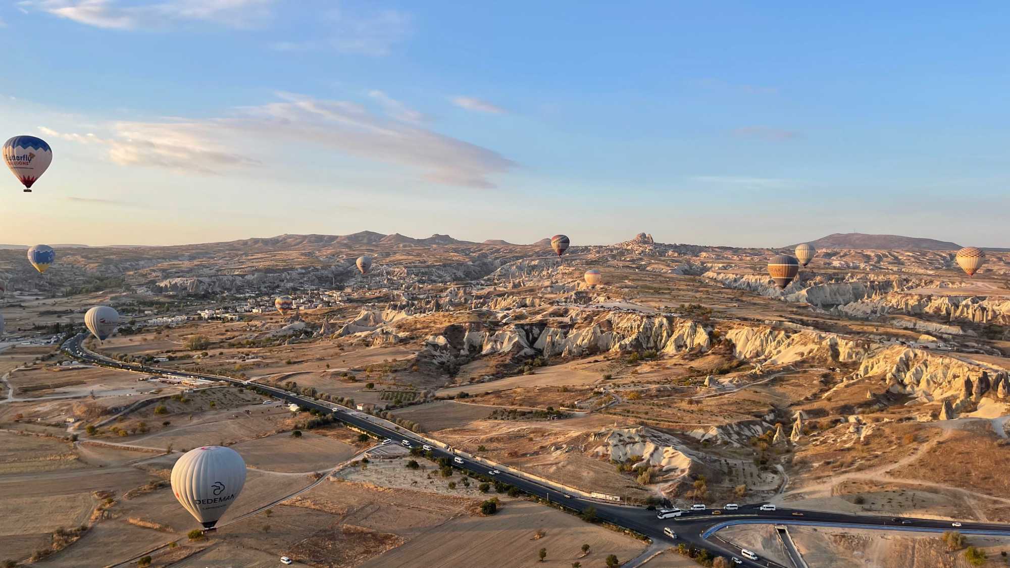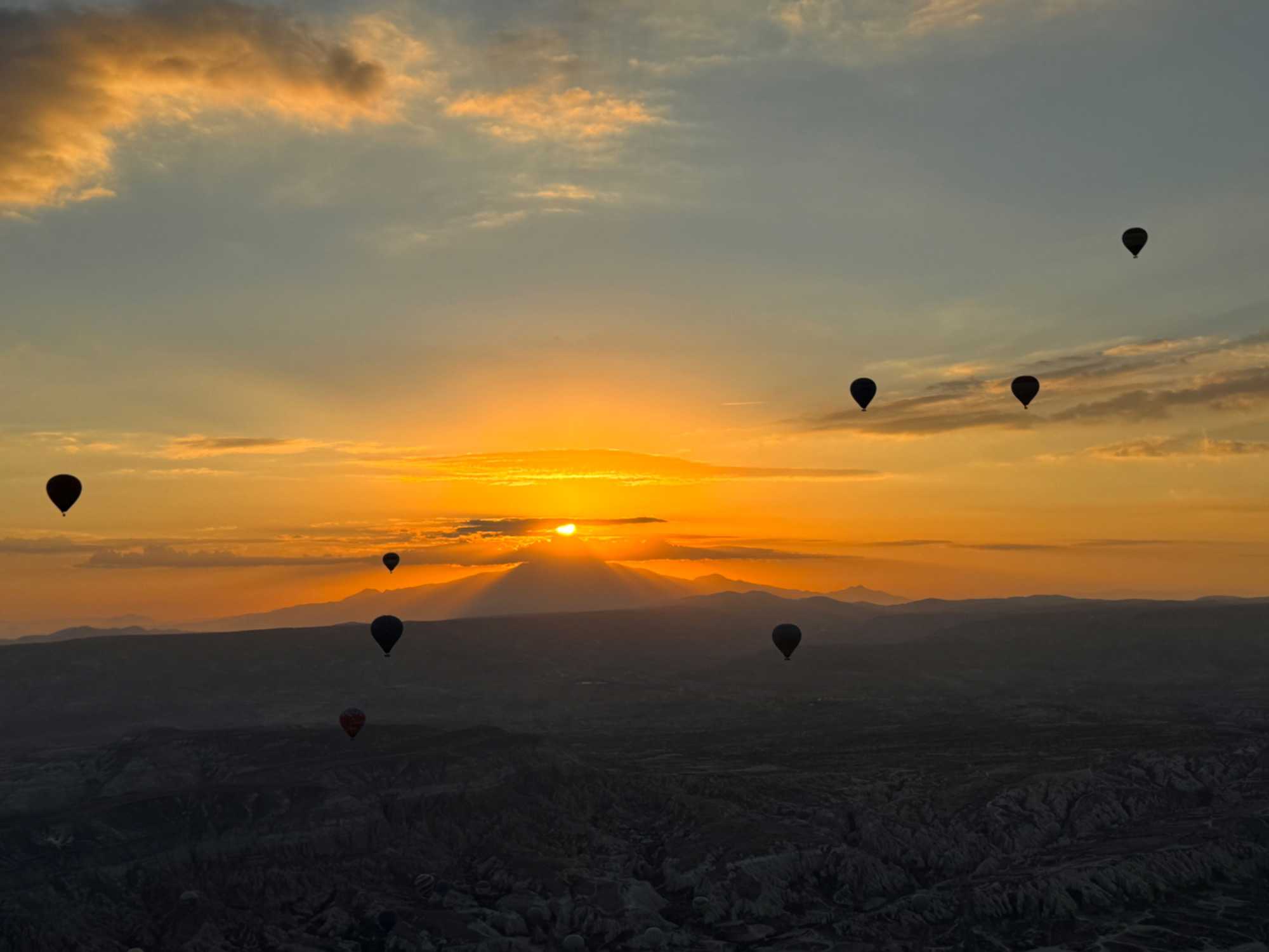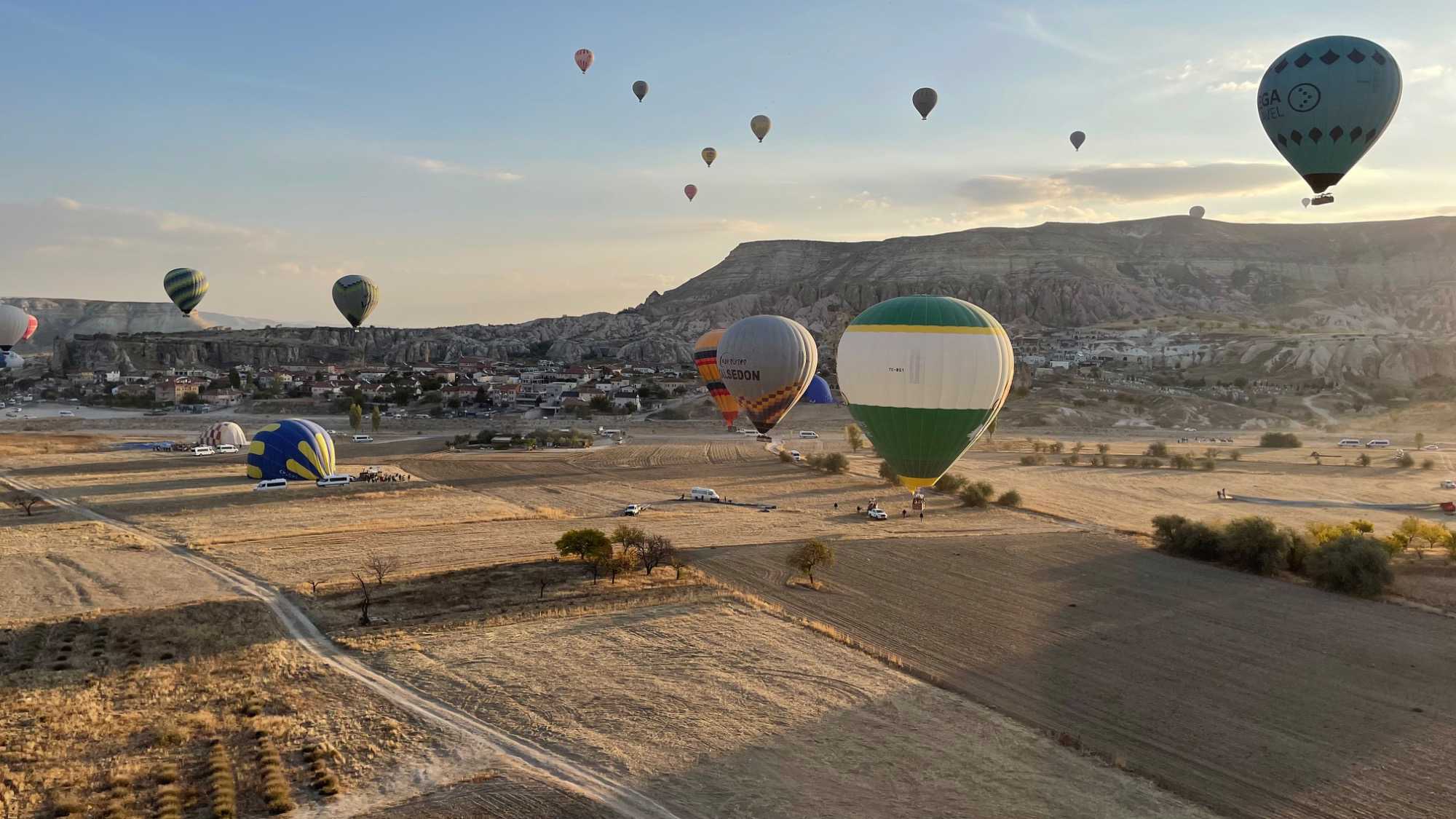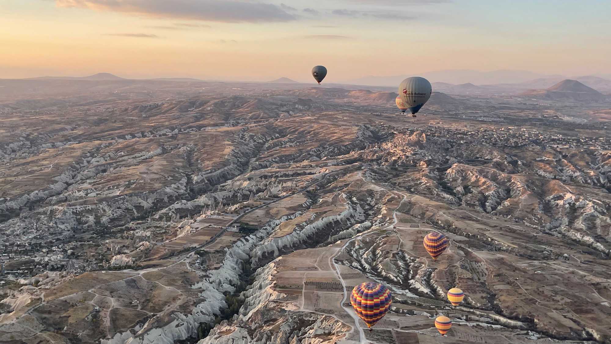 Nous nous attendions à ce qu’il fasse plus froid ce matin à 6 h 20 lorsque nous nous sommes rencontrés au lobby de l’hôtel, il fait 80C dans la belle province de Nevsehir. Nous sommes 18 et attendons le transport qui nous mènera vers notre envolée en montgolfière.