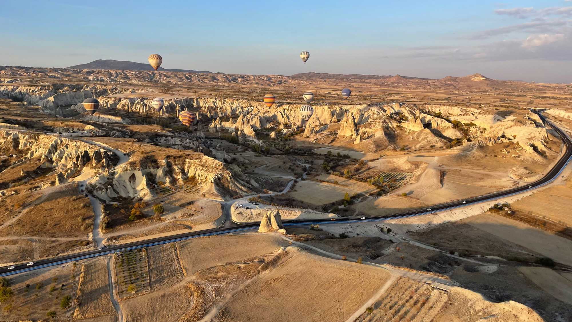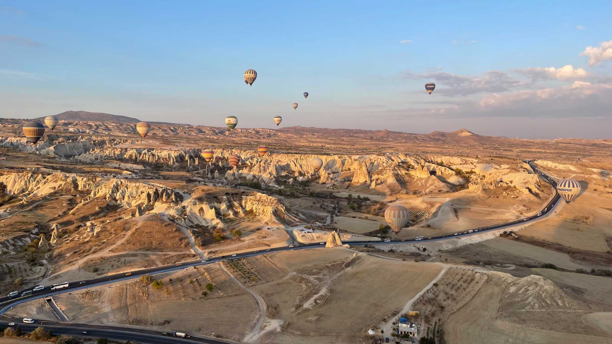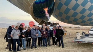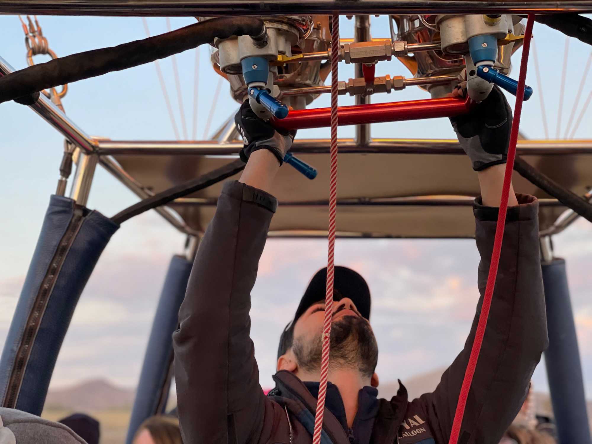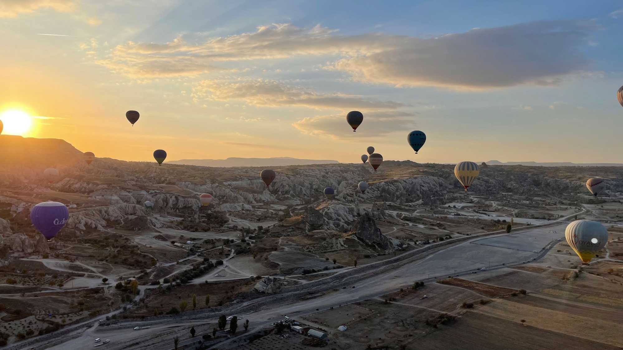 Nous nous attendions à ce qu’il fasse plus froid ce matin à 6 h 20 lorsque nous nous sommes rencontrés au lobby de l’hôtel, il fait 80C dans la belle province de Nevsehir. Nous sommes 18 et attendons le transport qui nous mènera vers notre envolée en montgolfière.