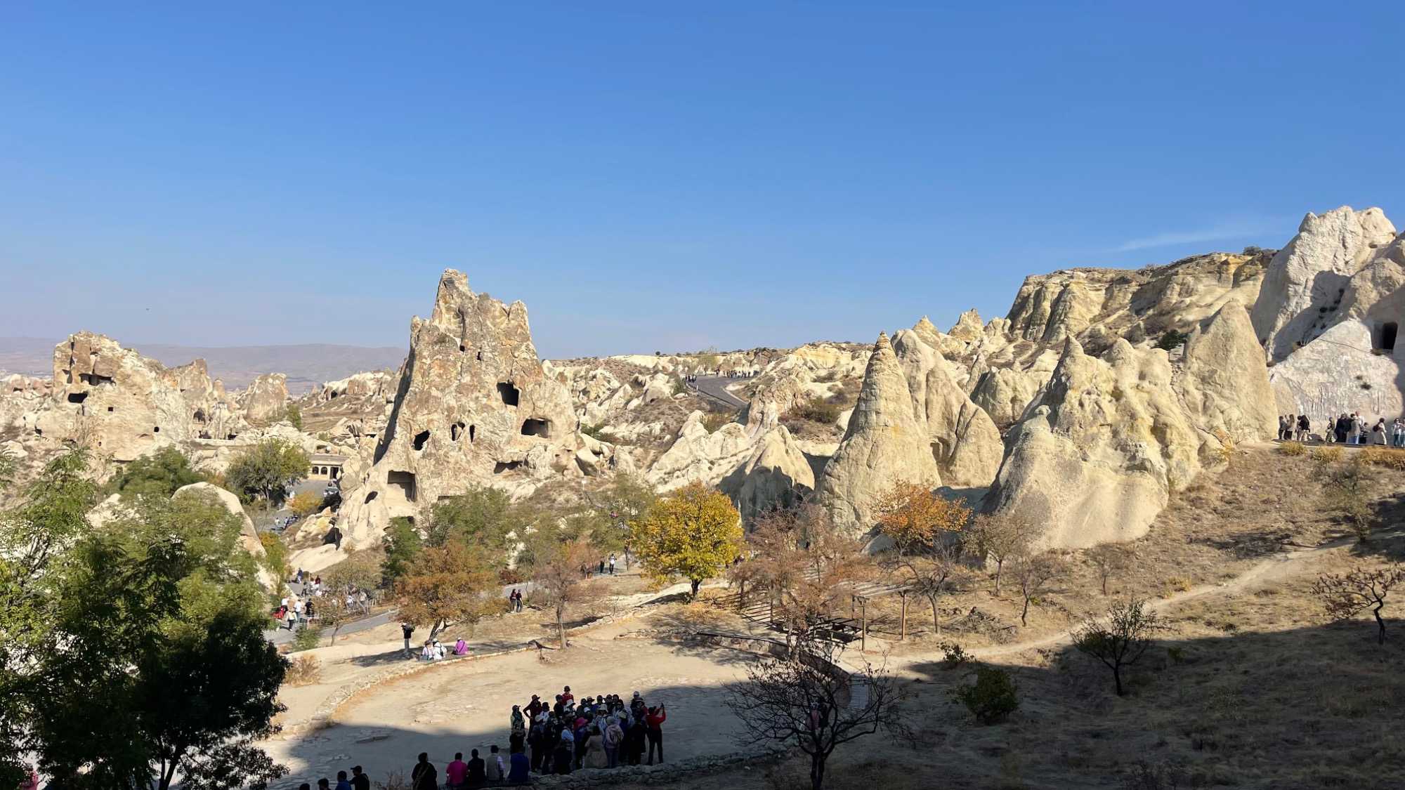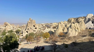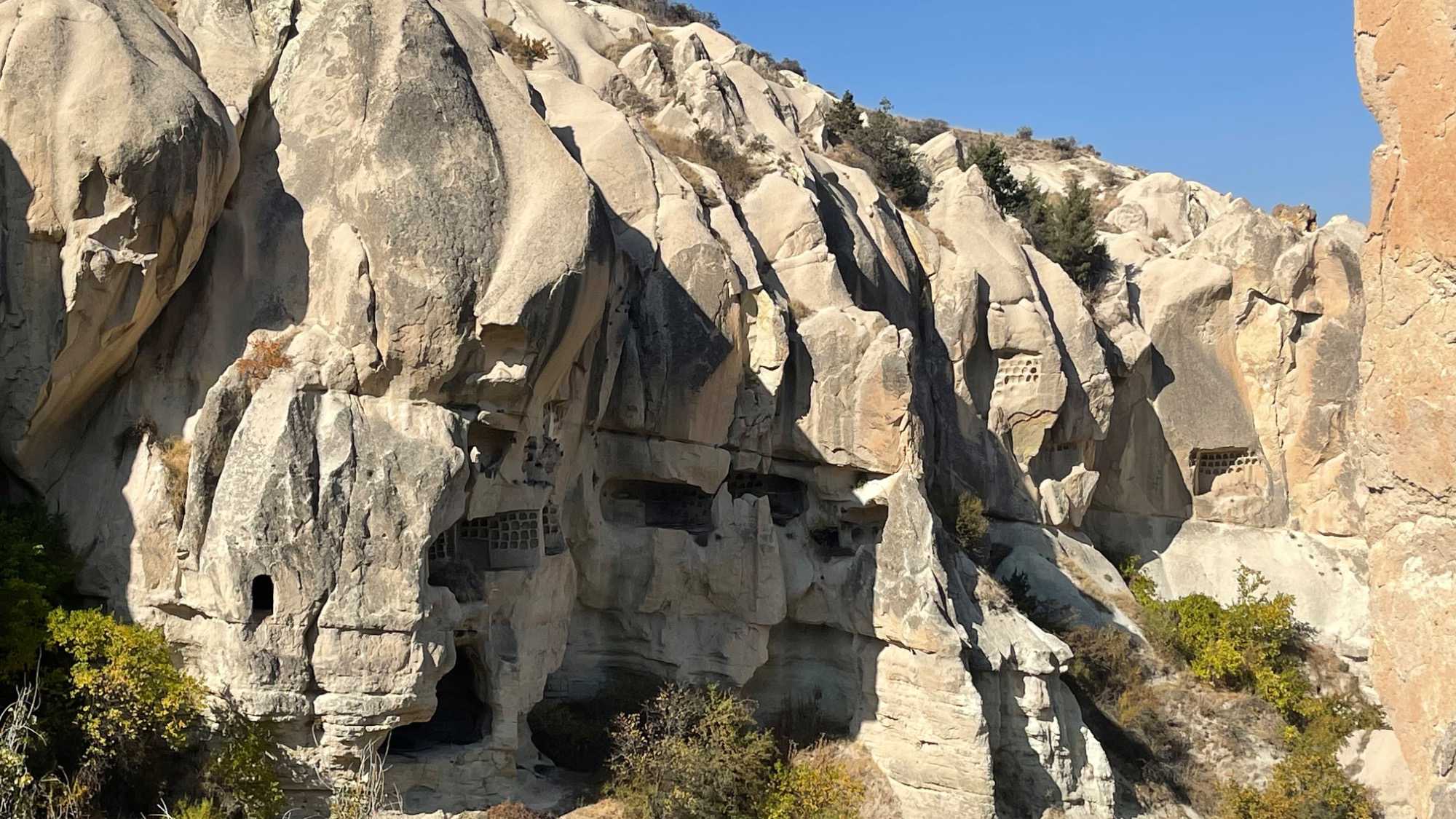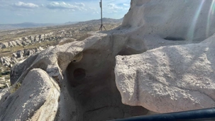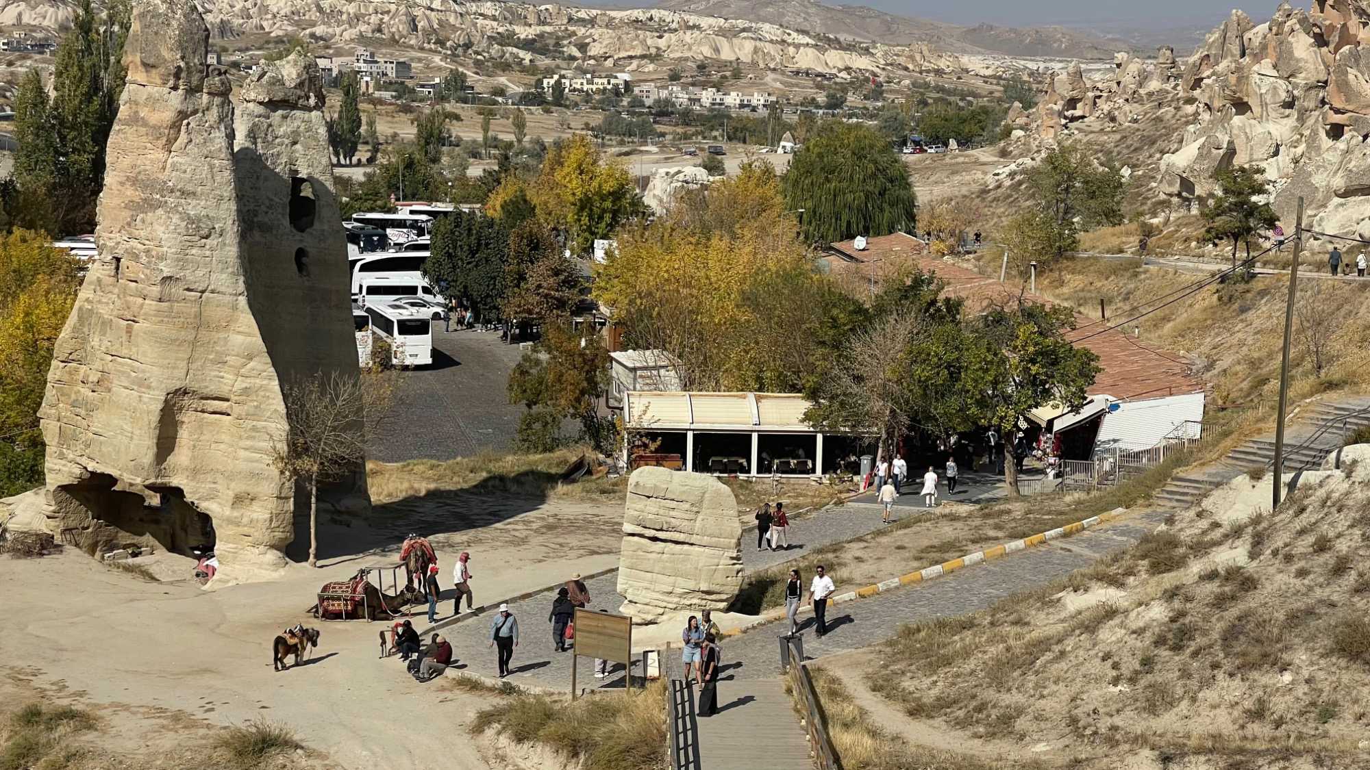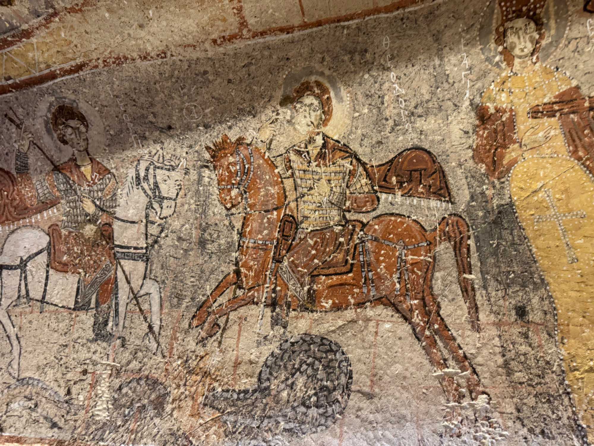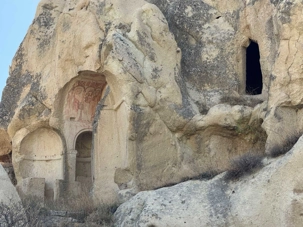 Nous partons en expédition à 9 h 30, direction la vallée de Göreme et de ses églises rupestres (qui vivent dans les rochers), que nous avons survolées. Il est interdit de prendre des photos alors vous devrez venir voir par vous-même! Dans un paysage saisissant modelé par l'érosion, la vallée de Göreme abrite des sanctuaires rupestres, témoignages irremplaçables sur l'art byzantin de la période post-iconoclaste, ainsi que des habitations, des villages troglodytiques et des villes souterraines, vestiges d'un habitat humain traditionnel dont les débuts remontent au IVe siècle. La zone est bordée sur ses flancs sud et est par des chaines de volcans éteints, avec l’Erciyes Dağ (3916 mètres) d’un côté et le Hasan Dağ (3253 m) de l’autre. La densité de ses cellules, églises, villages troglodytiques et cités souterraines creusés au cœur de la roche en fait l’un des plus grands et des plus saisissants ensembles rupestres au monde. On pense que les premiers signes de l’activité monastique en Cappadoce remontent au IVe siècle, lorsque de petites communautés anachorètes, suivant les enseignements de Basile le Grand, évêque de Kayseri, ont commencé à occuper des cellules creusées dans la roche. Plus tard, afin de résister aux invasions arabes, les communautés ont commencé à se regrouper dans des villages.