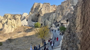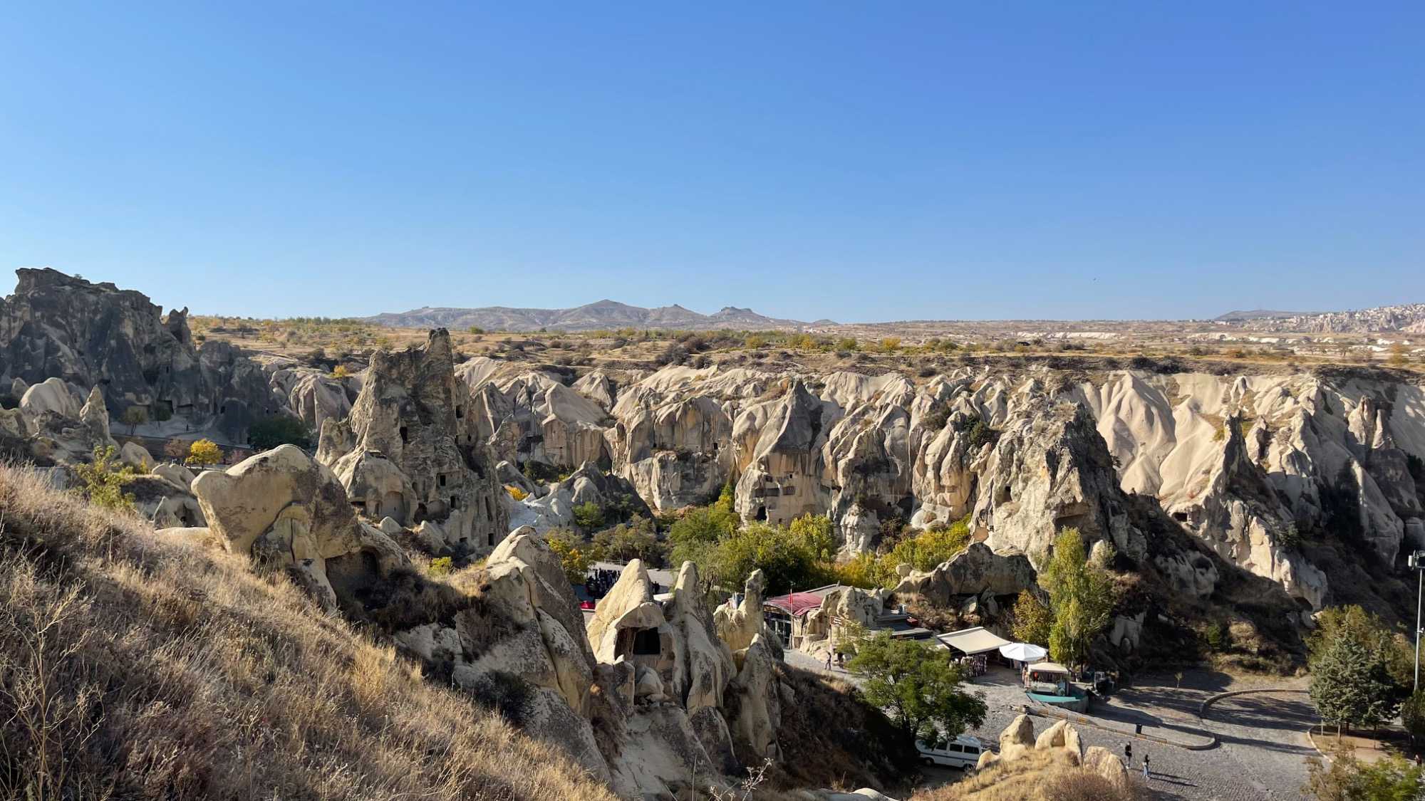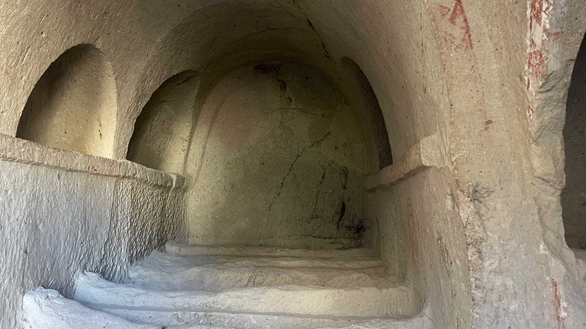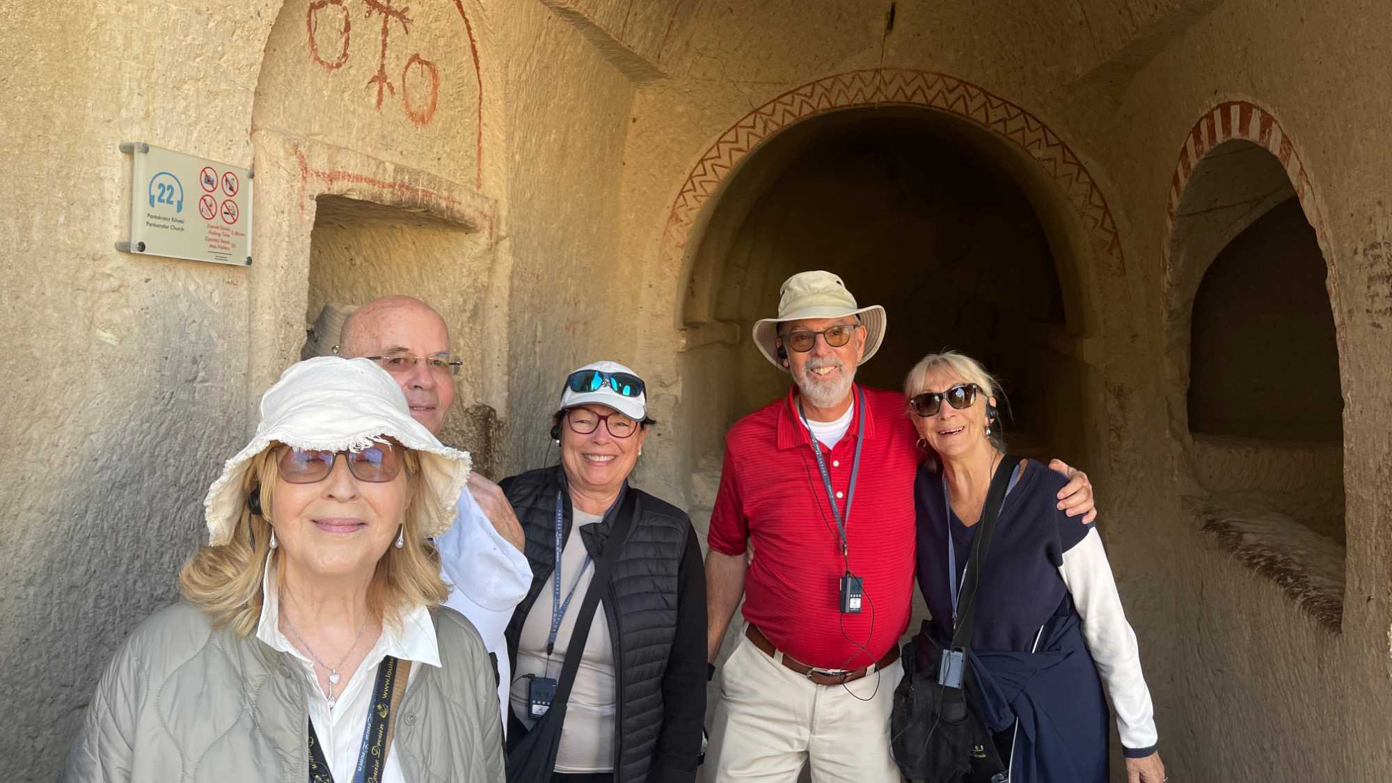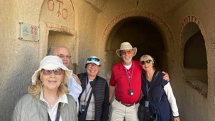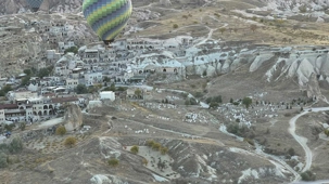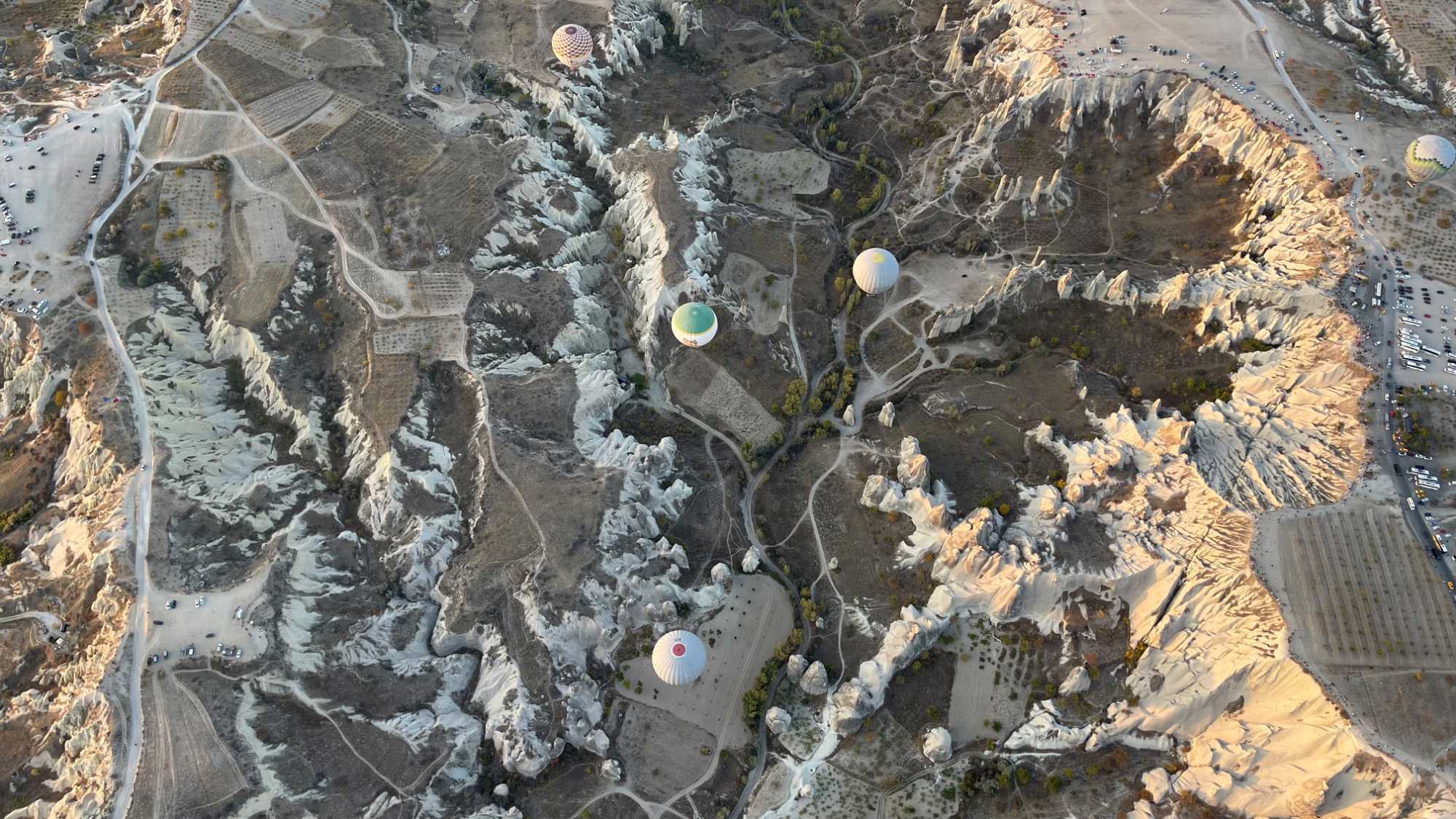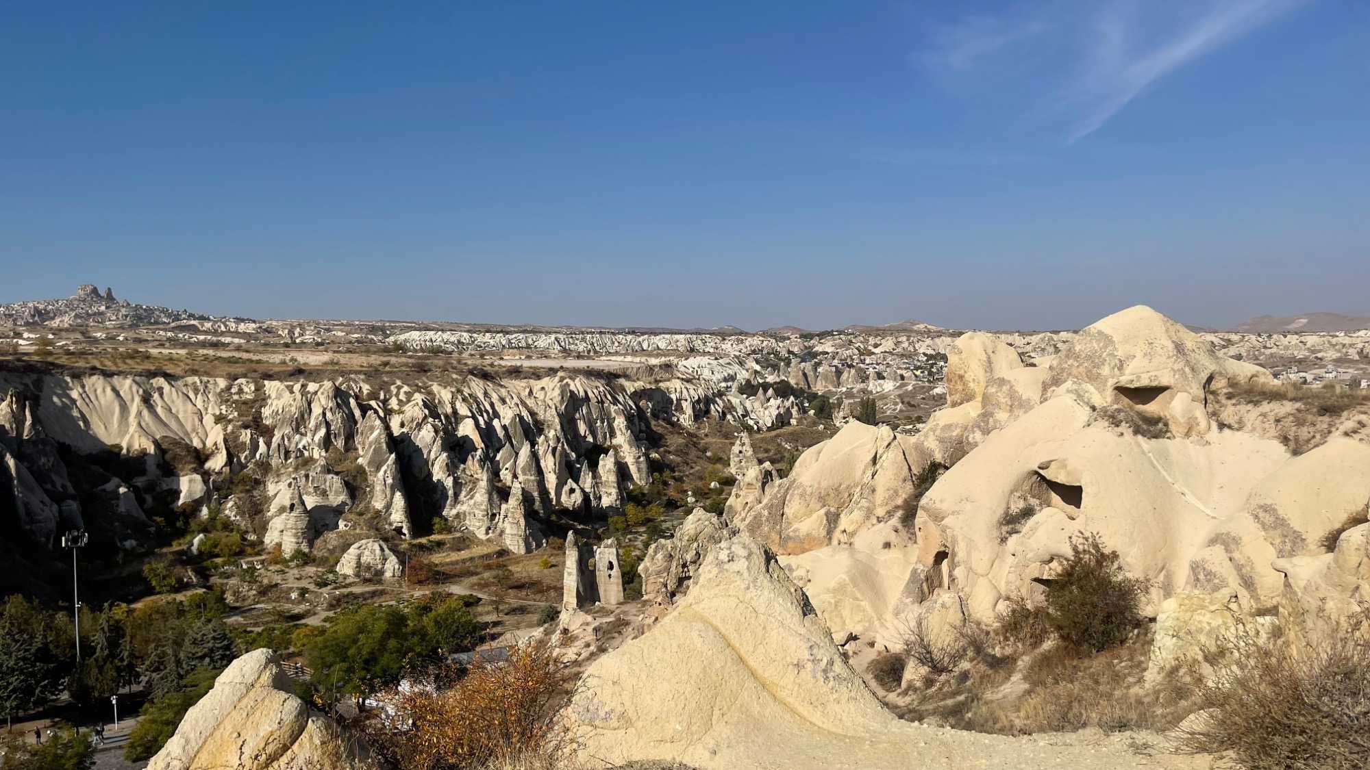 Nous partons en expédition à 9 h 30, direction la vallée de Göreme et de ses églises rupestres (qui vivent dans les rochers), que nous avons survolées. Il est interdit de prendre des photos alors vous devrez venir voir par vous-même! Dans un paysage saisissant modelé par l'érosion, la vallée de Göreme abrite des sanctuaires rupestres, témoignages irremplaçables sur l'art byzantin de la période post-iconoclaste, ainsi que des habitations, des villages troglodytiques et des villes souterraines, vestiges d'un habitat humain traditionnel dont les débuts remontent au IVe siècle. La zone est bordée sur ses flancs sud et est par des chaines de volcans éteints, avec l’Erciyes Dağ (3916 mètres) d’un côté et le Hasan Dağ (3253 m) de l’autre. La densité de ses cellules, églises, villages troglodytiques et cités souterraines creusés au cœur de la roche en fait l’un des plus grands et des plus saisissants ensembles rupestres au monde. On pense que les premiers signes de l’activité monastique en Cappadoce remontent au IVe siècle, lorsque de petites communautés anachorètes, suivant les enseignements de Basile le Grand, évêque de Kayseri, ont commencé à occuper des cellules creusées dans la roche. Plus tard, afin de résister aux invasions arabes, les communautés ont commencé à se regrouper dans des villages.