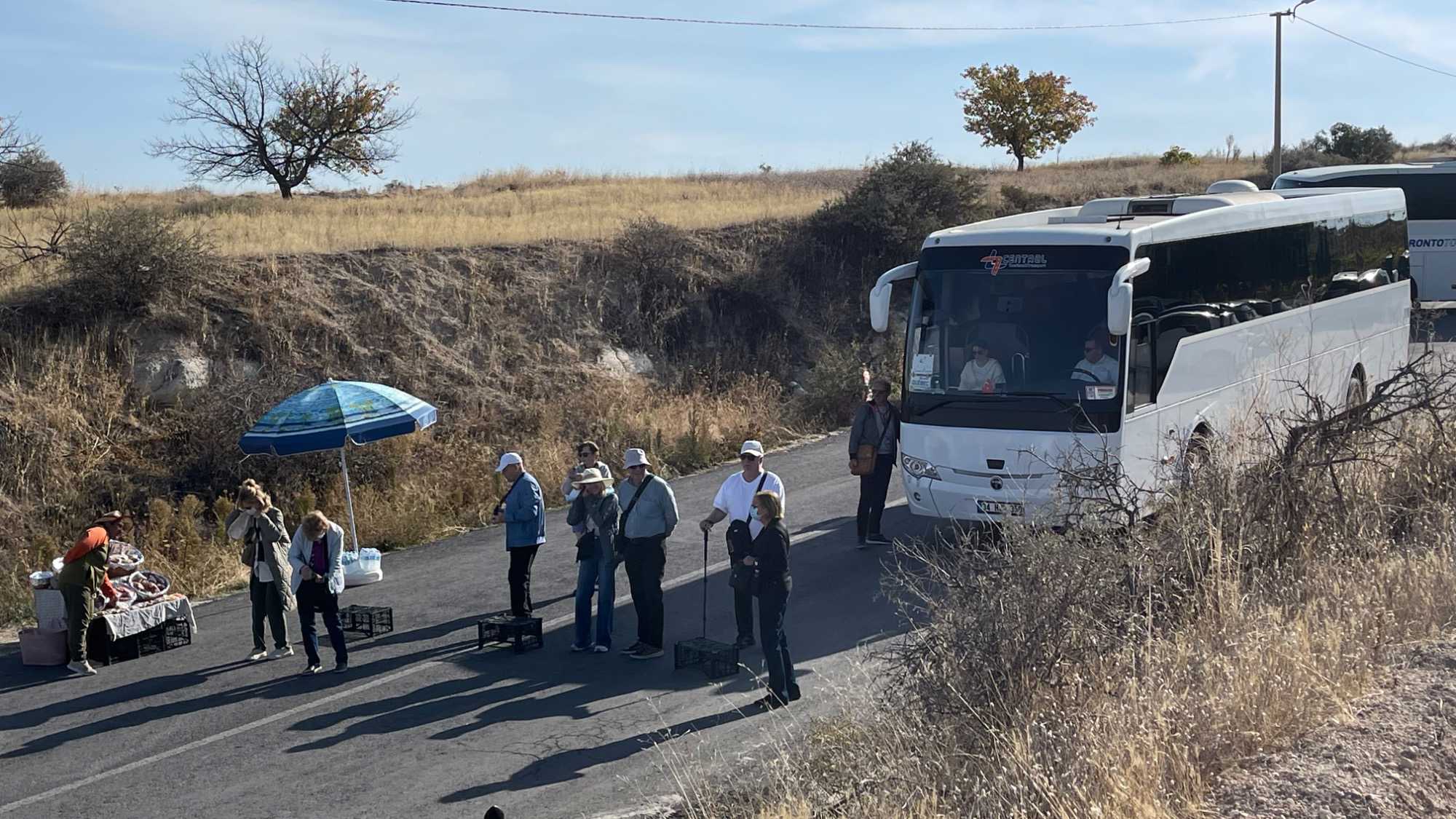 Arrêt à la vallée des pigeons où les pigeons vivent dans des petites grottes à même le tuf. Les habitants de la ville utilisent leurs fientes comme engrais.