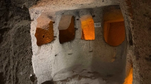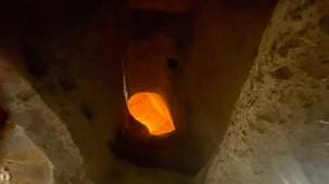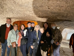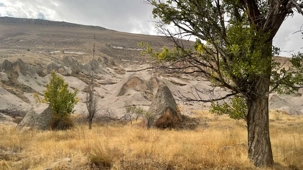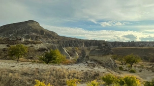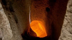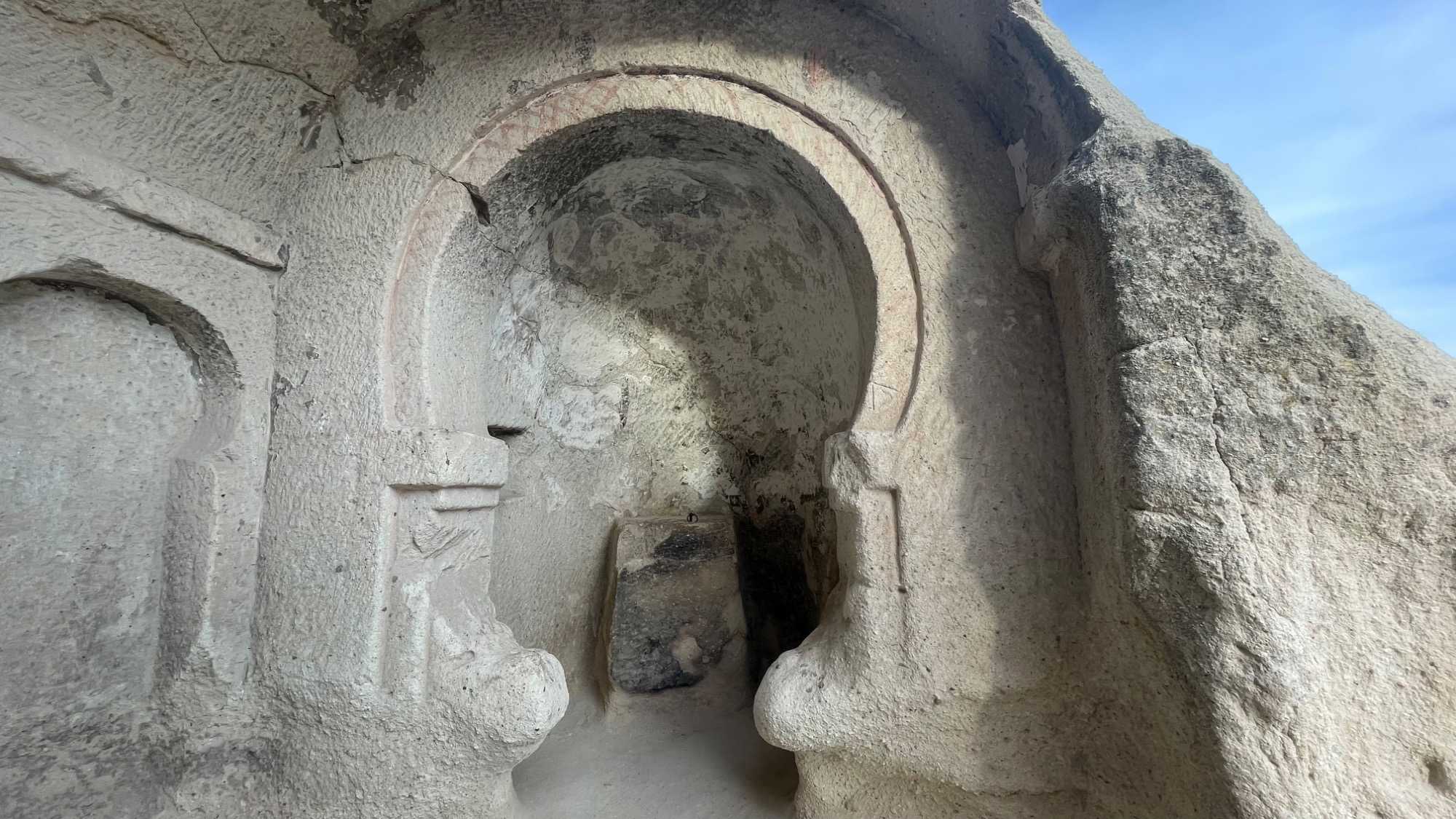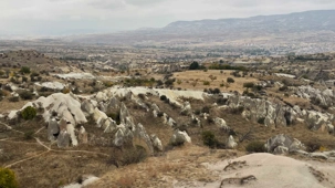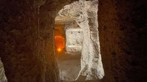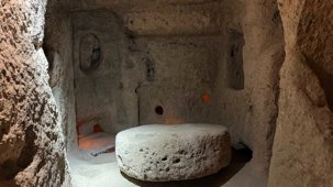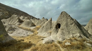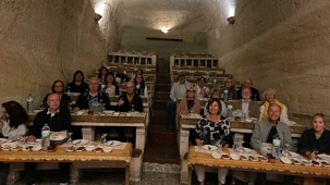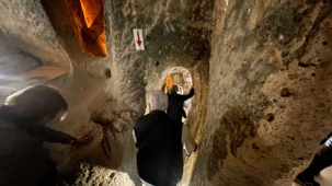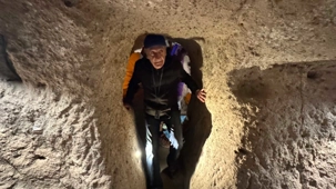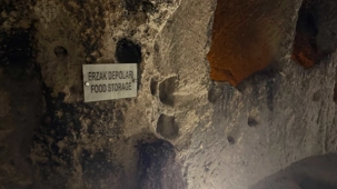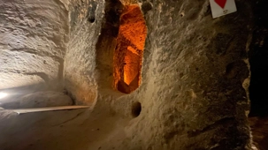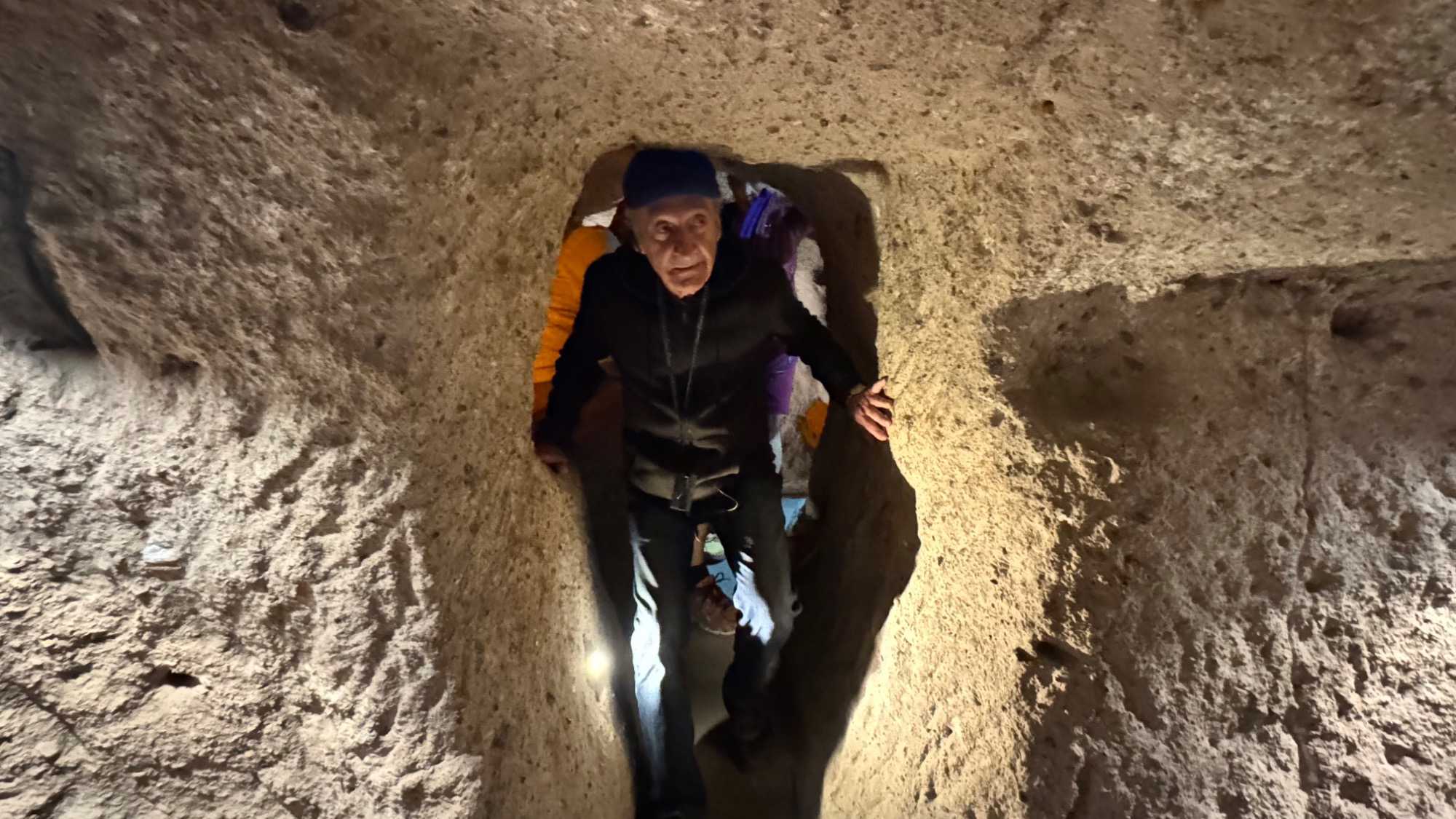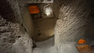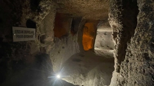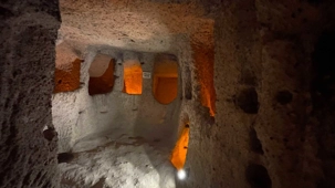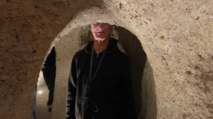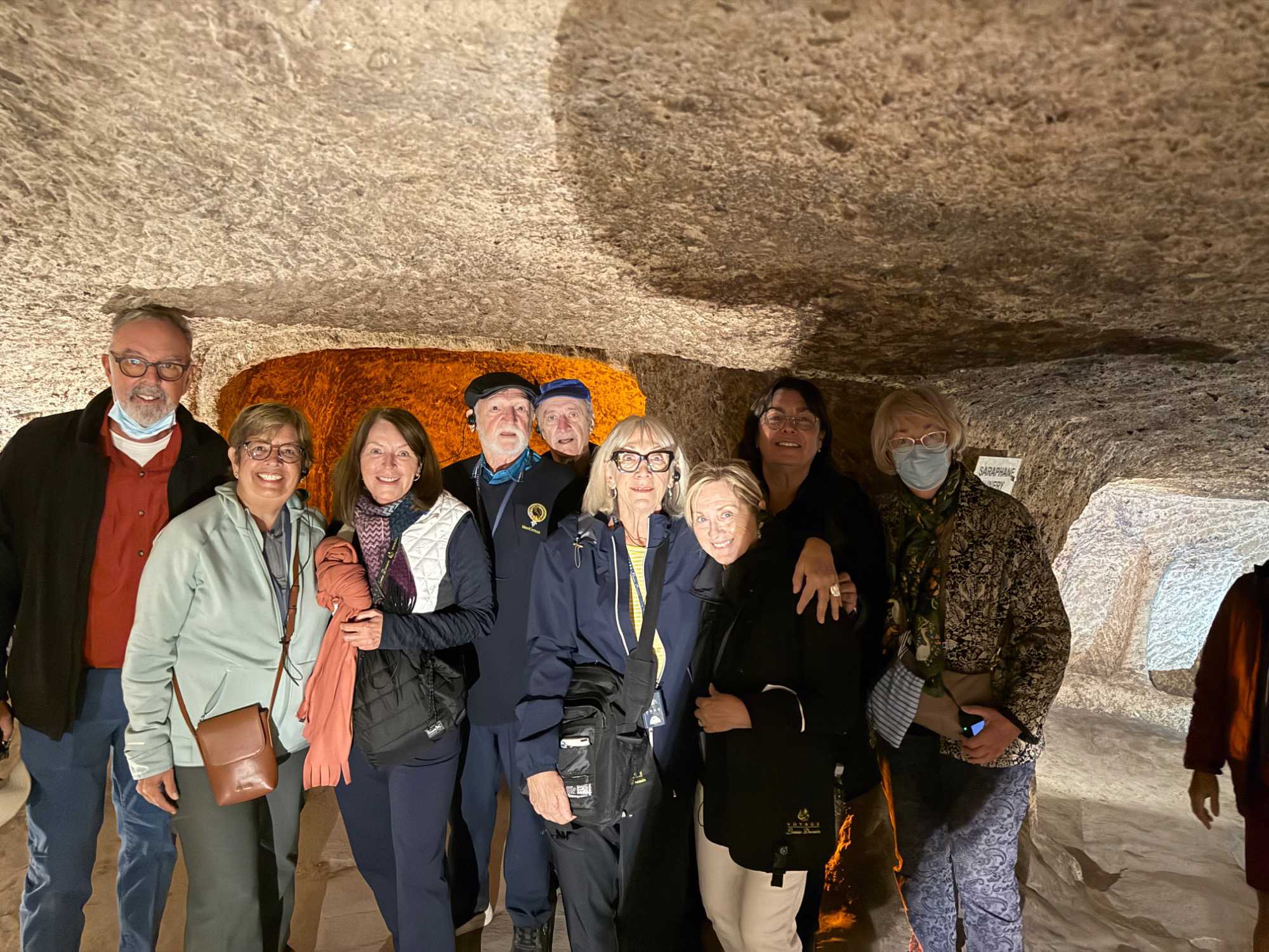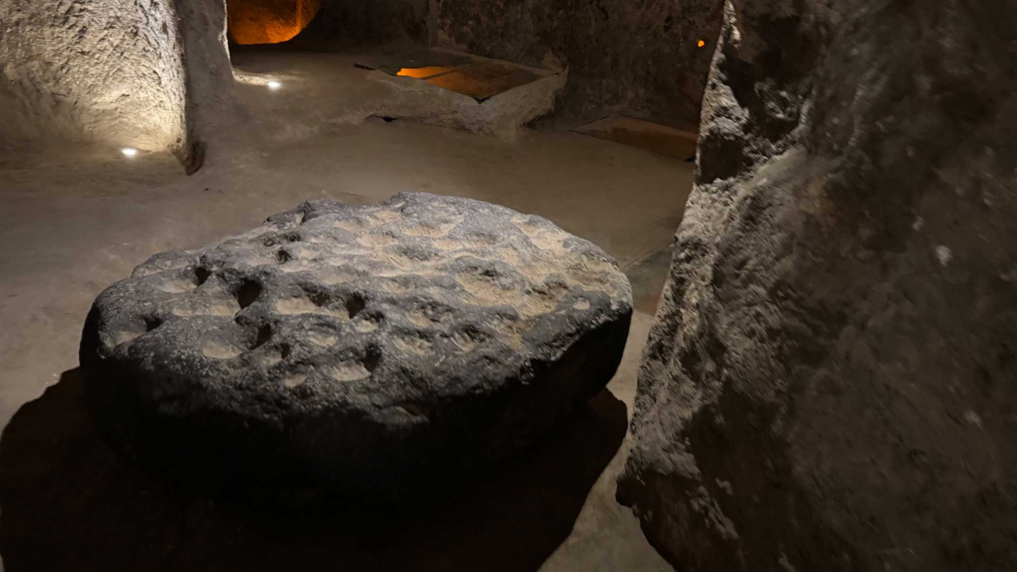 Second arrêt : la ville souterraine de Kaymakli, la plus remarquable des cinq cités souterraines ouvertes au public, sur un total de 200 sites de ce genre. Les premières excavations dans le tuf friable de la colline remontent vers 1300 av. J.-C, l'existence d'habitations souterraines dans la région est attestée par Xénophon (Ve-IVe siècles av. J.-C.). Mais cette cité, comme les autres, a été essentiellement creusée par des populations paléochrétiennes souhaitant se protéger contre des persécutions et des invasions. Huit mille chrétiens, fuyant les persécutions romaines, y auraient trouvé refuge. Plus tard, des populations s'y réfugièrent, notamment à partir du VIIe siècle. Elle a grandi au fil des siècles, comptant finalement des kilomètres de galeries. L'espace est organisé autour de cheminées d'aération. Une seule de ces cheminées dessert les pièces ouvertes au public.