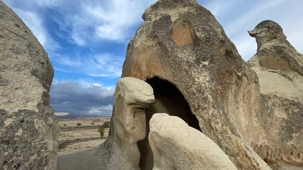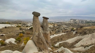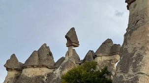 Cinquième arrêt : la vallée Pasabag, vallée des moines, est l’une des beautés uniques de la région. Elle fascine avec ses cheminées de fées, légendaires tant dans le pays qu’à l’étranger. Les cheminées de fées, les corps coniques et les chapeaux en forme de champignon sont formées par l’effet des eaux de crue s’écoulant des pentes dans la vallée, érodant les roches dans la structure de tuf, offrant une vue magnifique. Les plus petites cheminées de fées mesurent un mètre de haut et la plus grande mesure 15 mètres. La vallée est connue comme le lieu où les moines et les prêtres se sont retirés de la société. C’est pourquoi on l’appelle la Vallée des moines.