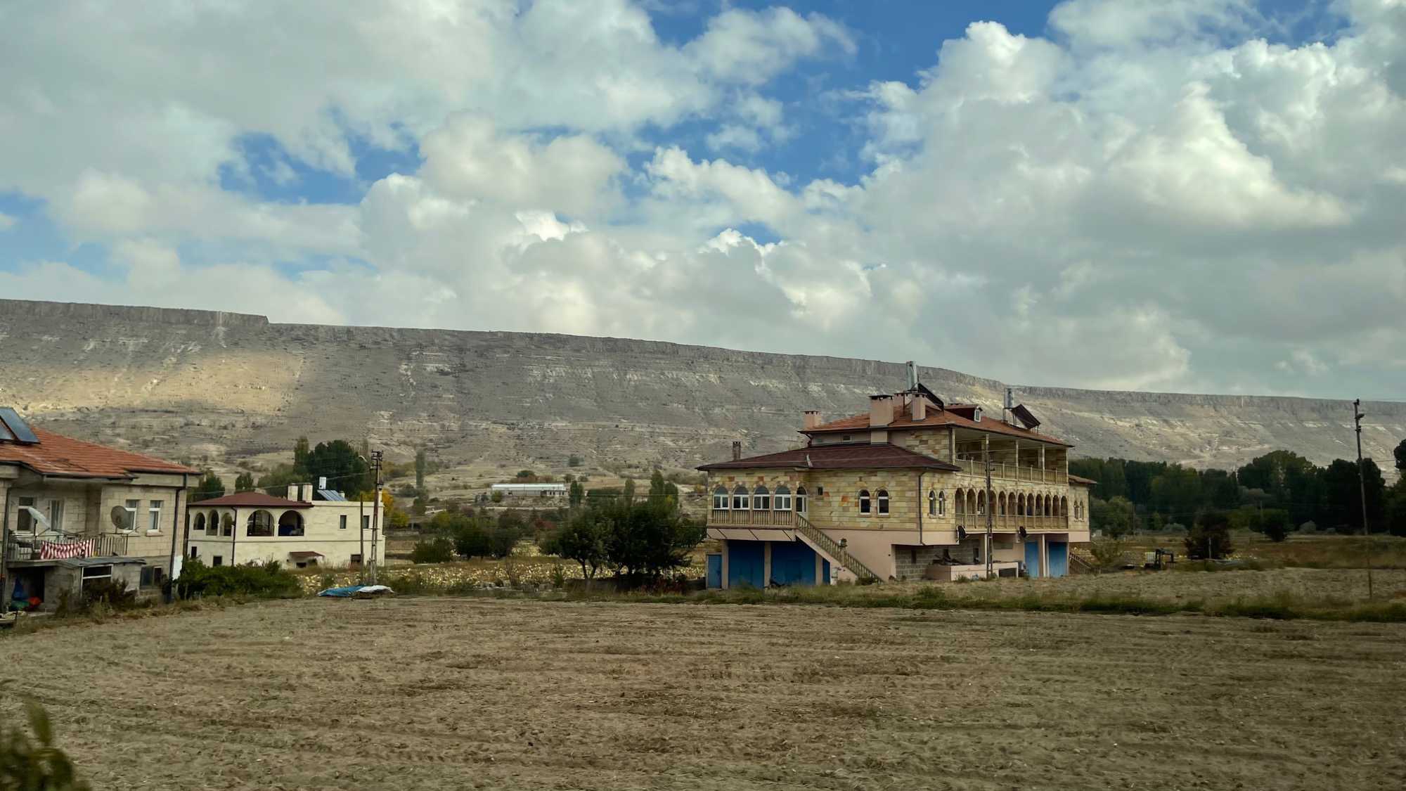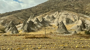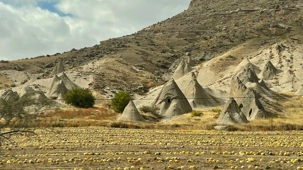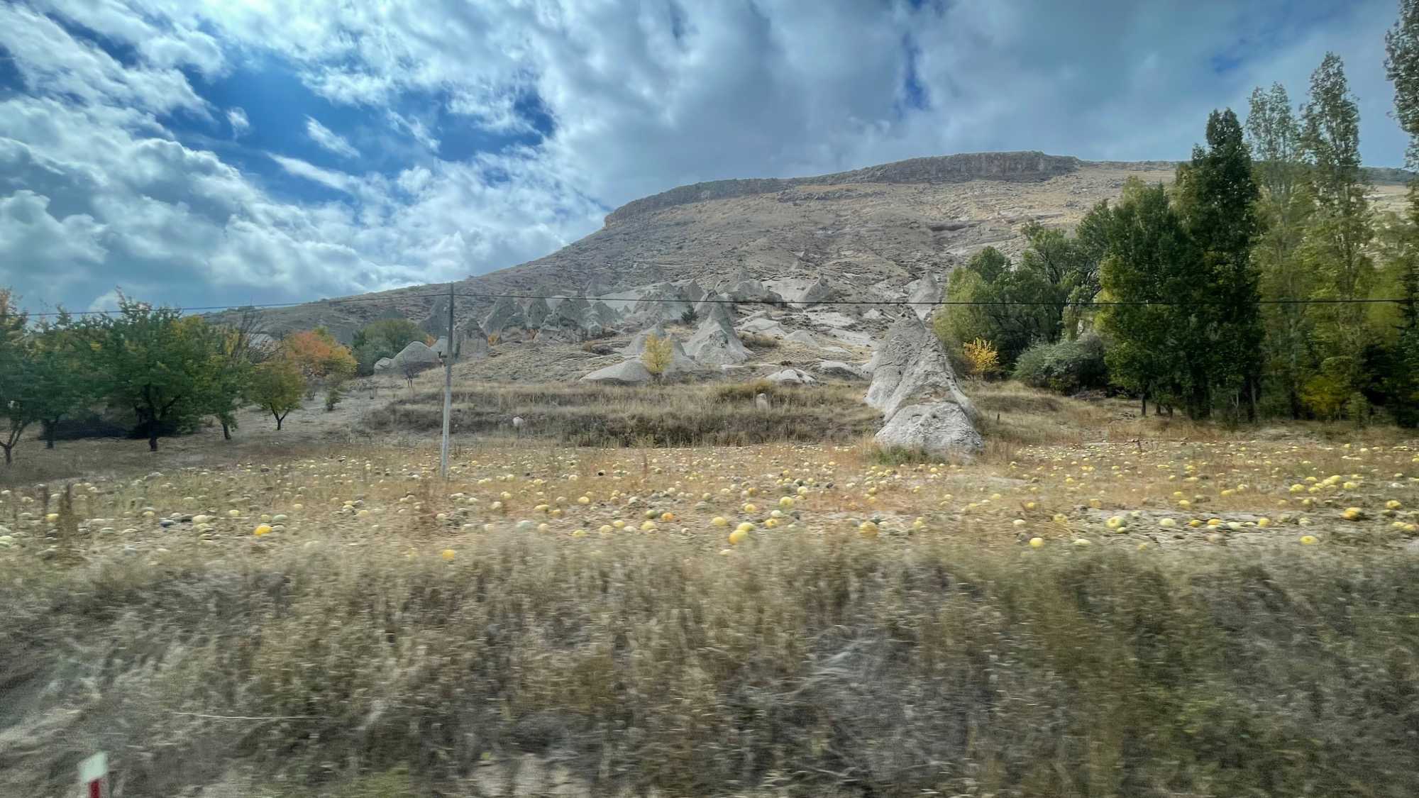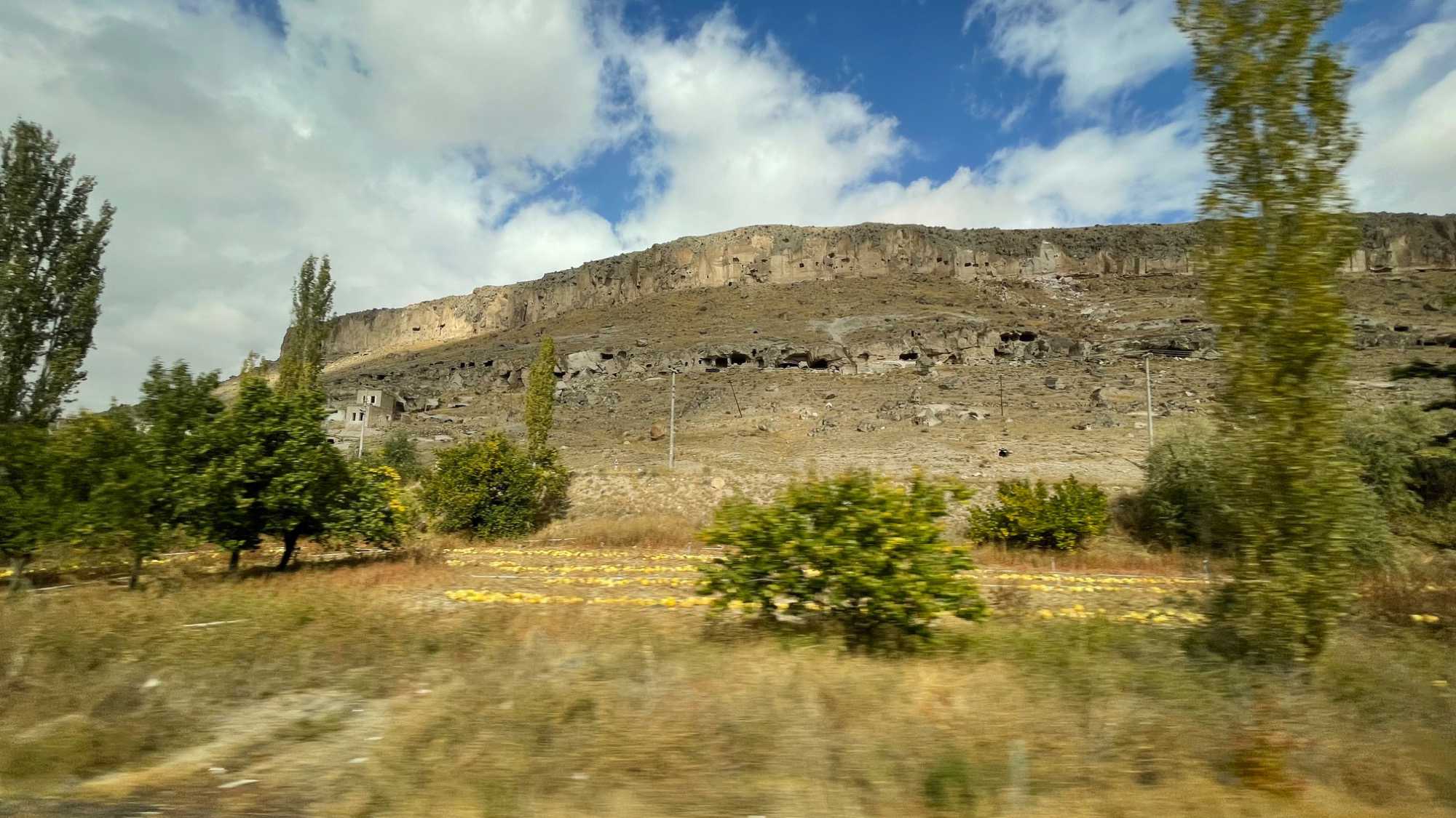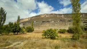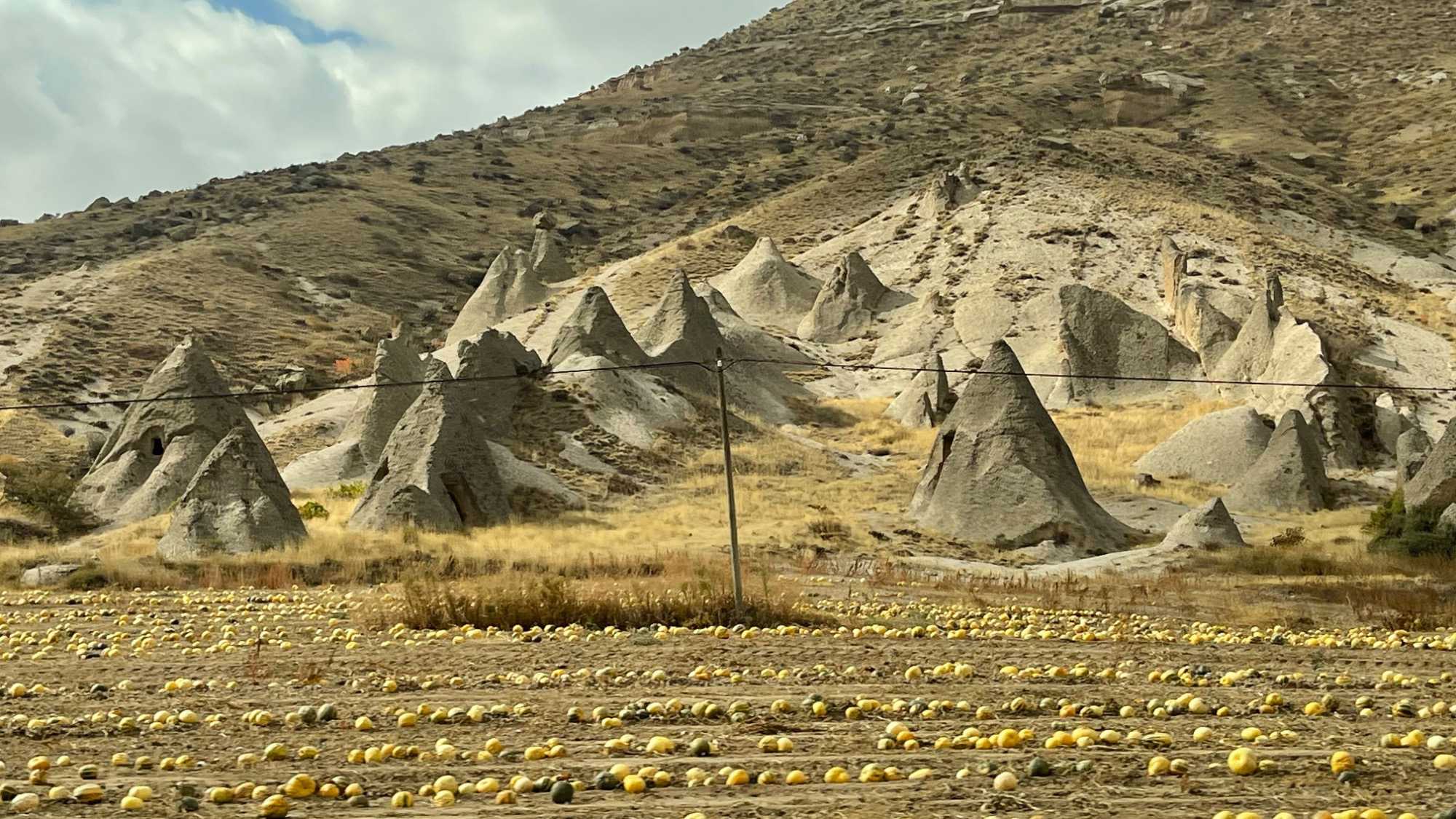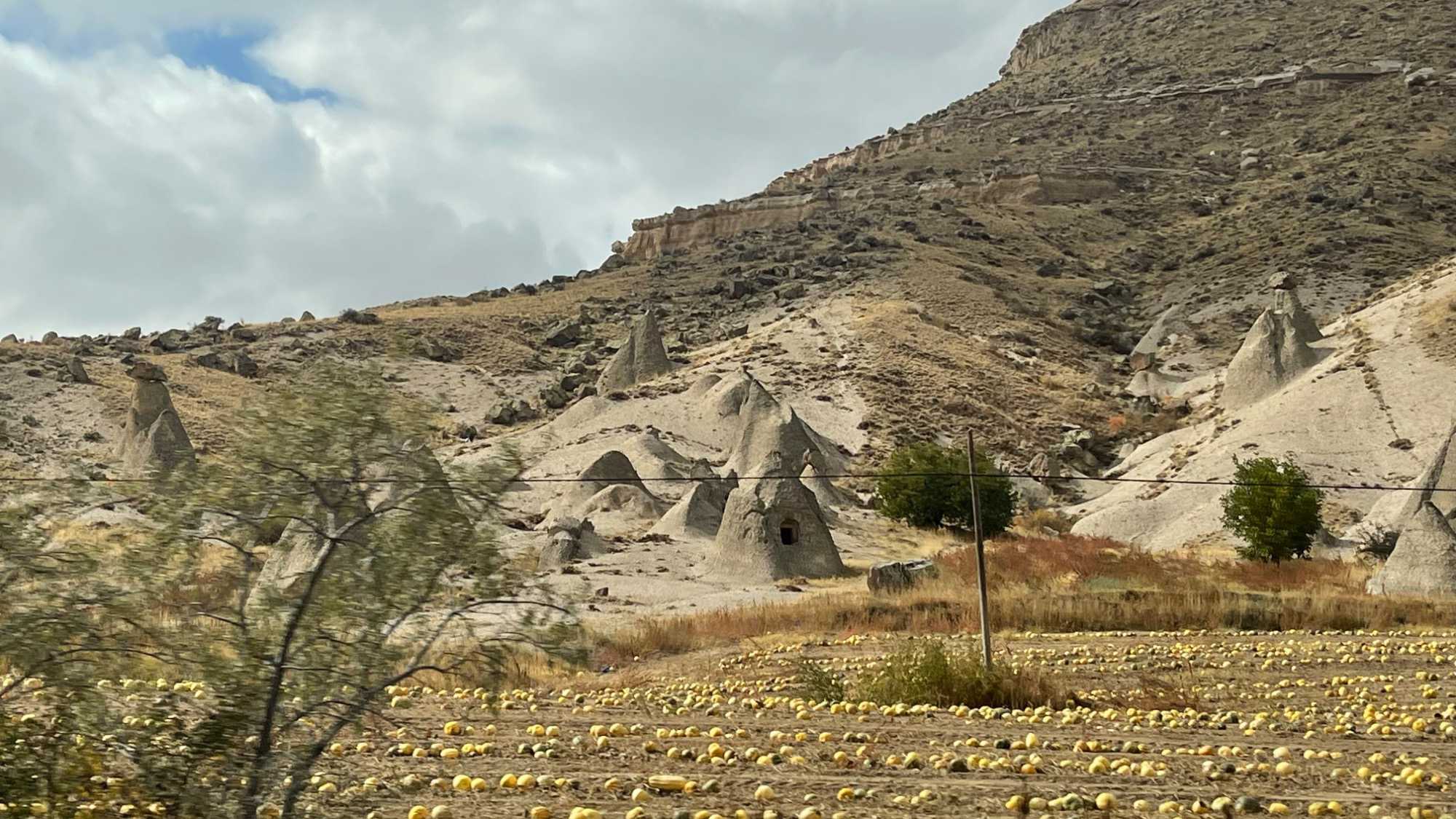 En traversant les villages, le décor semble lunaire. On voit de grands champs, des cheminées de fées, des campements de travailleurs saisonniers et des caveaux à légumes munis de cheminées. La route est très sinueuse.