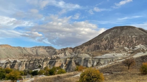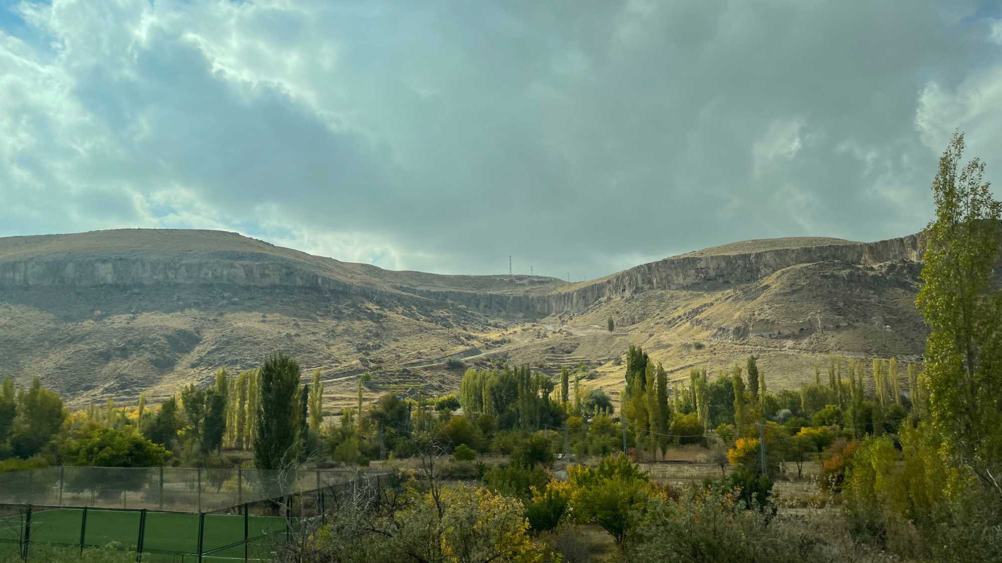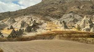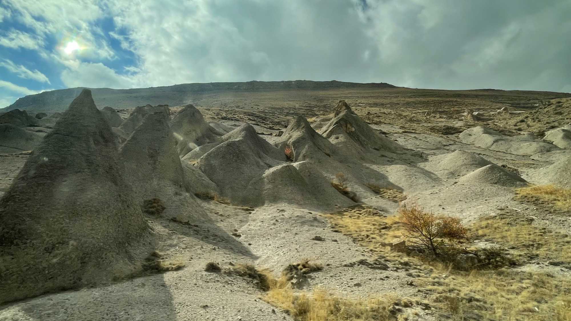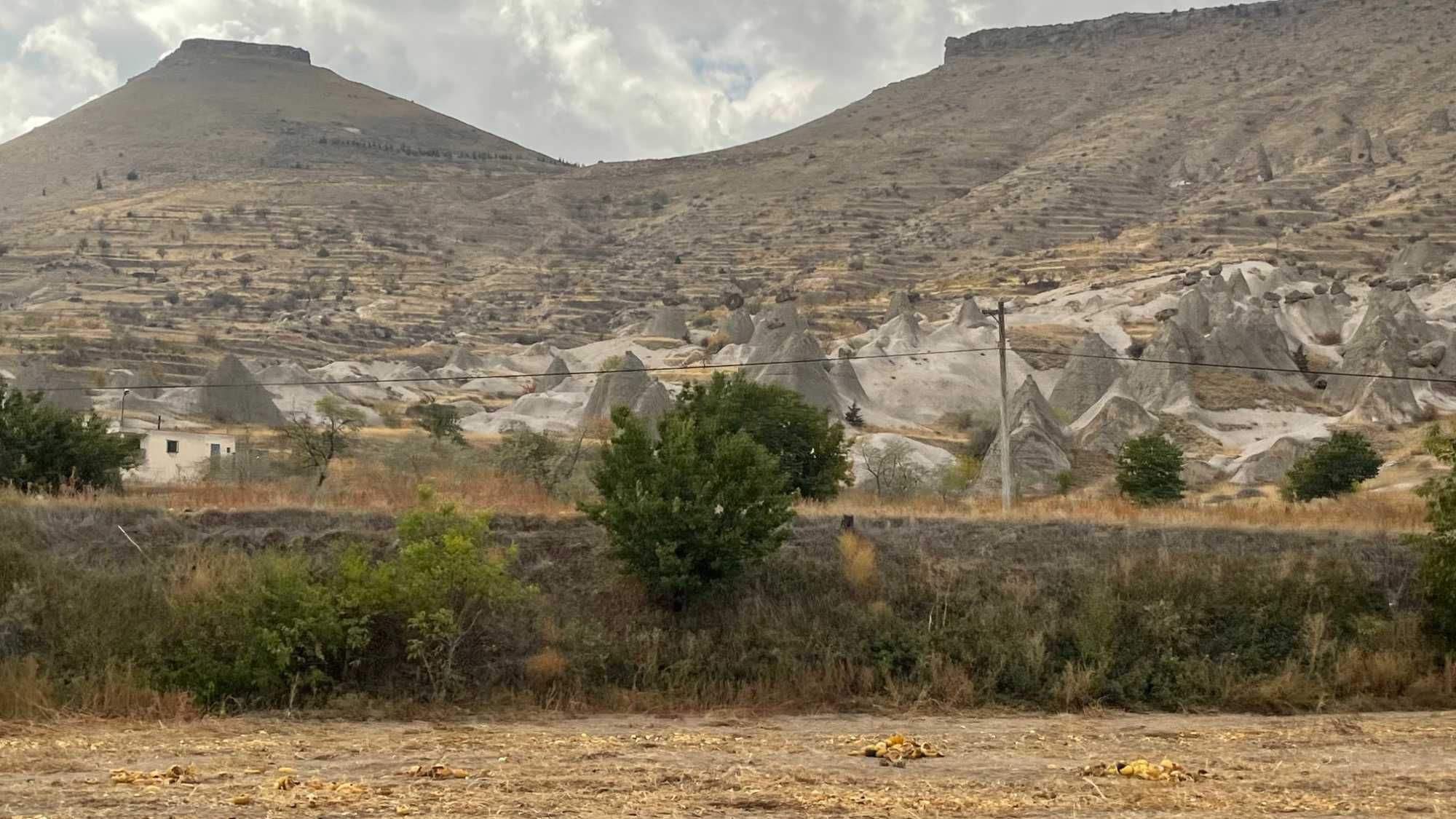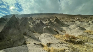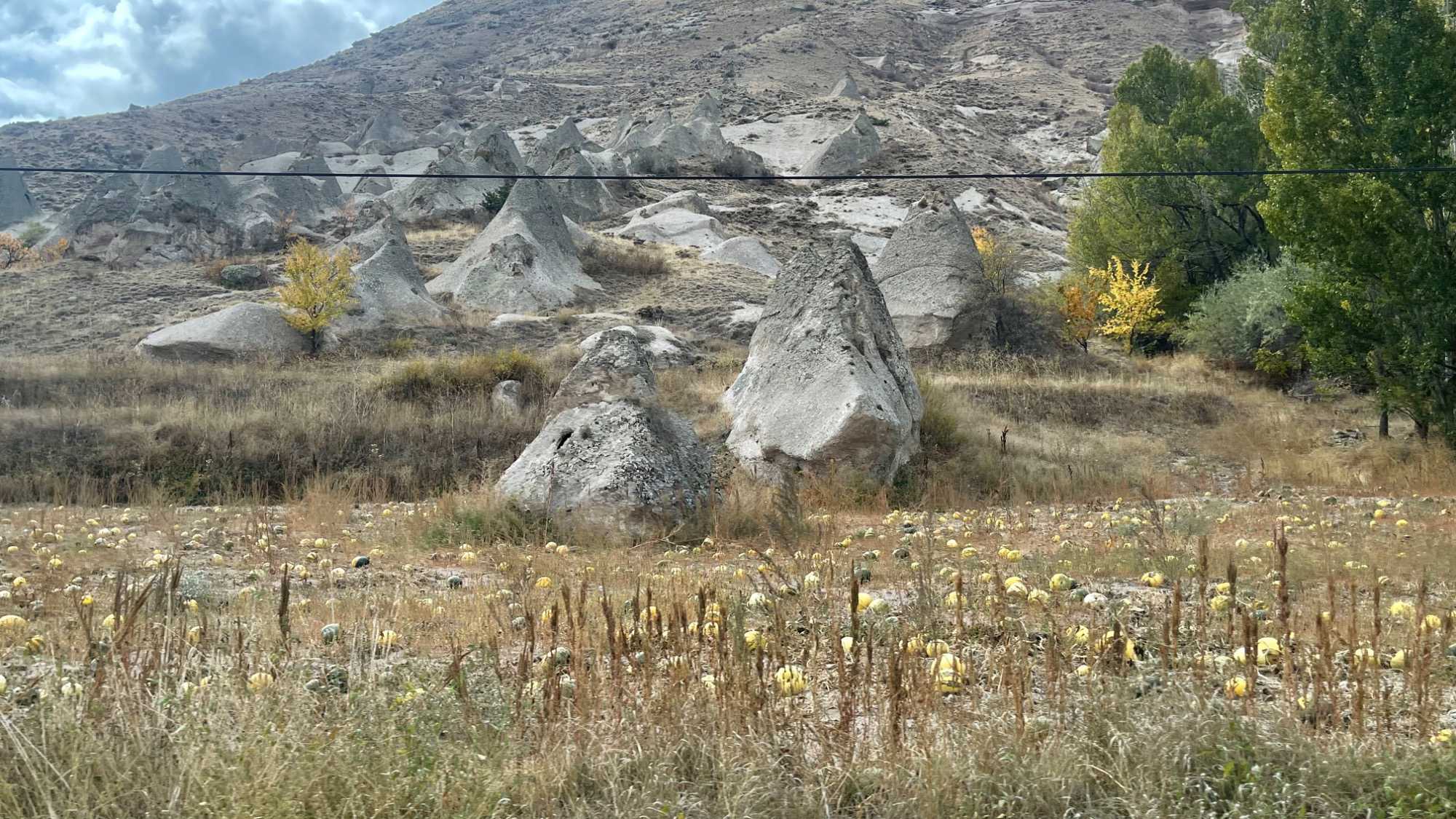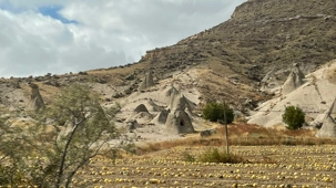 En traversant les villages, le décor semble lunaire. On voit de grands champs, des cheminées de fées, des campements de travailleurs saisonniers et des caveaux à légumes munis de cheminées. La route est très sinueuse.