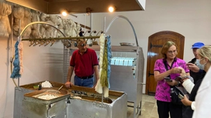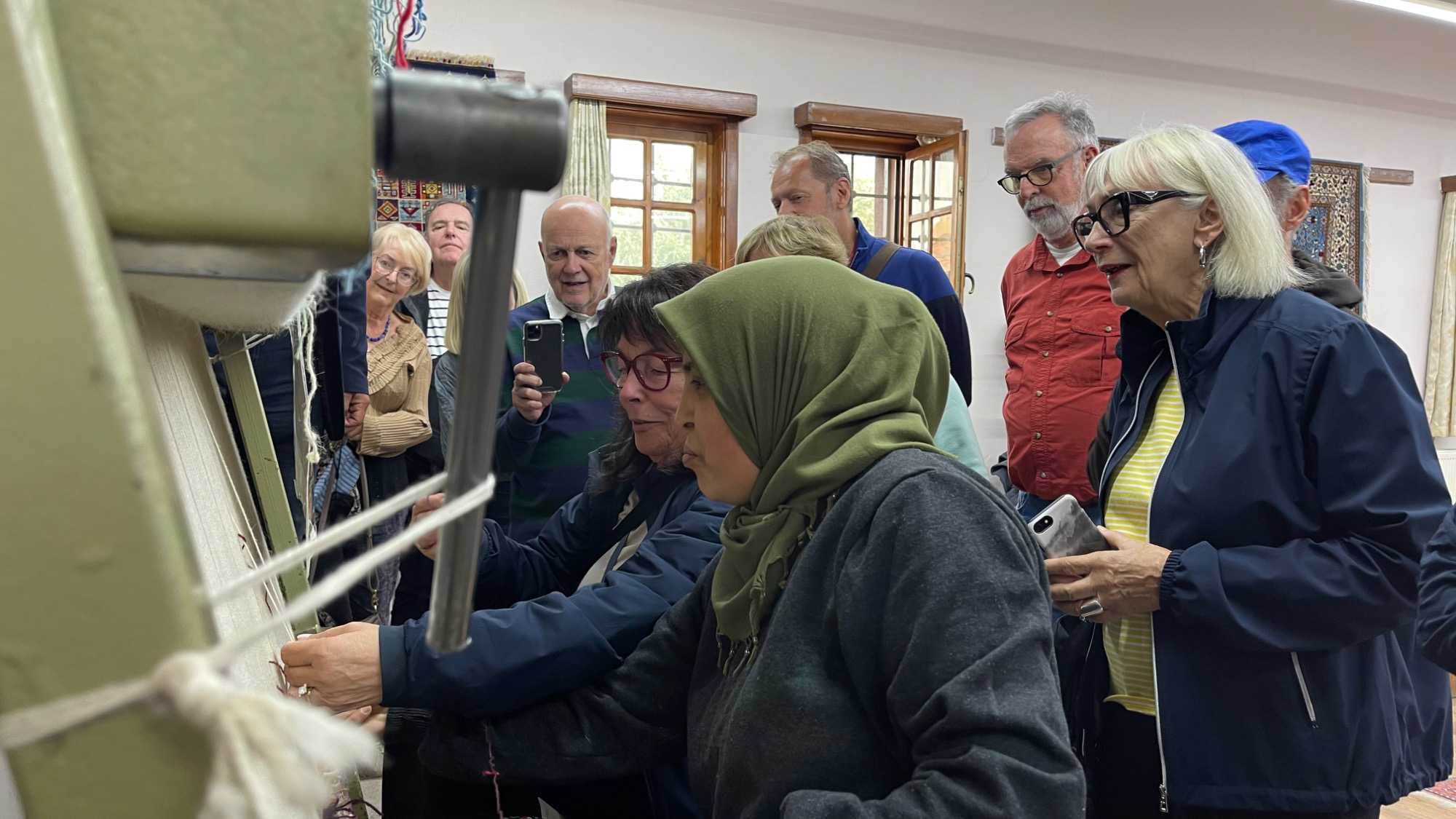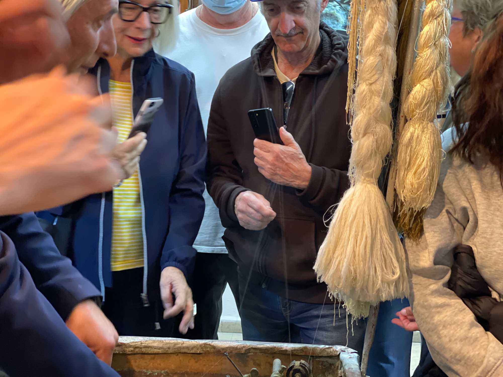 Quatrième arrêt : nous visitons une usine de fabrication de tapis, turques évidemment! On nous explique le processus de fabrication et on nous amène dans une pièce afin de nous montrer différentes sortes de tapis, à différents prix. Vous savez que pour faire un tapis de soie, il faut 144 nœuds au cm2? Qu’un cocon peut fournir 900 à 1200 mètres de fils? Certains tapis sont fabriqués à la main et d’autres mécaniquement. C’est d’une beauté et d’une douceur incroyable.