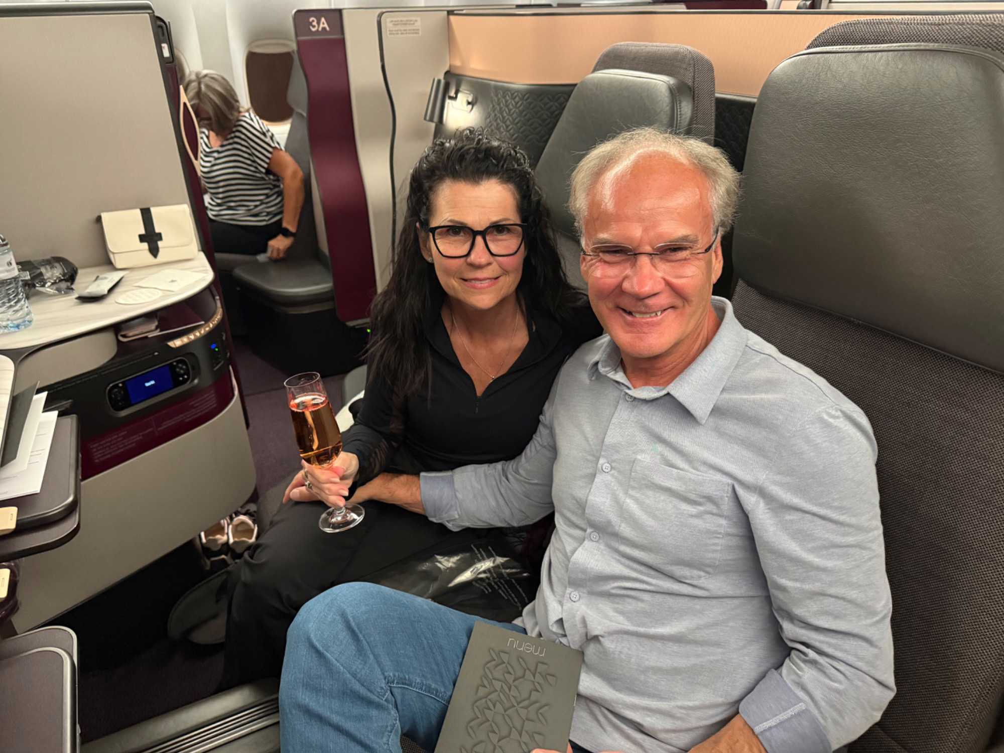 Nous quittons Montréal à bord du vol Qatar Airways à destination de Doha, où nous effectuerons notre correspondance vers la ville du Cap, point de départ de notre périple africain. Notre groupe, composé de 15 voyageurs enthousiastes, se retrouve à l’aéroport, fébrile et souriant. L’ambiance est joyeuse, les échanges vont bon train — chacun partage ses attentes, ses rêves, ses préparatifs de dernière minute. Après l’enregistrement, un moment convivial autour d’un repas vient clore cette longue journée avant l’embarquement pour le grand voyage.