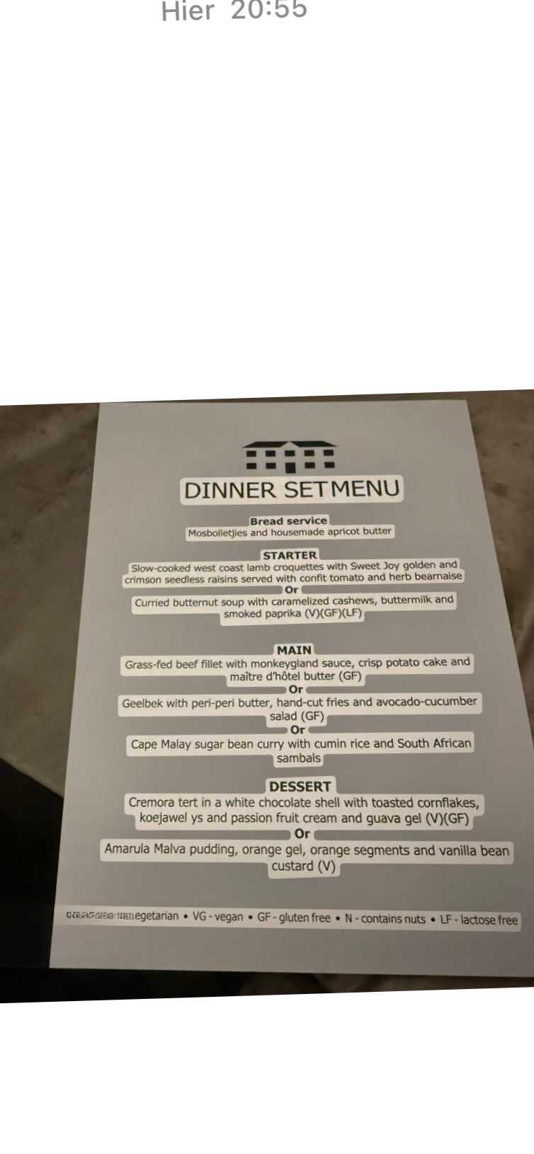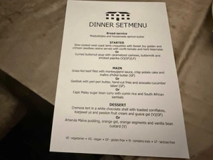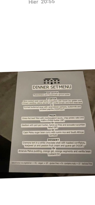 En soirée, notre table nous attendait à L’Aubergine, un restaurant emblématique du Cap, réputé pour sa cuisine inventive et élégante.