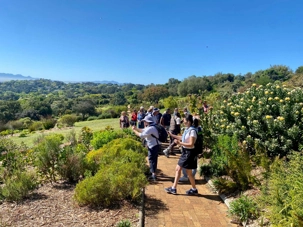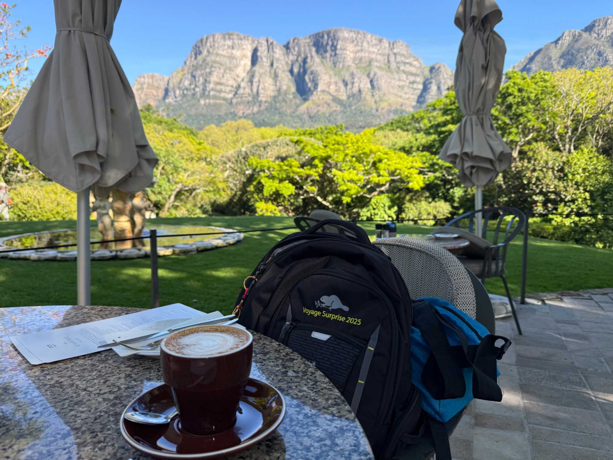 Après une nuit paisible dans un lit des plus confortables, tout le groupe s’est réveillé émerveillé devant le magnifique panorama des montagnes. Le soleil se levait doucement, enveloppant la région d’une lumière dorée, et l’air pur du matin emplissait nos chambres d’une belle énergie. Quelle merveilleuse façon de commencer notre première vraie journée de visite au Cap !