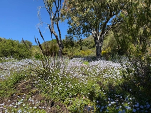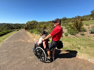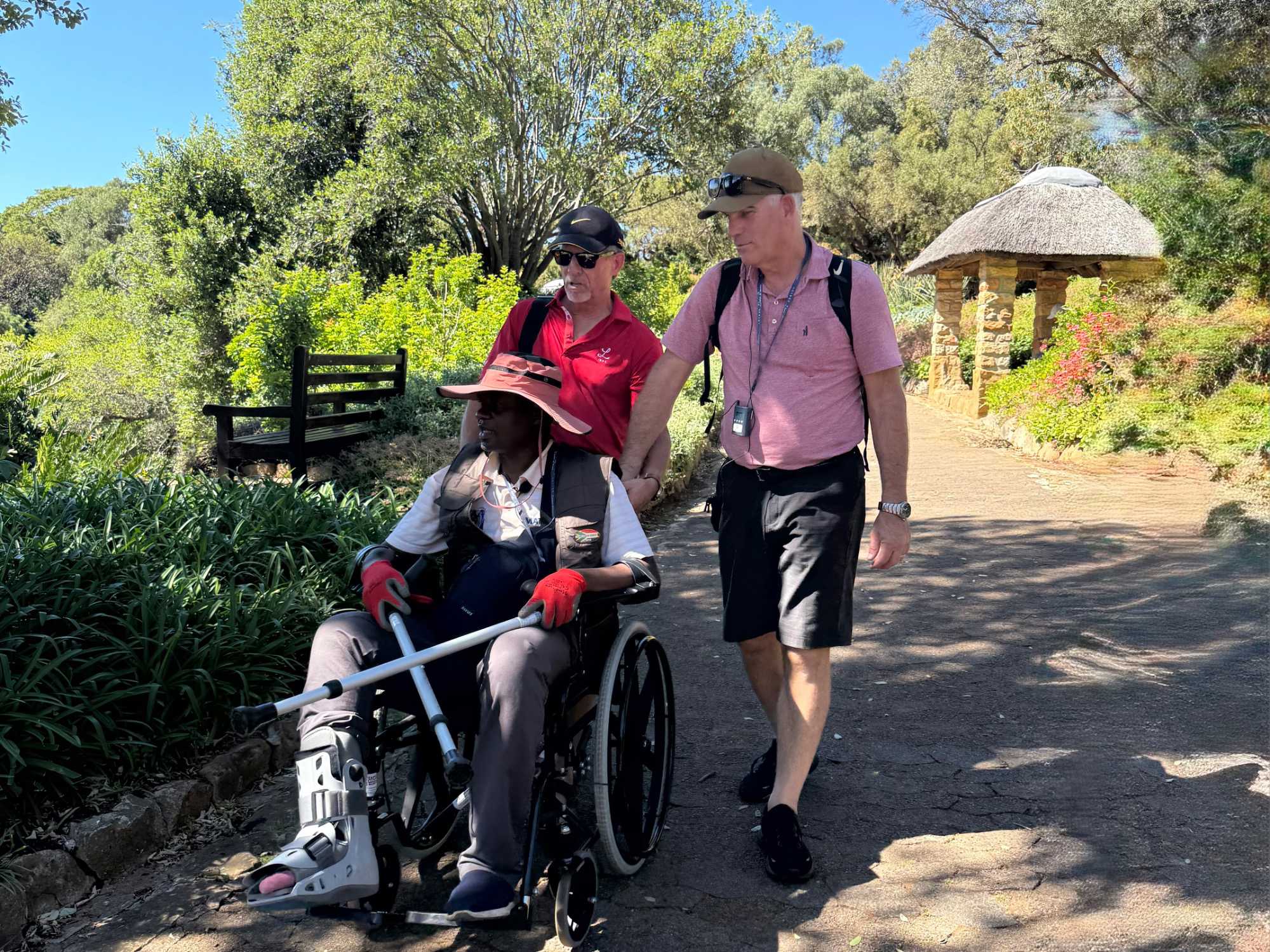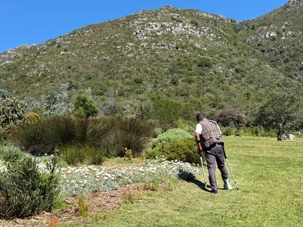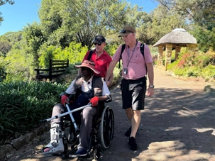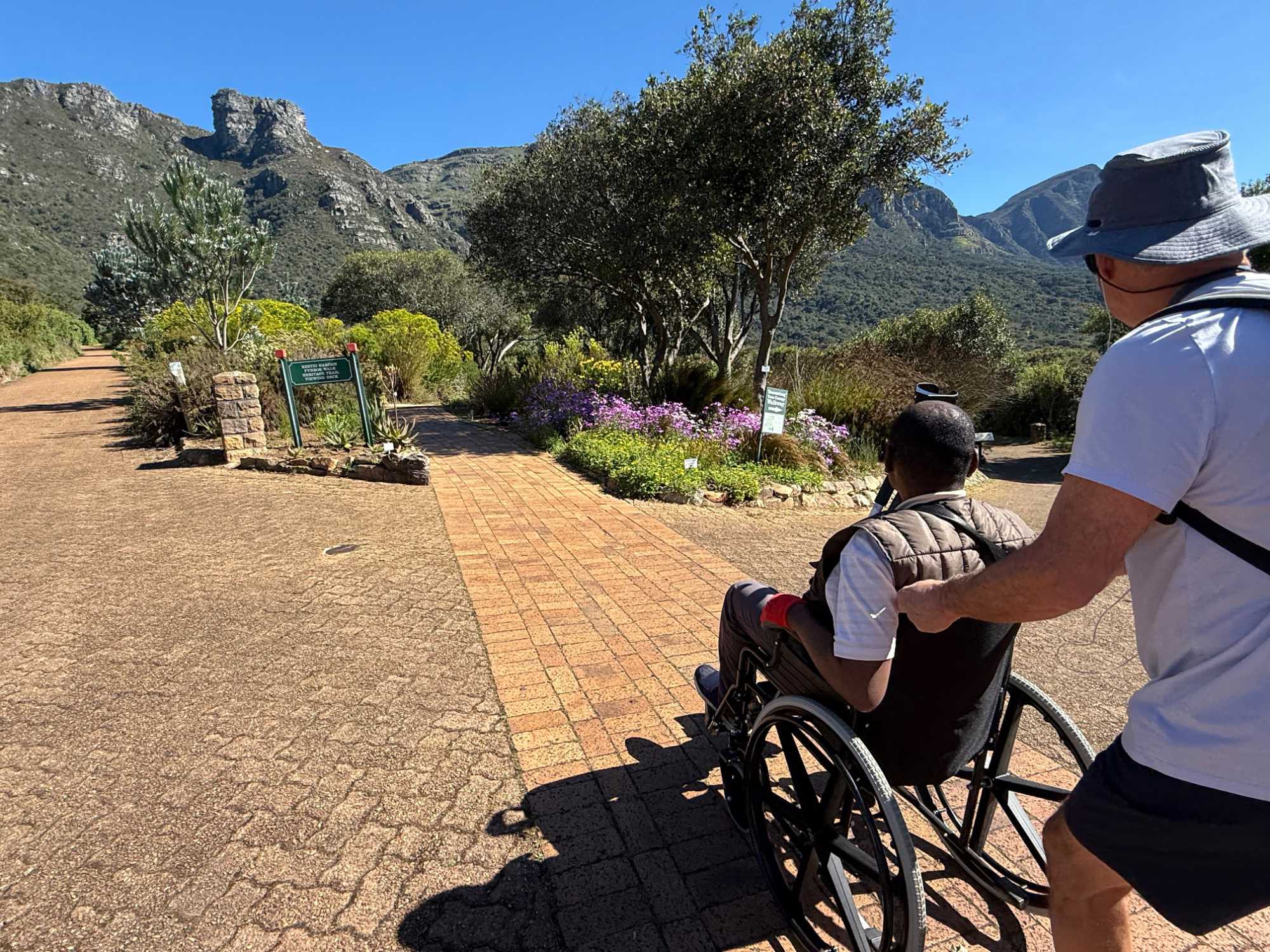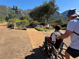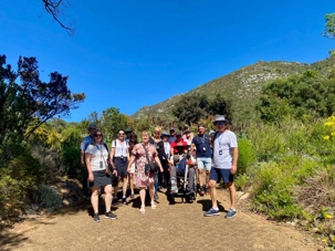 Après un copieux petit-déjeuner, nous avons pris la route à 9 h, accompagnés de Léonce, notre guide, toujours aussi passionné et attentionné. Ce matin-là, il avait eu la délicatesse de se procurer une chaise roulante pour lui-même, afin de pouvoir accompagner le groupe tout au long de la visite malgré ses difficultés à marcher. Et quel bel exemple de détermination ! Installé confortablement, Léonce a continué à nous diriger à travers les sentiers et surtout à nous expliquer les plantes, les écosystèmes et les secrets de la flore du Cap avec la même passion communicative qu’à l’habitude. Merci à tous mes gentils voyageurs qui ont pris soin de Léonce en poussant la chaise aujourd’hui.