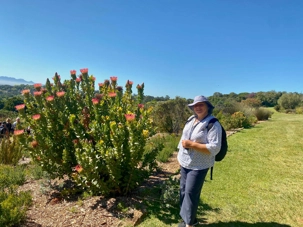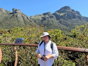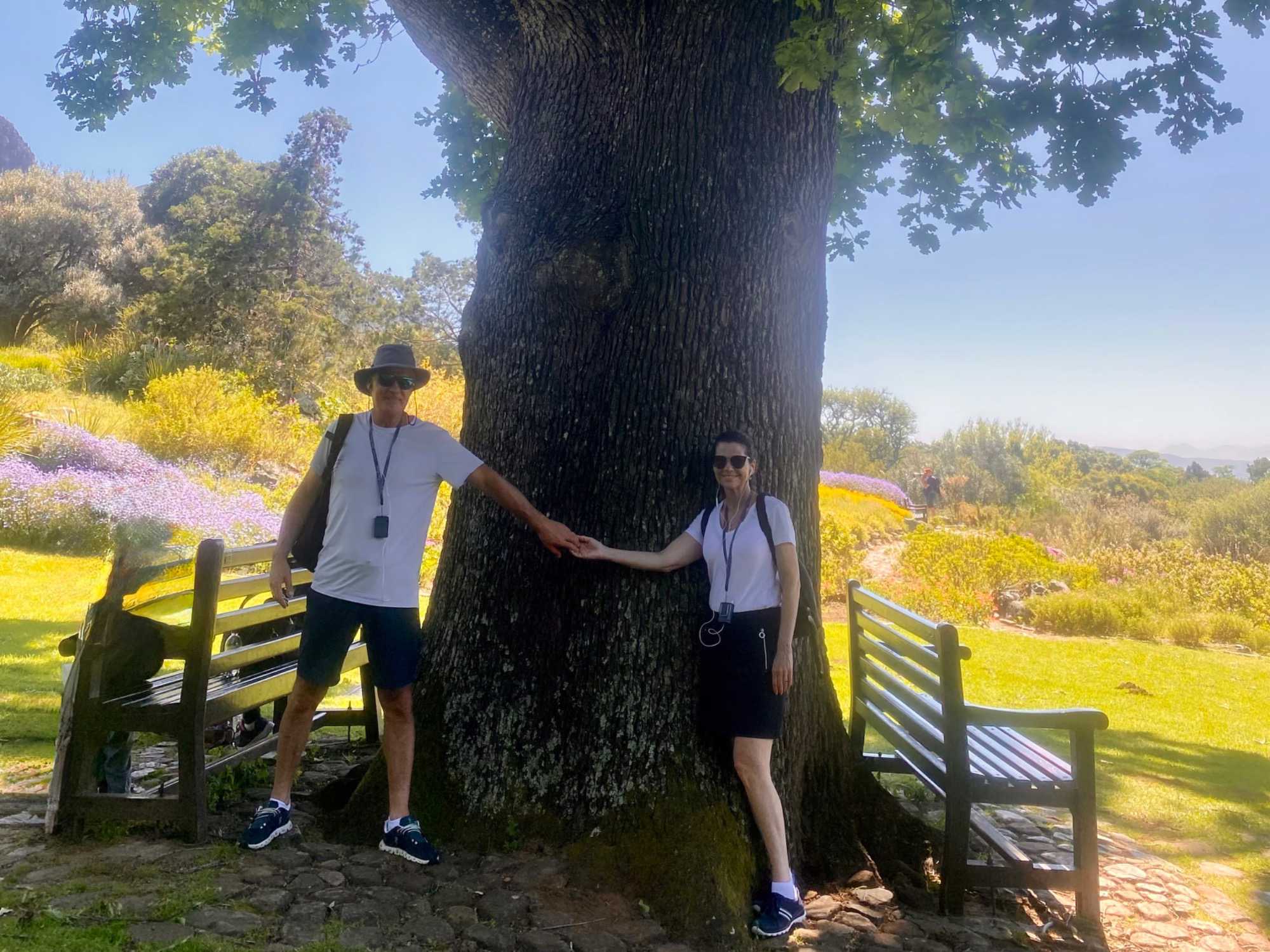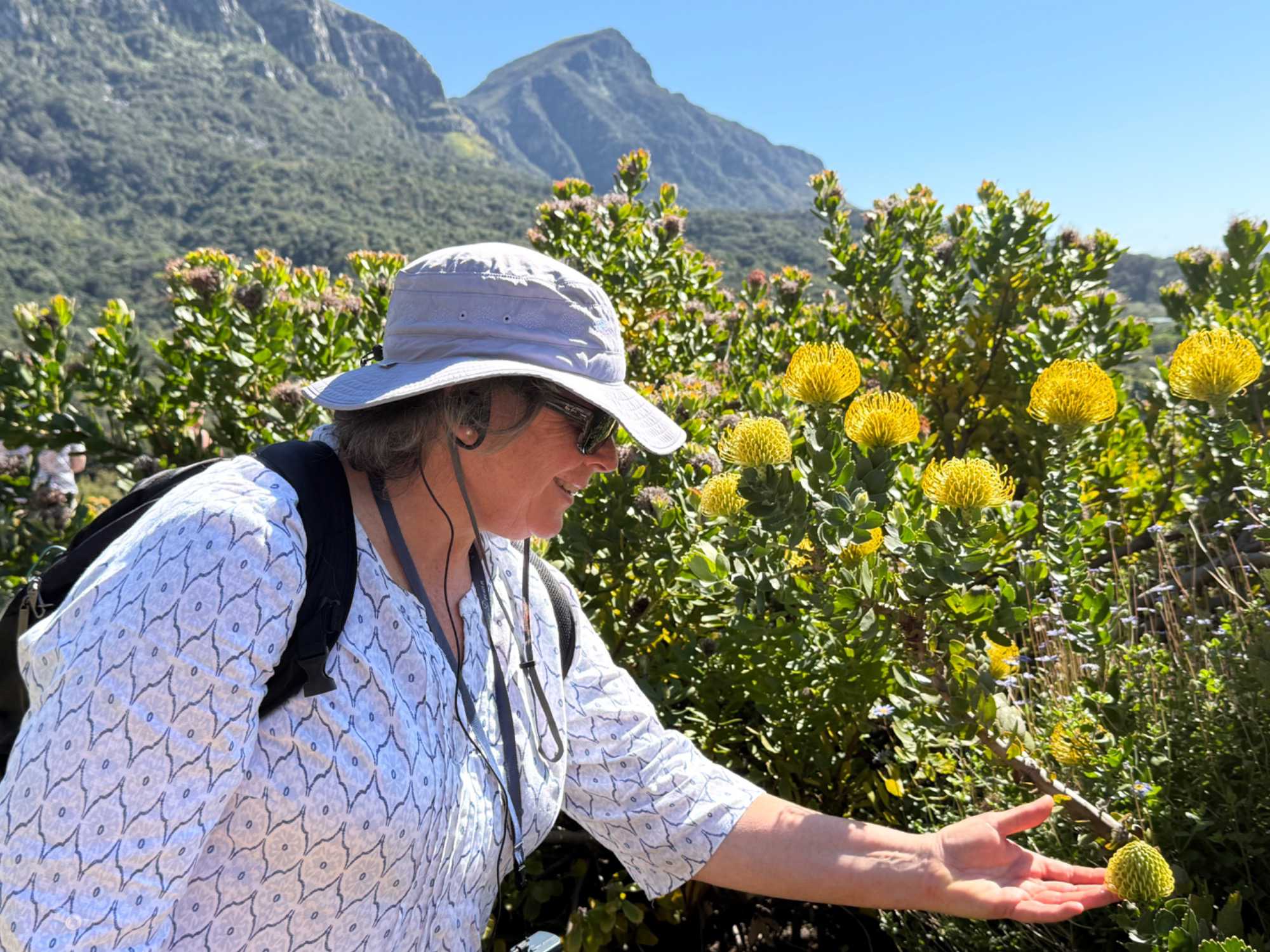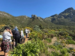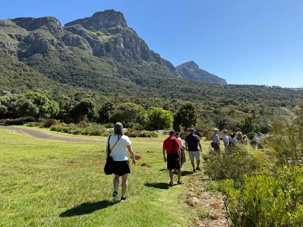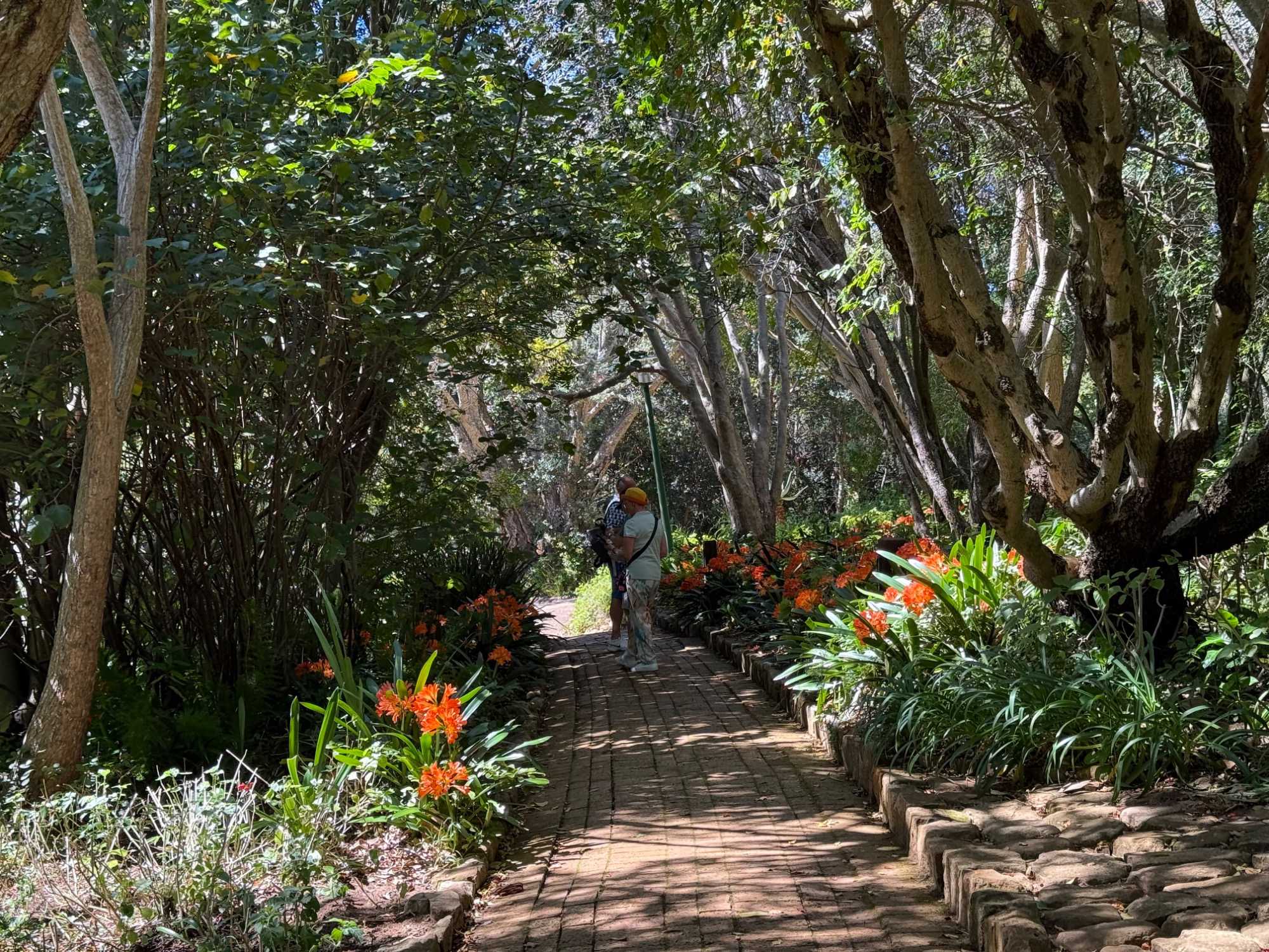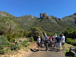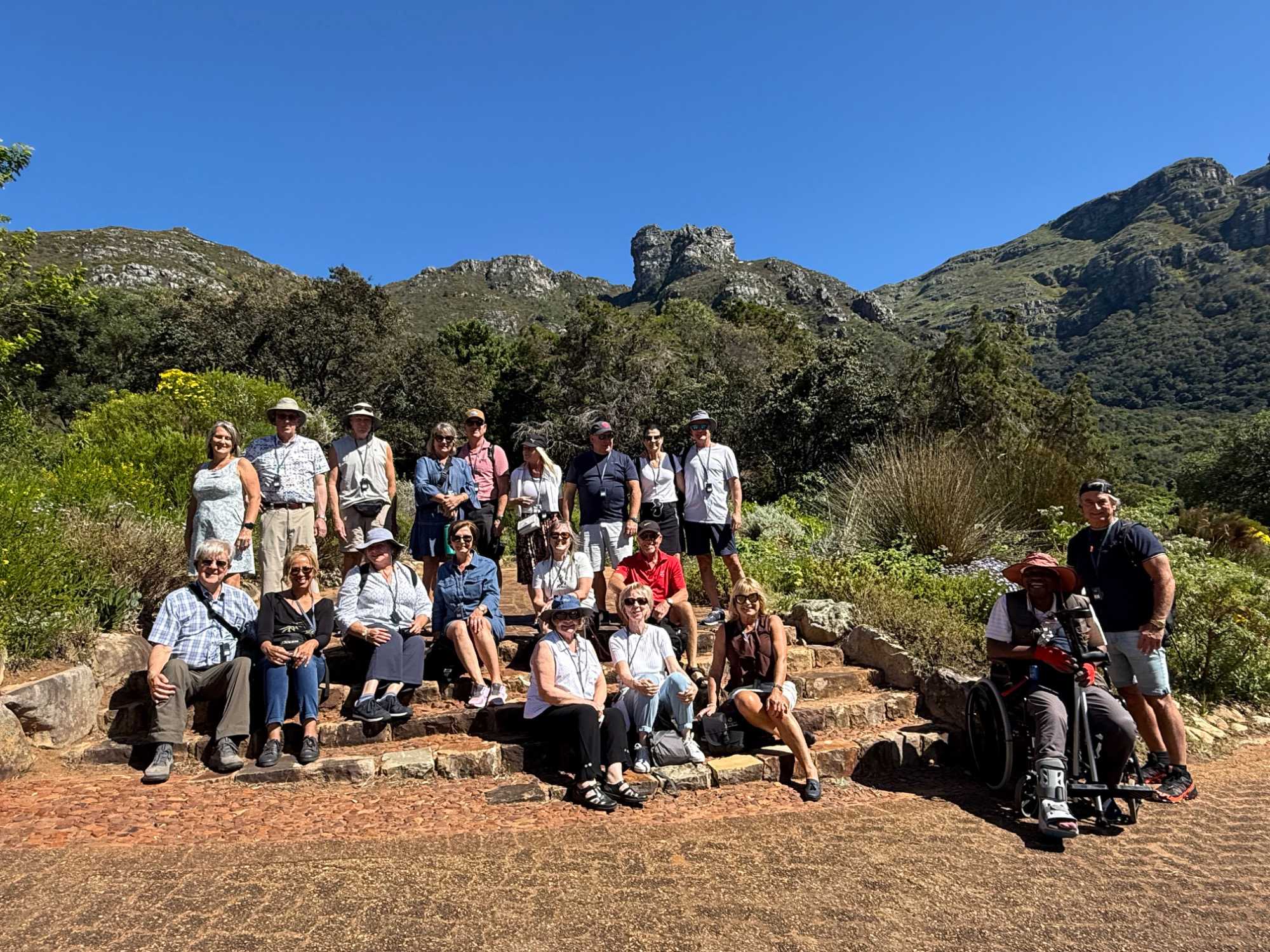 On y recense plus de 6 000 espèces de plantes, dont le fameux fynbos, cette végétation typique du sud du pays, ainsi qu’une incroyable variété de protéas, la fleur emblématique de l’Afrique du Sud. Tout au long du parcours, Léonce nous guidait avec brio, s’arrêtant pour attirer notre attention sur une plante rare, un arbre ancien ou une curiosité botanique. Il nous a parlé de la résistance de certaines espèces aux feux, du rôle des sols sablonneux du Cap et de la symbiose entre la flore et les oiseaux pollinisateurs. À chaque tournant, un nouveau tableau s’offrait à nous : massifs colorés, arbustes odorants, oiseaux multicolores et, en arrière-plan, la majestueuse montagne de la Table. Cette visite fut un véritable enchantement, empreinte de beauté, d’émotion et d’admiration pour la nature.