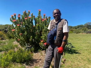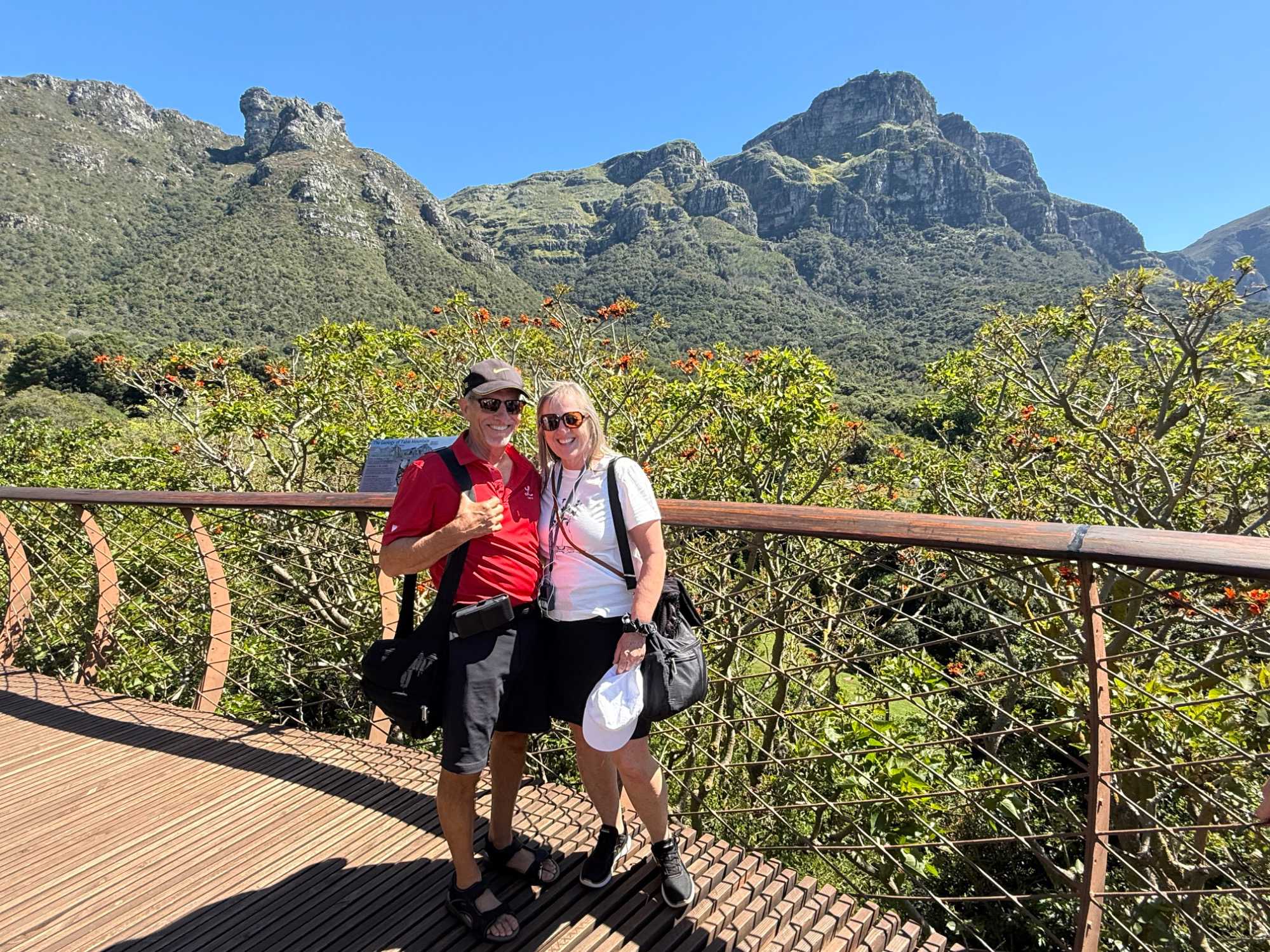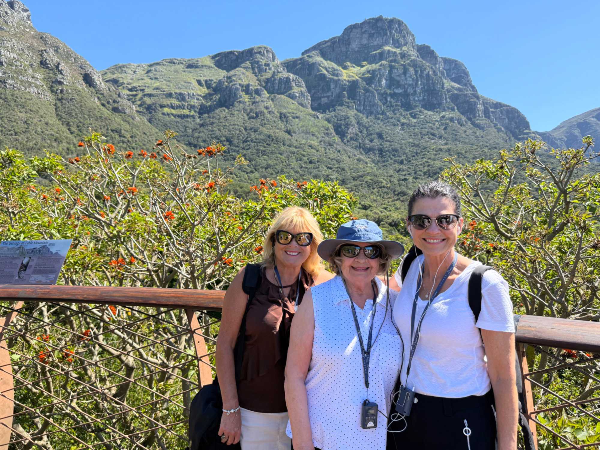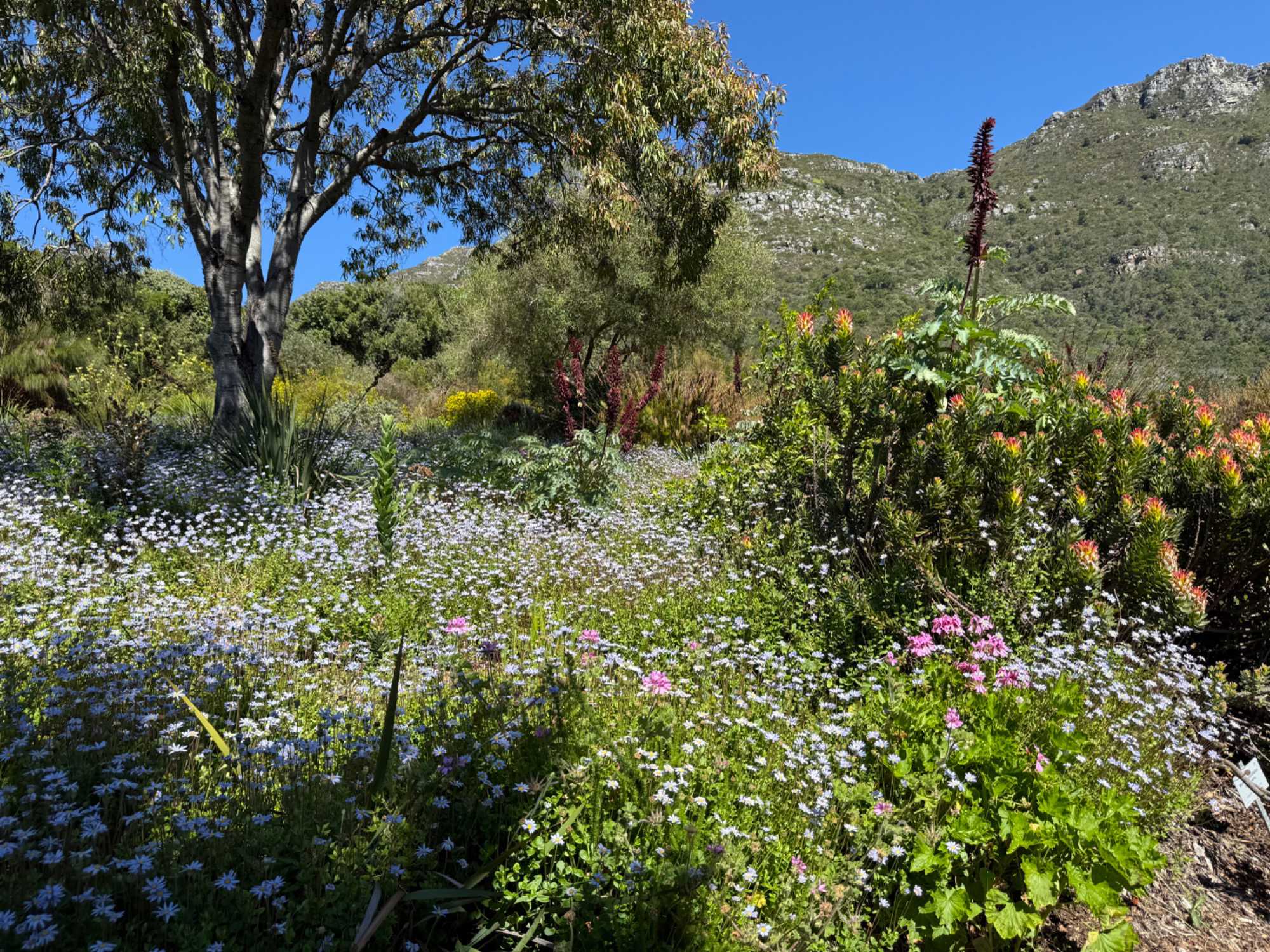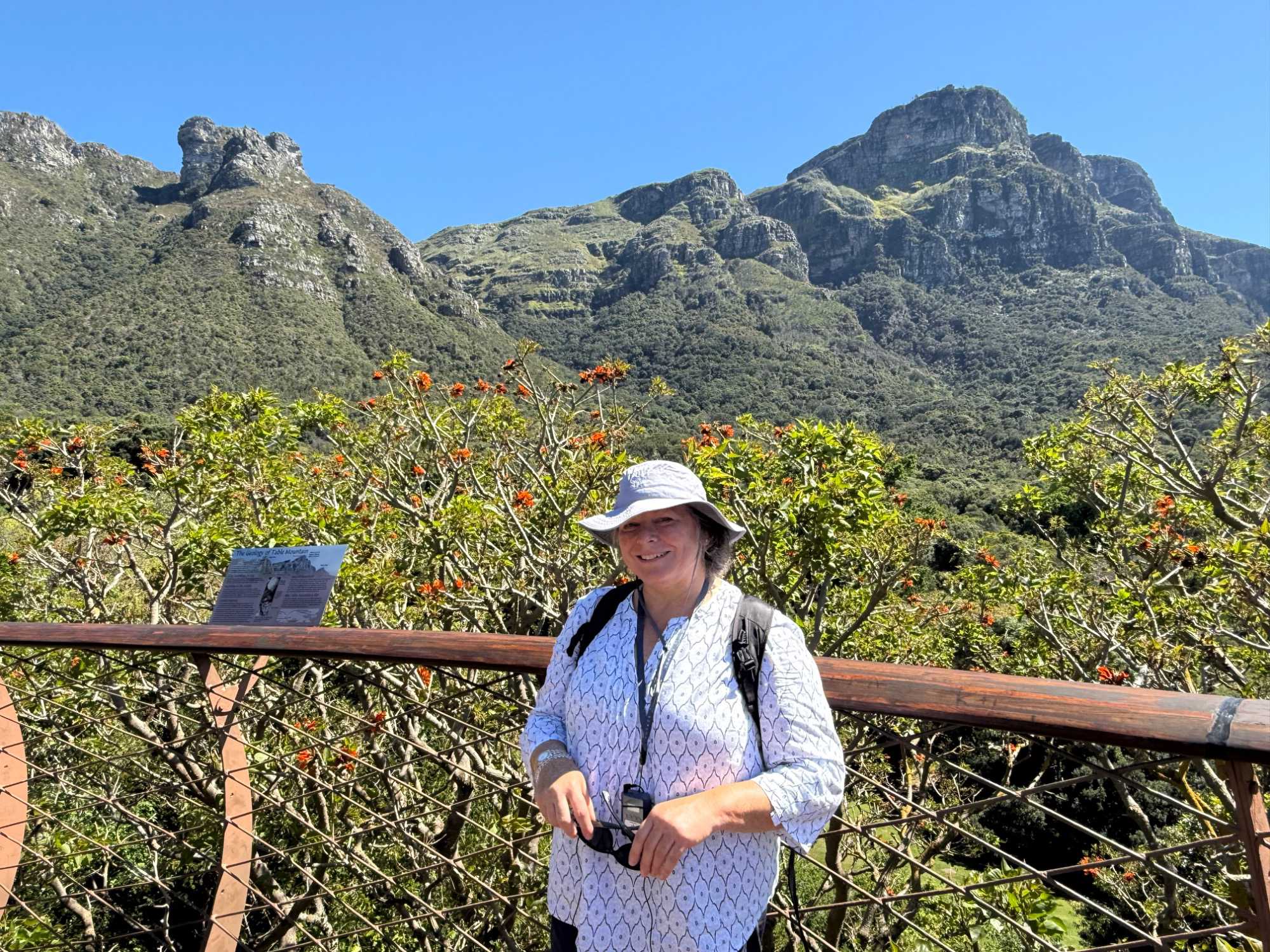 On y recense plus de 6 000 espèces de plantes, dont le fameux fynbos, cette végétation typique du sud du pays, ainsi qu’une incroyable variété de protéas, la fleur emblématique de l’Afrique du Sud. Tout au long du parcours, Léonce nous guidait avec brio, s’arrêtant pour attirer notre attention sur une plante rare, un arbre ancien ou une curiosité botanique. Il nous a parlé de la résistance de certaines espèces aux feux, du rôle des sols sablonneux du Cap et de la symbiose entre la flore et les oiseaux pollinisateurs. À chaque tournant, un nouveau tableau s’offrait à nous : massifs colorés, arbustes odorants, oiseaux multicolores et, en arrière-plan, la majestueuse montagne de la Table. Cette visite fut un véritable enchantement, empreinte de beauté, d’émotion et d’admiration pour la nature.