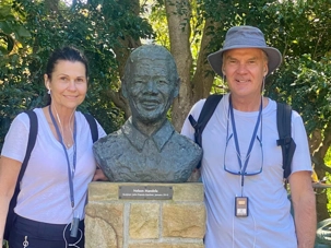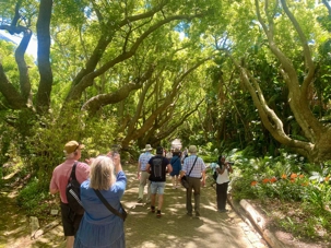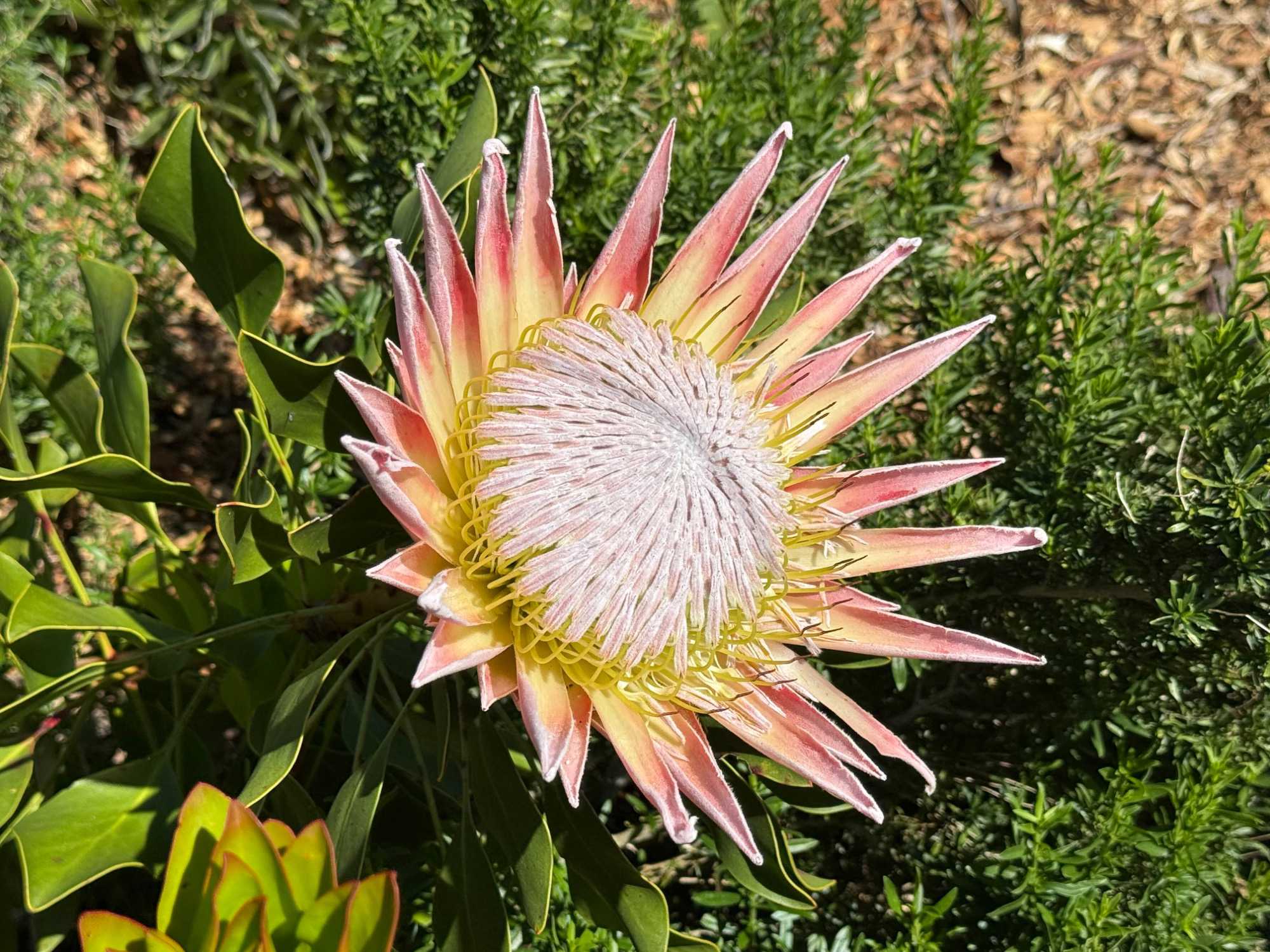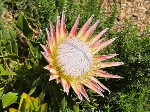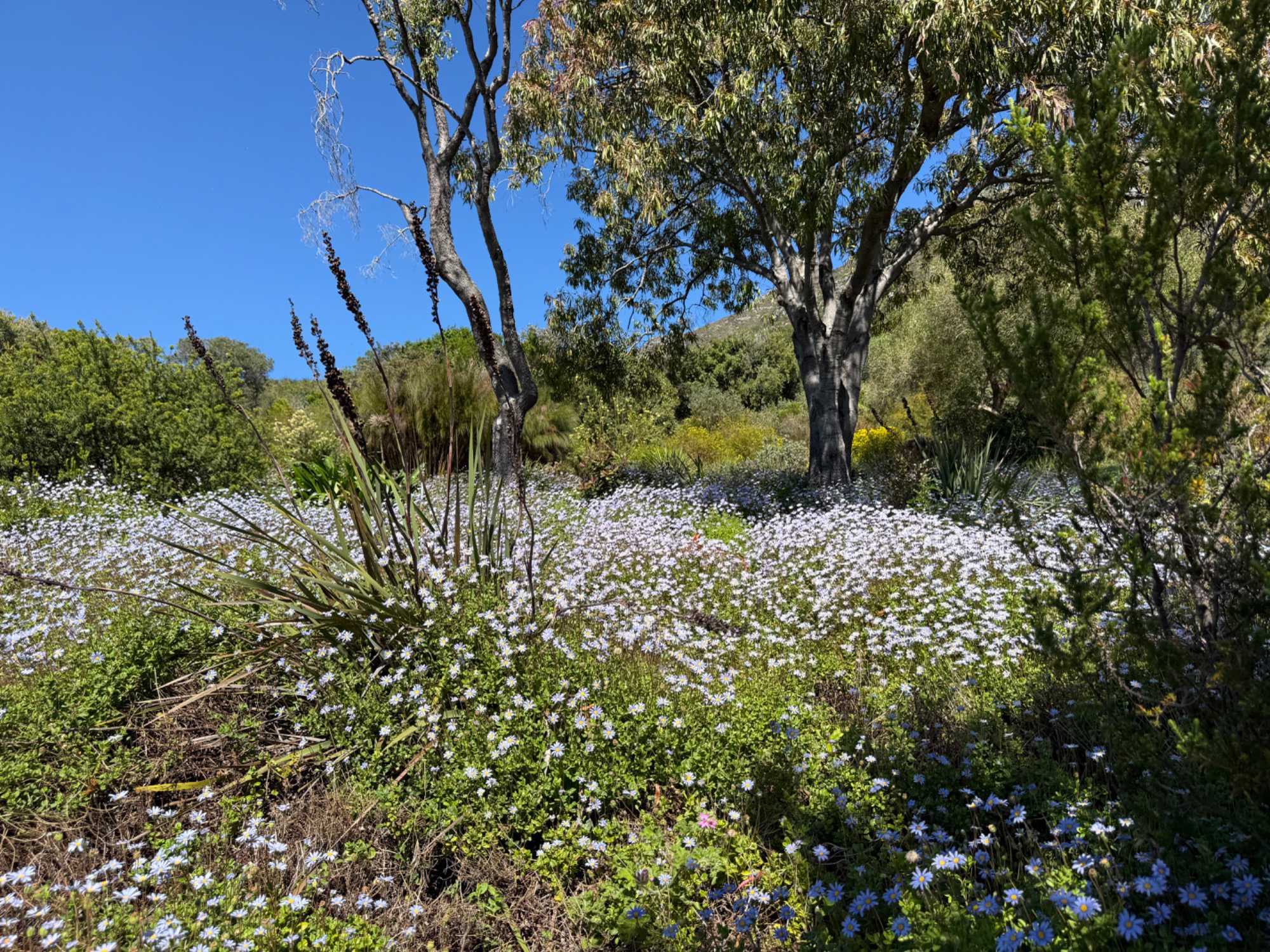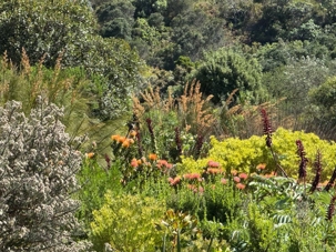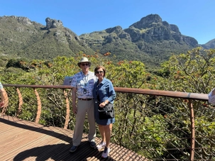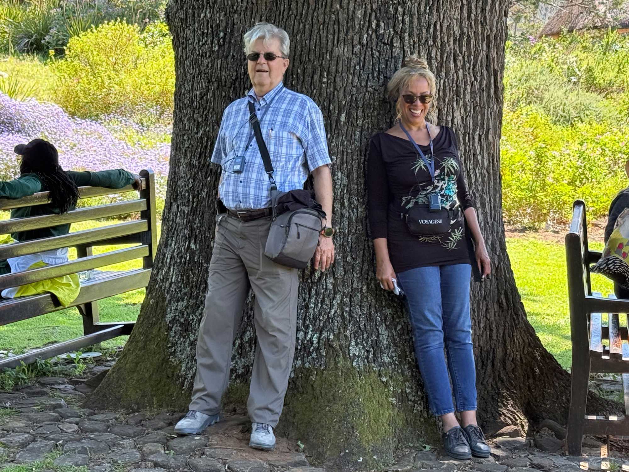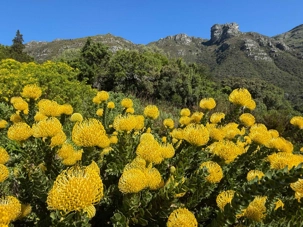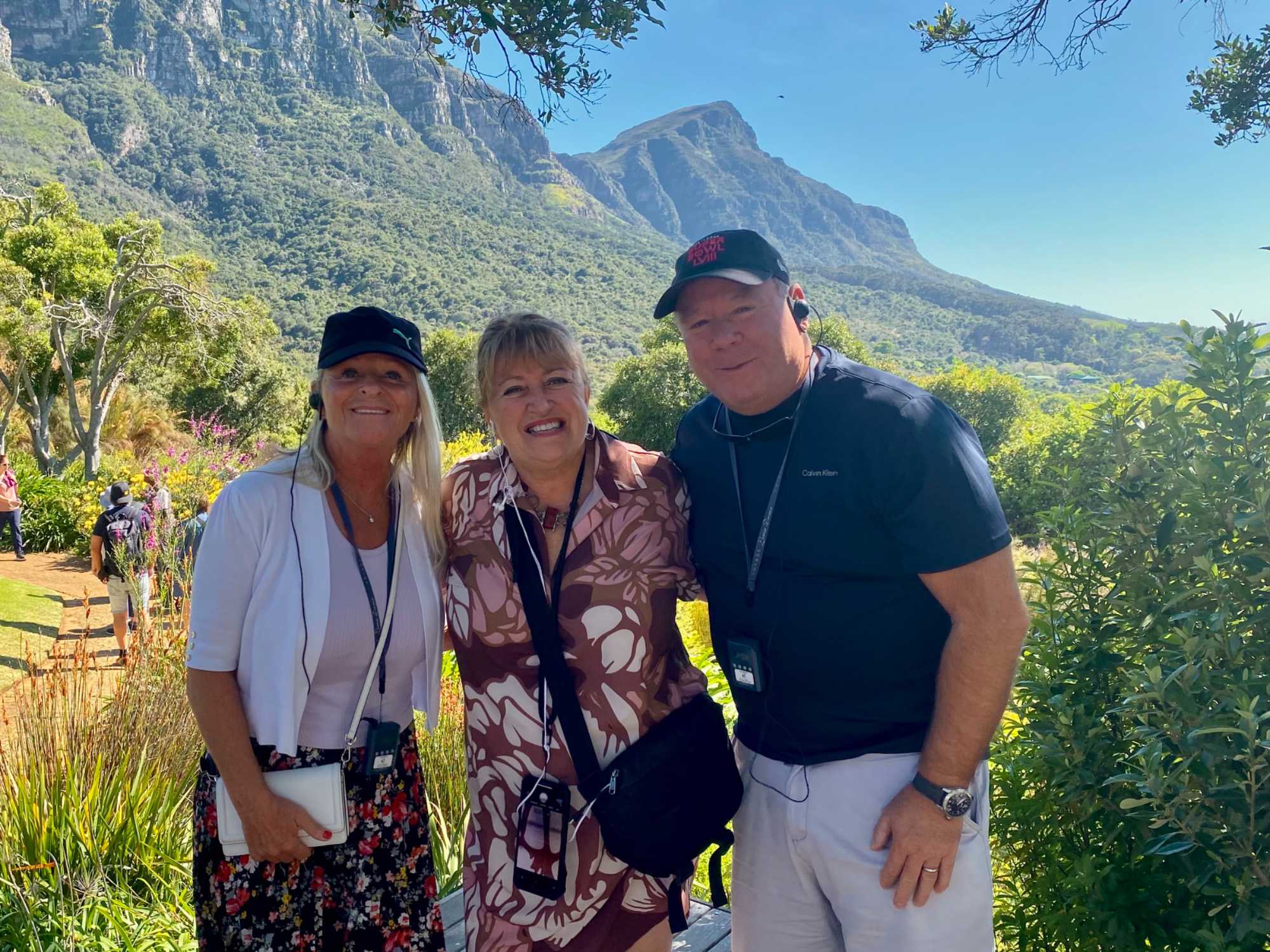 On y recense plus de 6 000 espèces de plantes, dont le fameux fynbos, cette végétation typique du sud du pays, ainsi qu’une incroyable variété de protéas, la fleur emblématique de l’Afrique du Sud. Tout au long du parcours, Léonce nous guidait avec brio, s’arrêtant pour attirer notre attention sur une plante rare, un arbre ancien ou une curiosité botanique. Il nous a parlé de la résistance de certaines espèces aux feux, du rôle des sols sablonneux du Cap et de la symbiose entre la flore et les oiseaux pollinisateurs. À chaque tournant, un nouveau tableau s’offrait à nous : massifs colorés, arbustes odorants, oiseaux multicolores et, en arrière-plan, la majestueuse montagne de la Table. Cette visite fut un véritable enchantement, empreinte de beauté, d’émotion et d’admiration pour la nature.