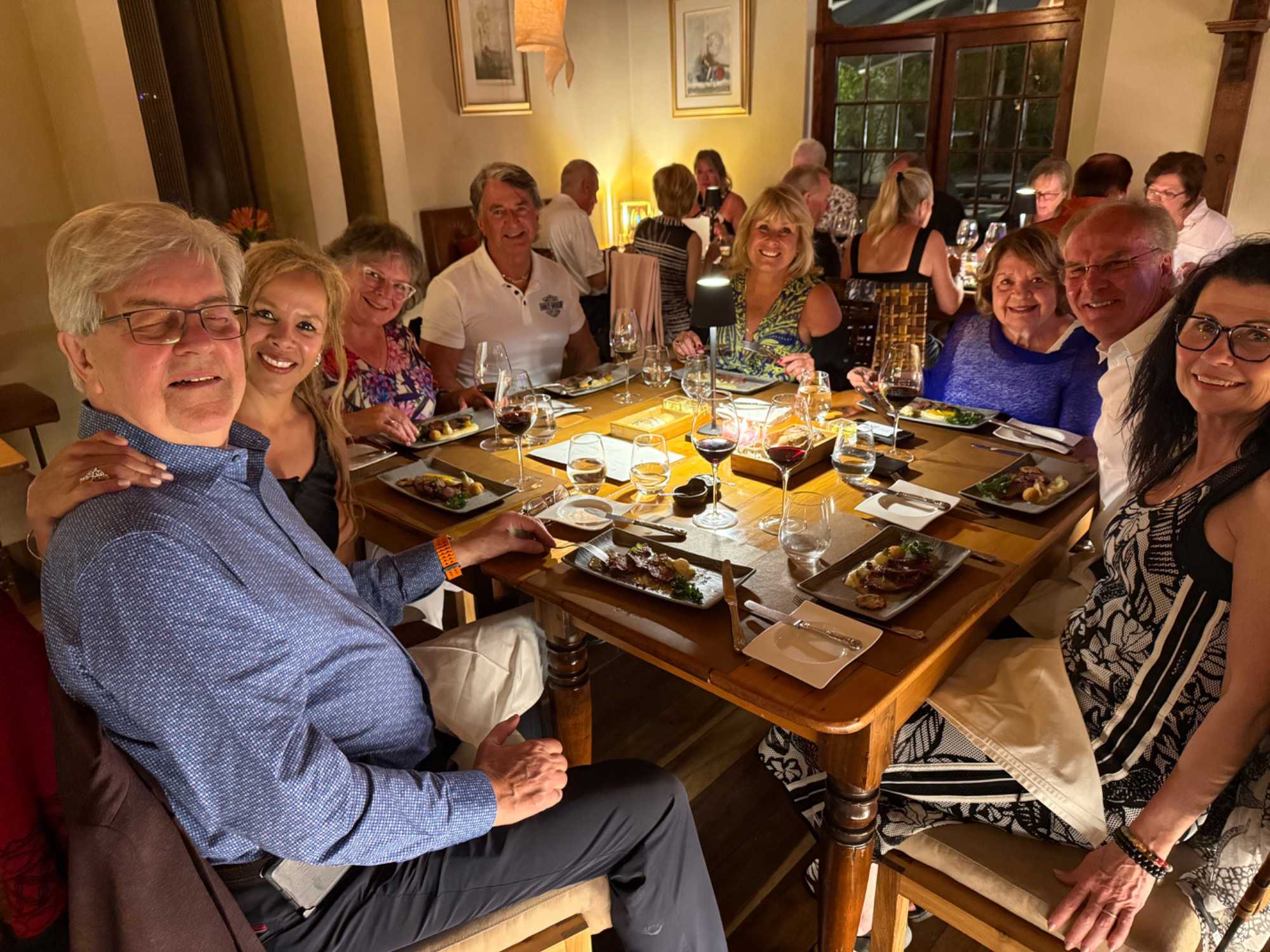 Le menu dégustation fut un pur bonheur : amuse-bouche délicat, entrées savoureuses, plats raffinés — dont plusieurs ont goûté pour la première fois la viande d’autruche, une découverte très appréciée — et un dessert exquis, le tout accompagné d’un magnifique accord mets-vins.