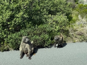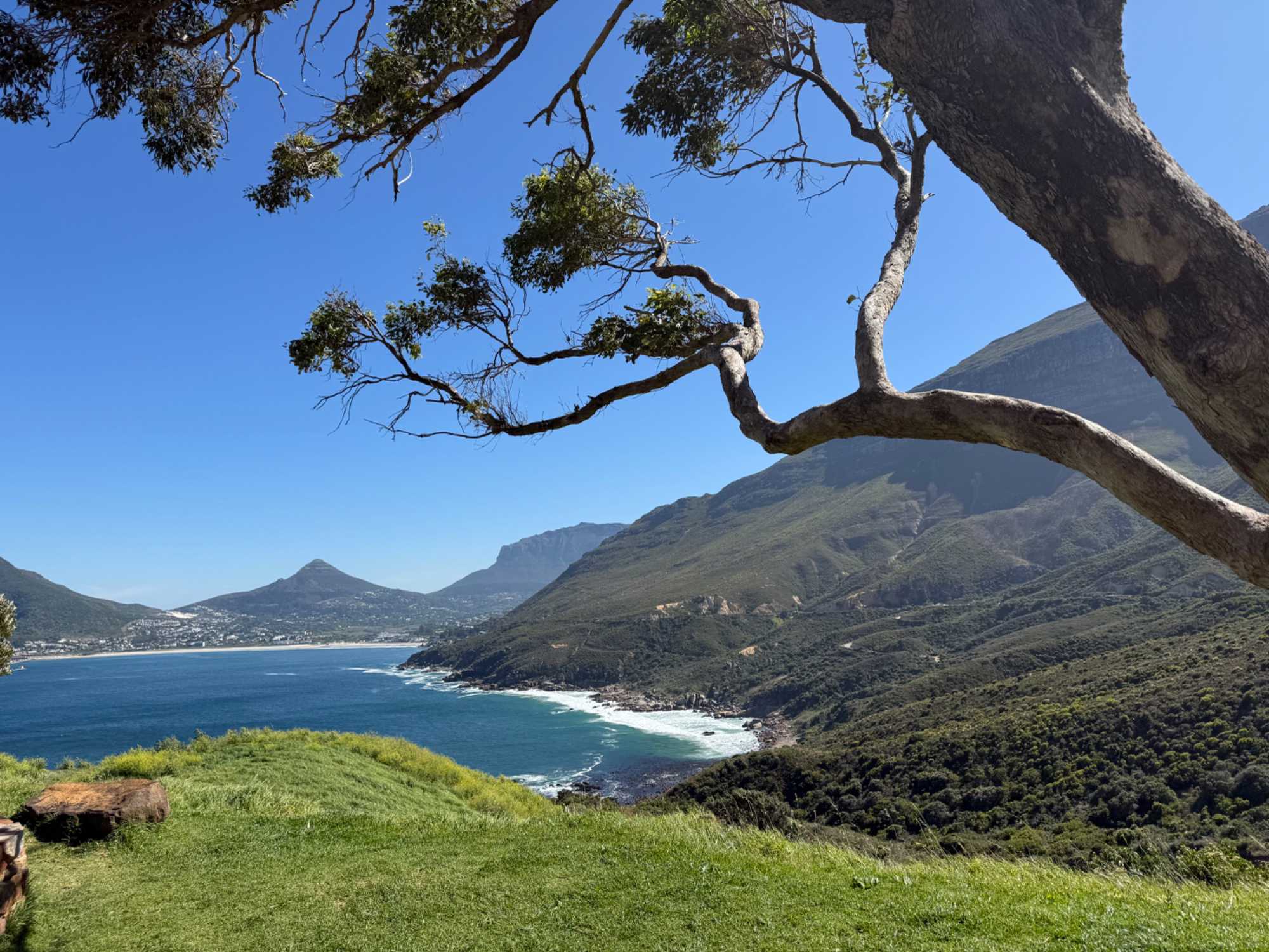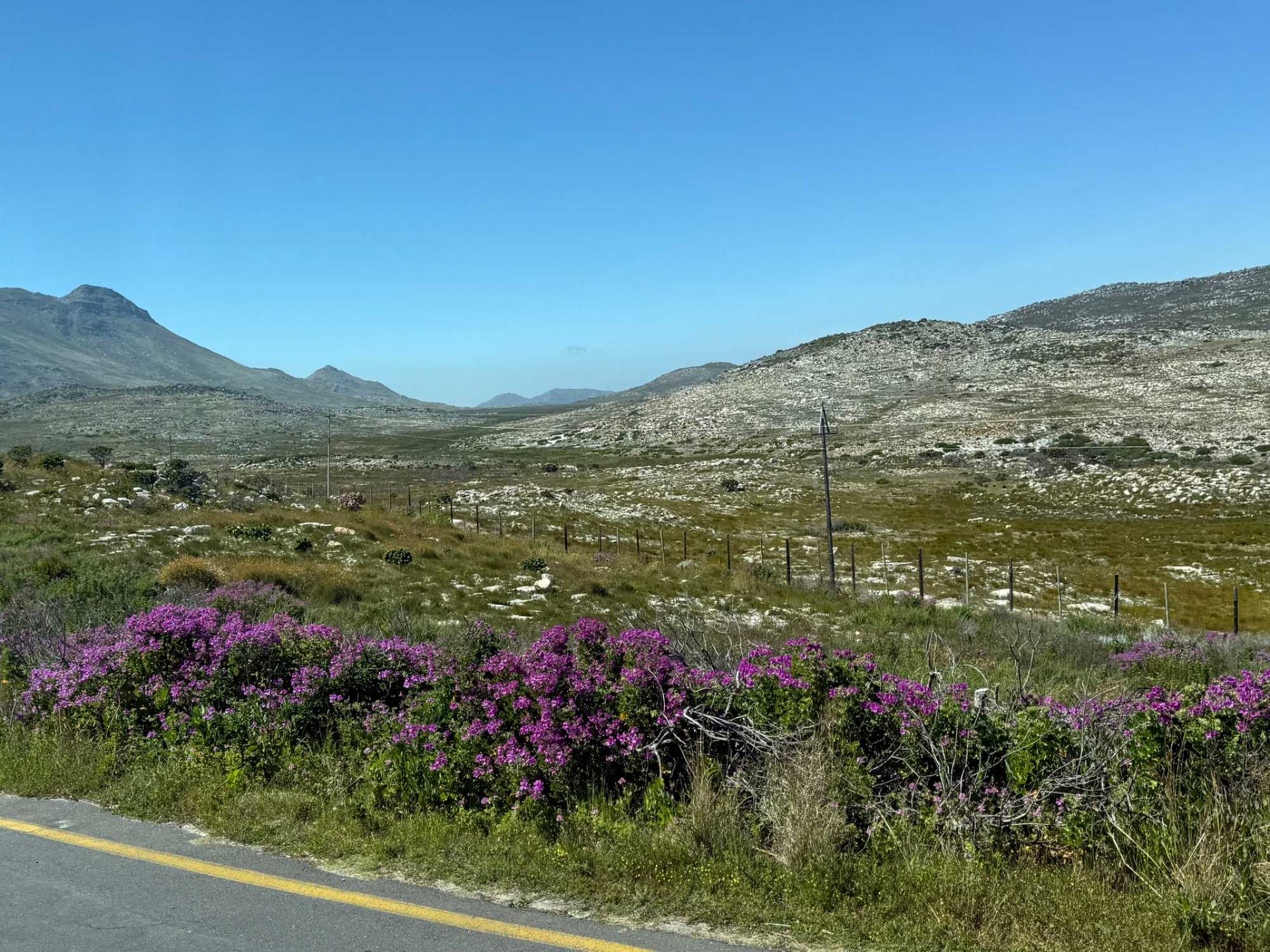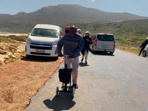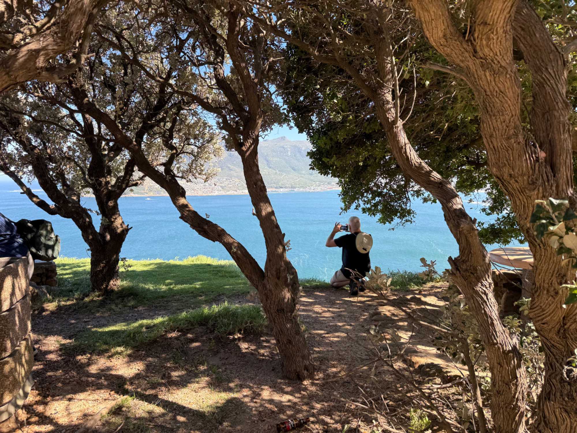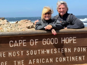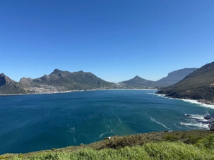 Ce matin encore, nous nous sommes levés sous un magnifique ciel bleu, baignés par un soleil éclatant qui semblait nous promettre une autre journée de rêve au bout du continent africain. Les nuits de pleine lune, claires comme des tableaux d’argent, rendent l’atmosphère presque féérique. Après un excellent petit-déjeuner, nous avons retrouvé nos amis voyageurs, tous de bonne humeur, prêts pour une journée d’expédition le long de la spectaculaire route panoramique de Chapman’s Peak, en direction du mythique Cap de Bonne-Espérance. L’ambiance du groupe était, comme toujours, joyeuse et enthousiaste. Après une superbe soirée la veille, marquée par un excellent repas et des échanges chaleureux, nous avons pris la route un peu plus tard que d’habitude, à 9 h. Deux de nos charmants voyageurs, nos « amoureux », Carolina et Raymondo, avaient simplement oublié de se lever, mais ils ont été très rapides et nous sommes partis dans la bonne humeur générale.