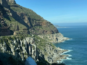 La route de Chapman’s Peak, taillée à flanc de montagne entre 1915 et 1922, relie Hout Bay à Noordhoek sur 9 kilomètres. Ses 114 virages offrent des panoramas absolument grandioses : d’un côté les falaises abruptes de grès, de l’autre, l’océan Atlantique qui s’étire à perte de vue. À chaque courbe, le spectacle est à couper le souffle.