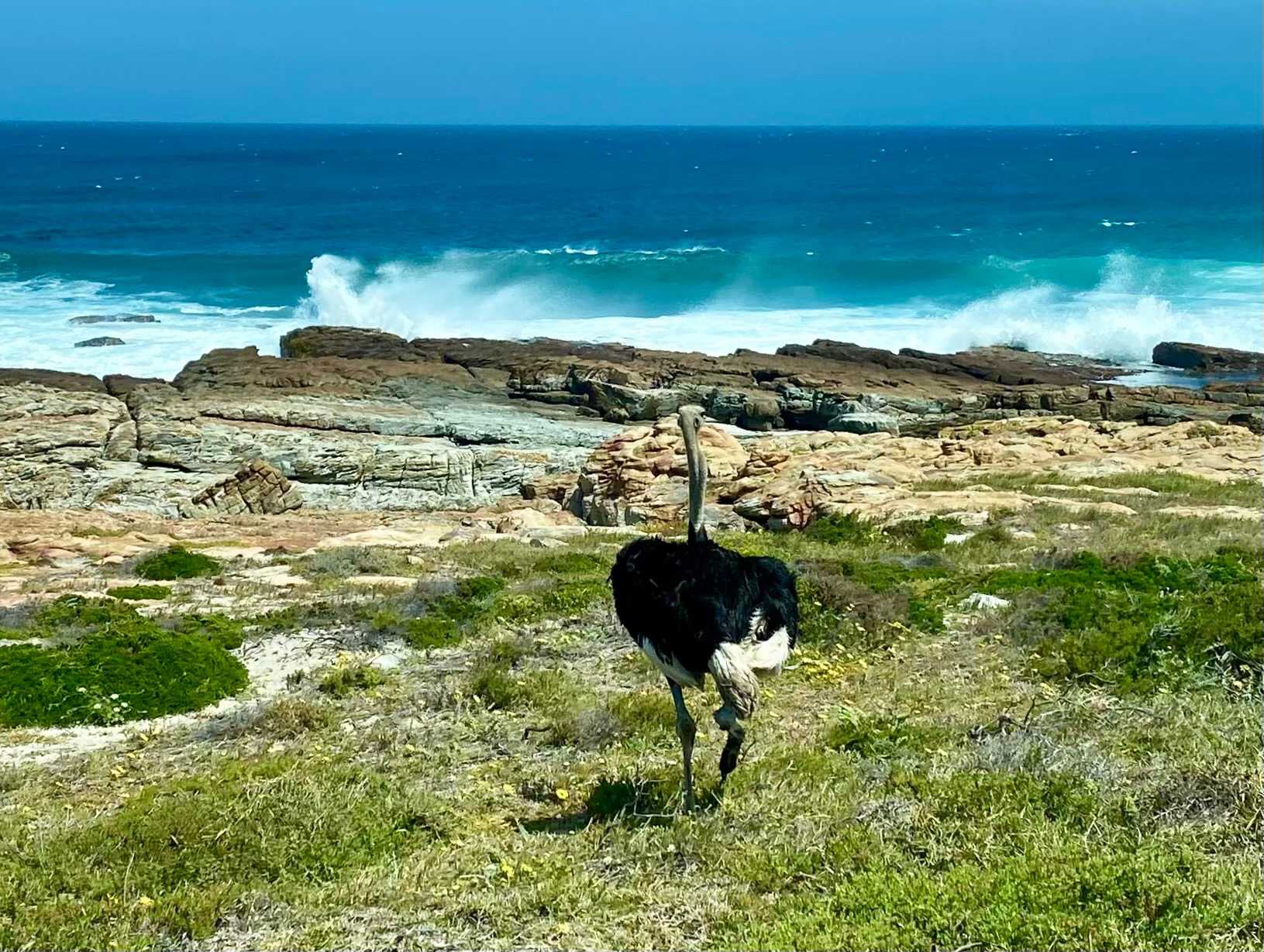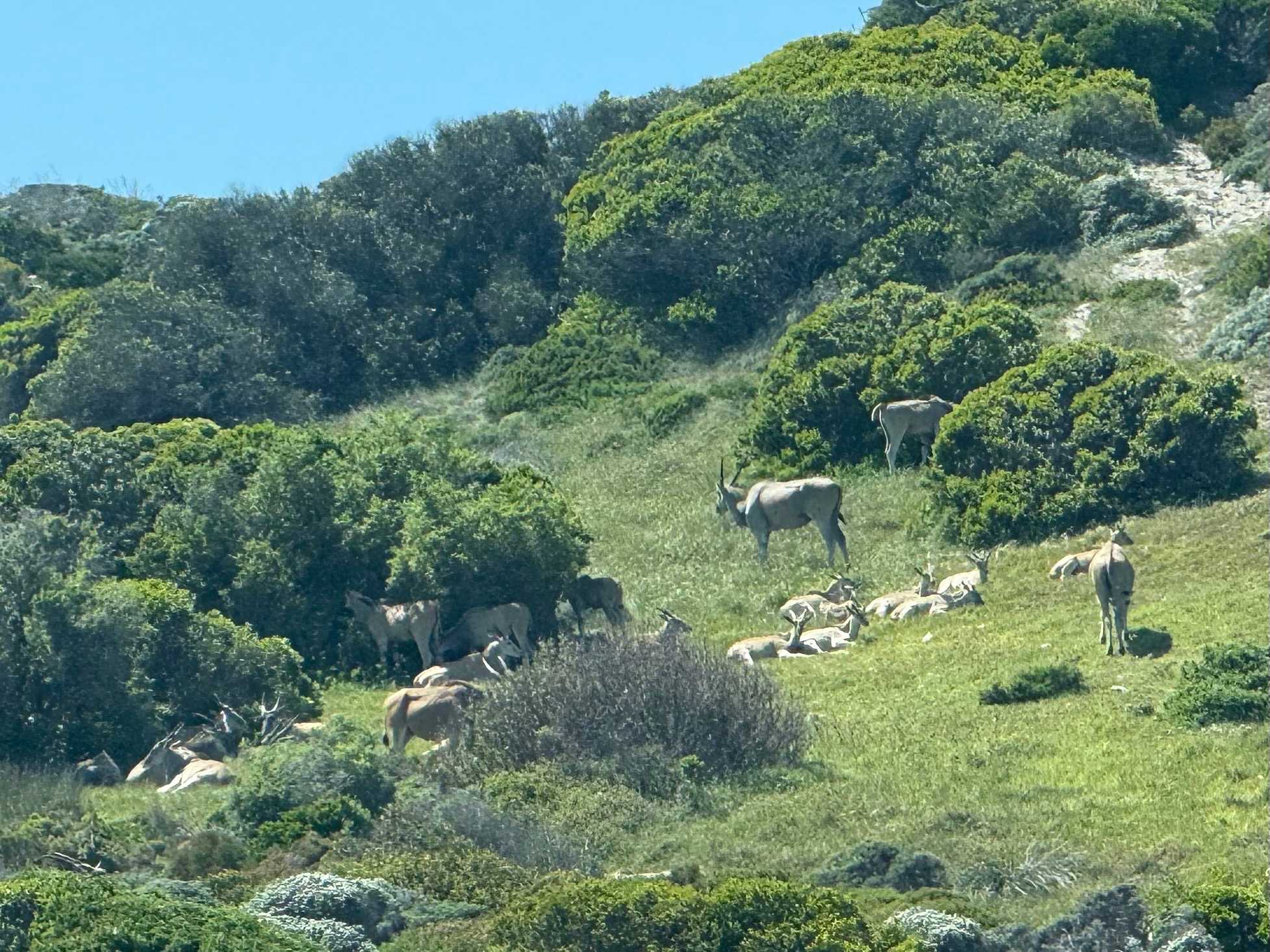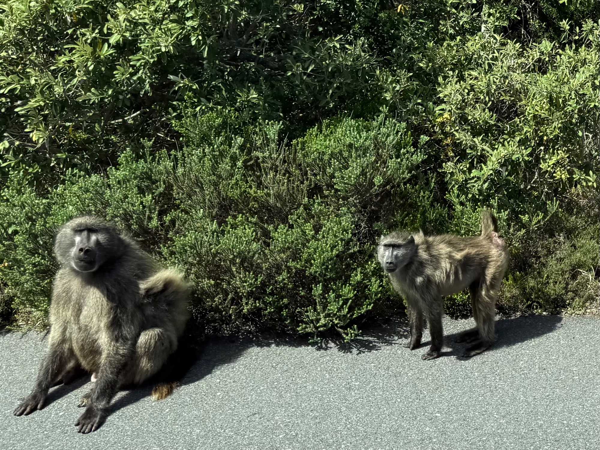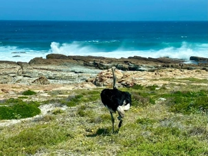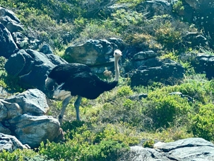 Nous avons ensuite rejoint la réserve naturelle du Cap de Bonne-Espérance, un site emblématique couvrant près de 7 700 km² et abritant une faune et une flore d’une richesse exceptionnelle. On y trouve plus de 250 espèces d’oiseaux, ainsi que des antilopes, zèbres, autruches, babouins, et plus de 1 100 variétés de plantes indigènes, formant la végétation unique du fynbos, typique du Cap. Comme le funiculaire “Flying Dutchman”, qui mène au phare de Cape Point, ne fonctionnait pas aujourd’hui, certains de nos voyageurs les plus en forme ont décidé de gravir le sentier à pied pour atteindre les points de vue spectaculaires sur la péninsule. Les autres, plus tranquilles, ont profité de la vue depuis la base, admirant les deux océans — l’Indien et l’Atlantique — qui se rencontrent ici dans une danse majestueuse.