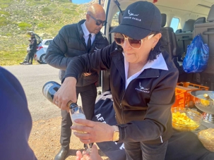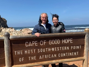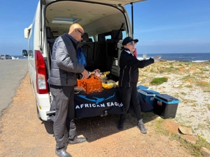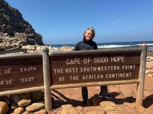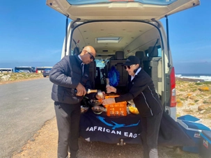 Une belle surprise nous attendait à notre arrivée : notre fournisseur local avait organisé une petite réception des plus conviviales, avec du champagne sud-africain, du bœuf séché, des chips et des noix. Ce moment de partage, face à l’océan, fut empreint d’émotion et de fierté. Comme autrefois les marins qui “doublaient le Cap”, nous avons célébré à notre tour ce symbole d’aventure et de découverte. Le diplôme attestant de notre passage au Cap de Bonne-Espérance nous sera remis sous peu — une jolie façon de conserver un souvenir tangible de cette étape mythique. Et bien sûr, les photos de groupe ont immortalisé cette journée lumineuse, au point le plus au sud-ouest de l’Afrique.