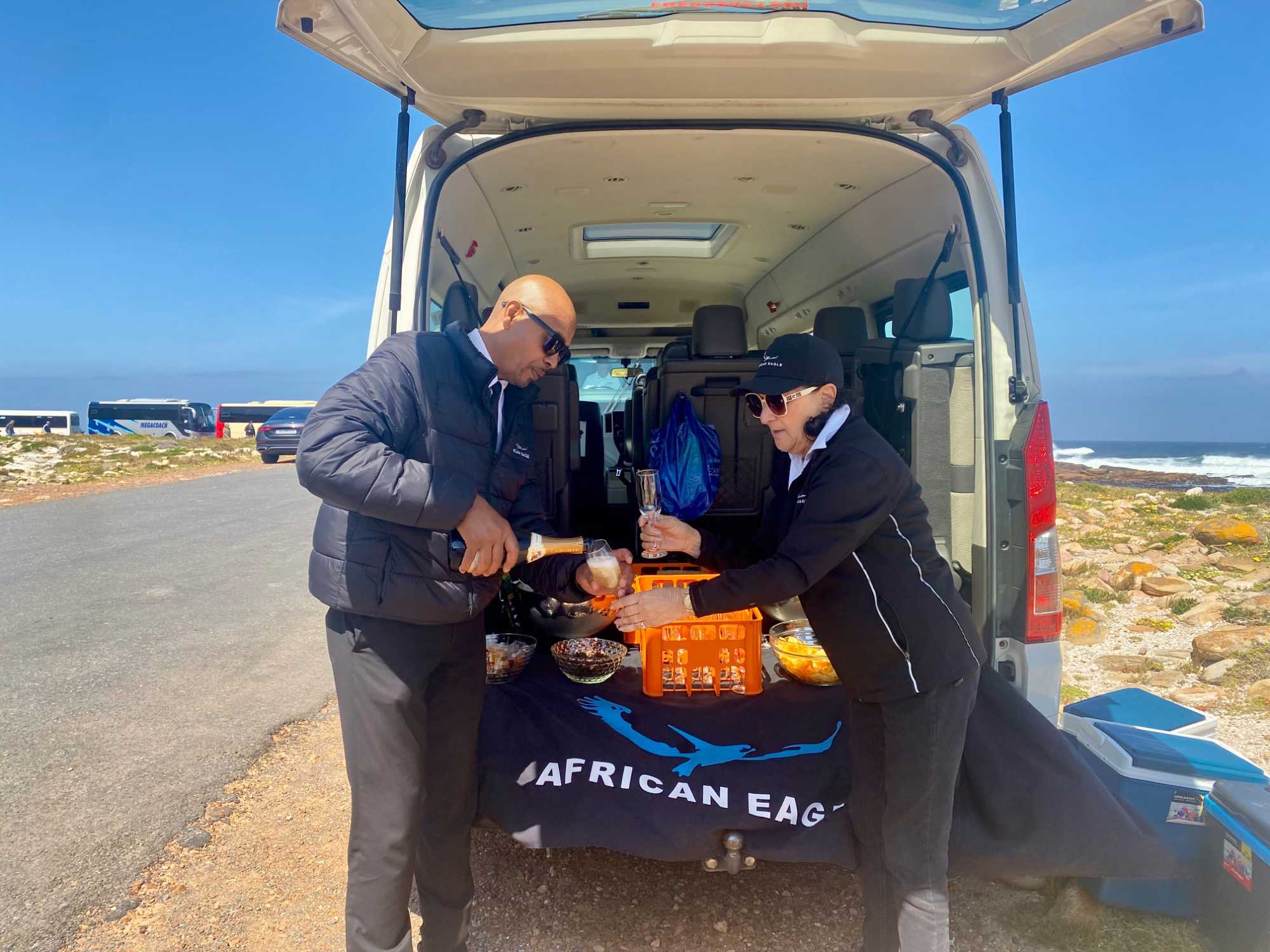 Notre guide Léonce, toujours aussi passionné et captivant, nous a partagé tout au long du trajet de nombreuses informations historiques et culturelles sur cette région fascinante : les explorations portugaises, les premiers navigateurs ayant contourné l’Afrique, et la symbolique du Cap de Bonne-Espérance dans l’histoire maritime mondiale.