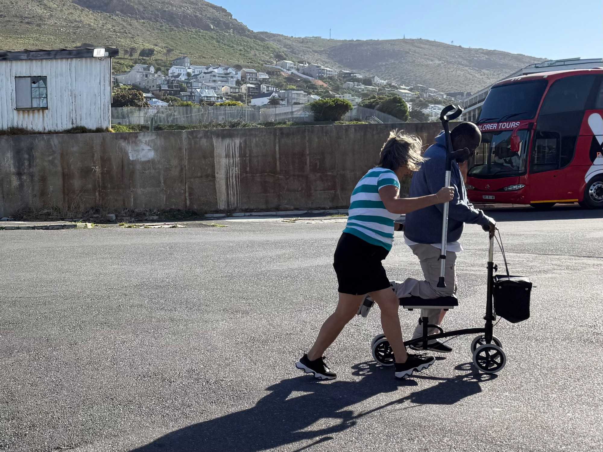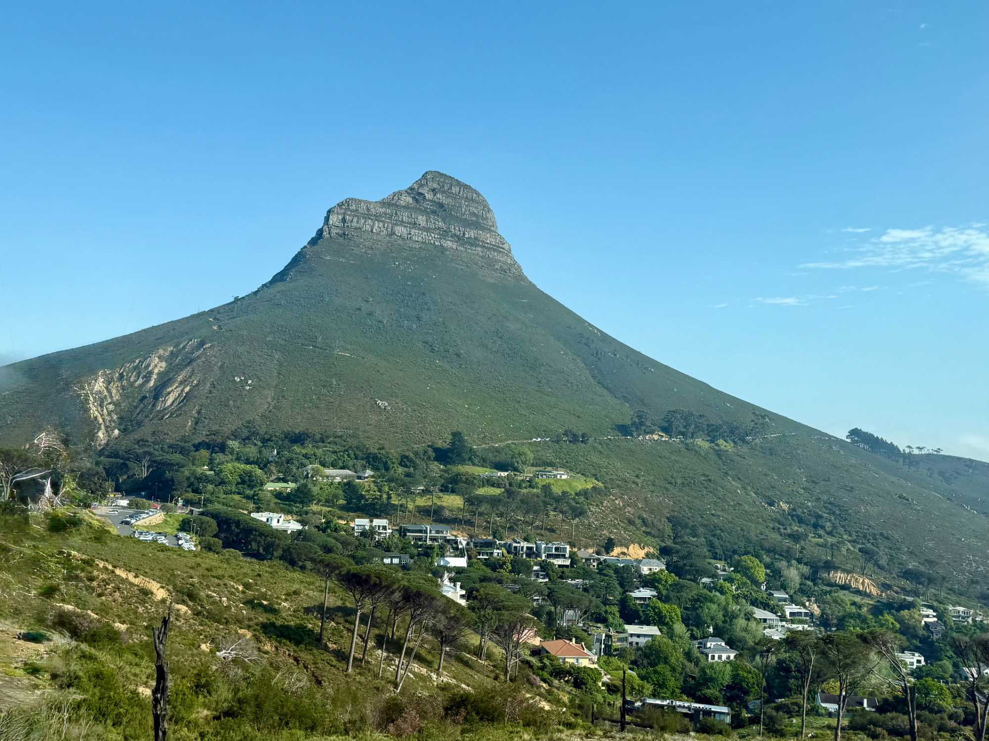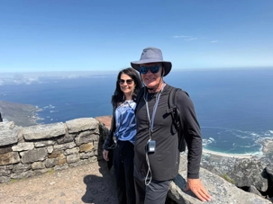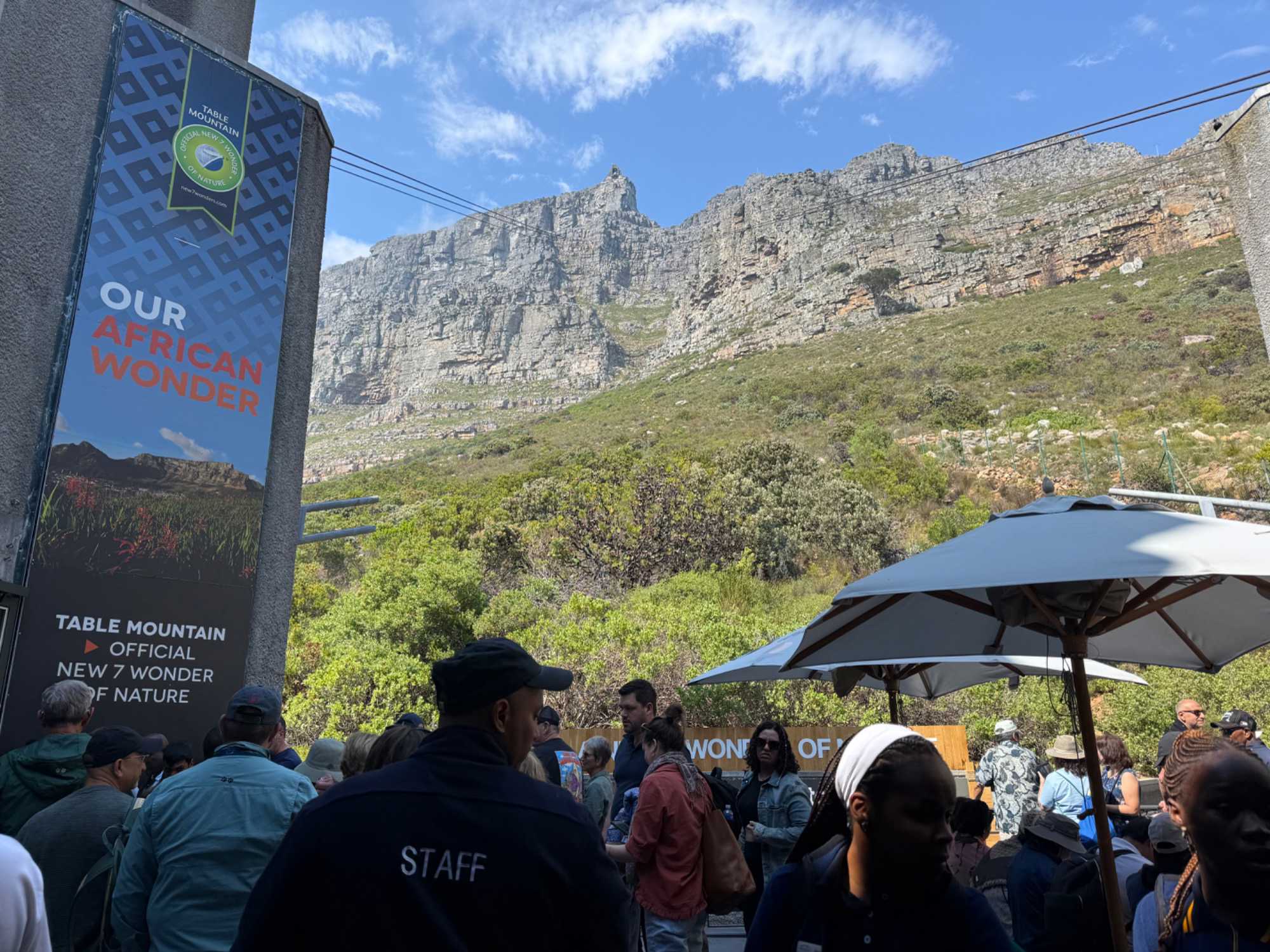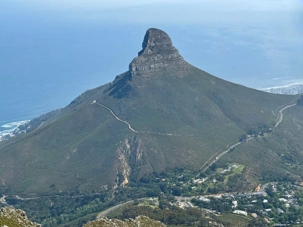 Ce matin, nous nous sommes réveillés une fois de plus sous un magnifique ciel bleu. L’air était frais, limpide, et la lumière matinale du Cap semblait déjà annoncer une journée exceptionnelle. Après notre petit-déjeuner, direction Table Mountain, l’un des symboles les plus puissants de l’Afrique du Sud, inscrite depuis 2011 parmi les sept nouvelles merveilles naturelles du monde.