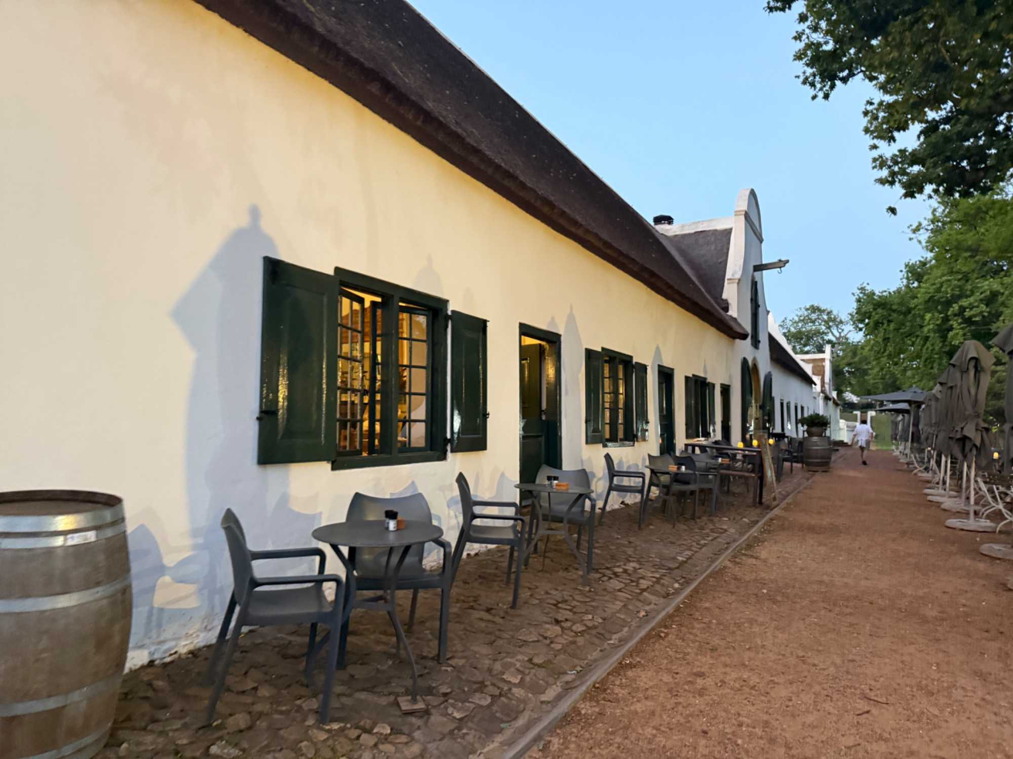 Au tout début de mes photos vous verrez des photos de notre belle soirée hier au vignoble de Constance. Mais avant de quitter la région demain matin, une dernière soirée mémorable nous attendait la veille, dans un lieu chargé d’histoire : le vignoble de Constantia, berceau du vin sud-africain.