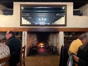 Nous avons eu le privilège de déguster un repas gastronomique servi dans l’un des plus anciens bâtiments du domaine, merveilleusement restauré. La pierre d’origine, les poutres apparentes et les lustres suspendus donnaient à la salle une atmosphère à la fois authentique et raffinée.