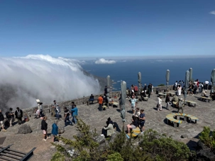 Au sommet, nous avons passé près d’une heure complète à nous promener parmi les sentiers et les formations rocheuses, admirant les nuages glisser sur les crêtes et la ville scintiller sous nos pieds. L’impression de flotter entre ciel et mer était tout simplement magique. Par moments, un voile de brume nous enveloppait, puis la lumière du soleil revenait d’un coup, dévoilant un panorama à couper le souffle.