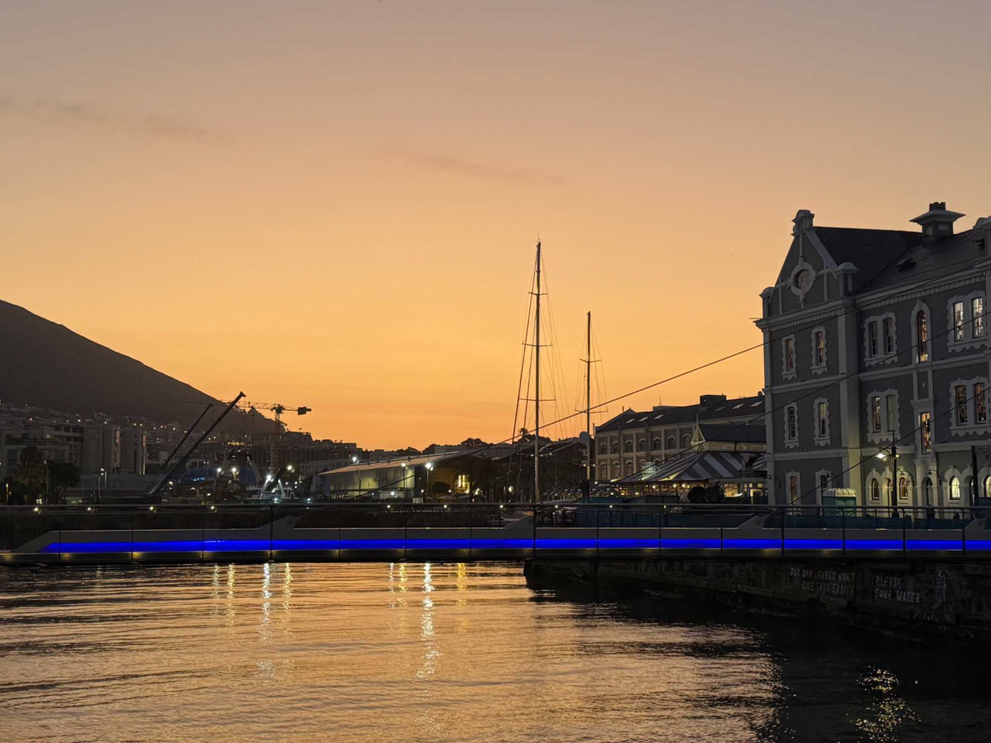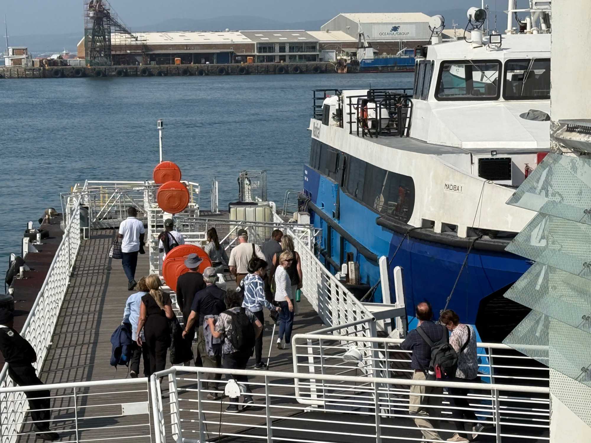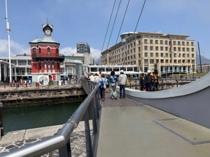 Après le déjeuner, nous avons marché tranquillement jusqu’au port, traversant le quartier des Silos, un secteur moderne et artistique où l’architecture contemporaine s’allie aux anciens bâtiments industriels du port. Tout près de la Clock Tower, nous avons embarqué pour la traversée vers la mythique île de Robben Island, dont la visite était prévue à 15 h.