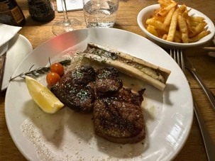 Ce dernier repas au Cap fut tout simplement exceptionnel. Sur les conseils de Léonce, plusieurs ont choisi les côtelettes d’agneau, une spécialité locale issue d’élevages situés le long des prairies côtières de la région du Karoo, où les agneaux se nourrissent d’herbes aromatiques et salées. Cette alimentation naturelle, imprégnée d’air marin, donne à la viande une saveur fine, tendre et légèrement iodée, unique au monde.