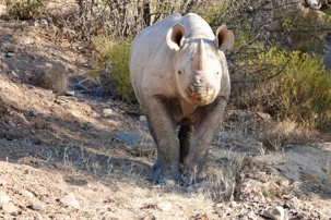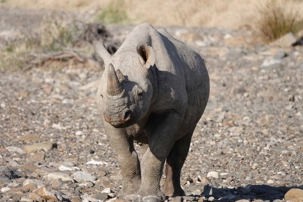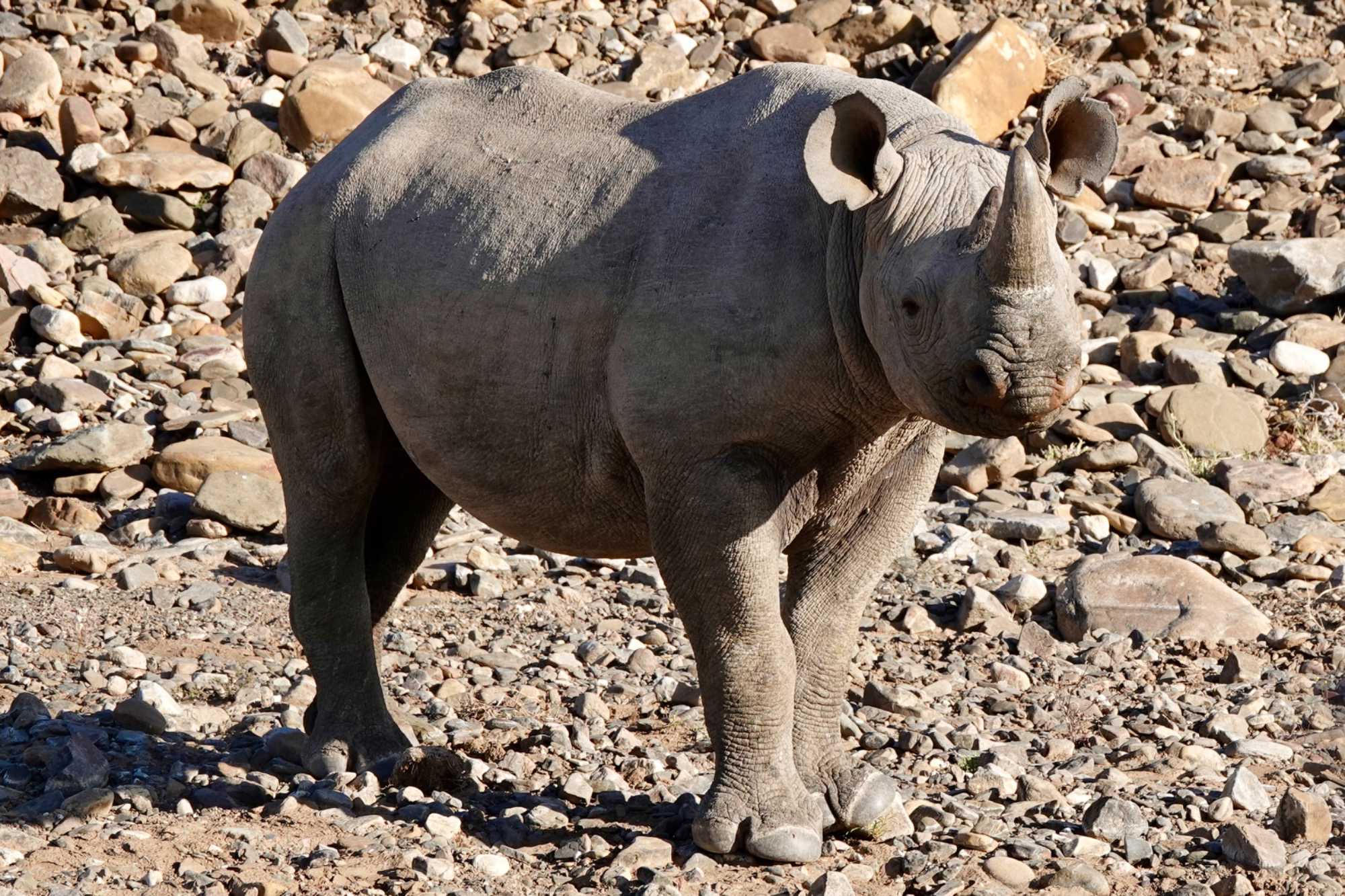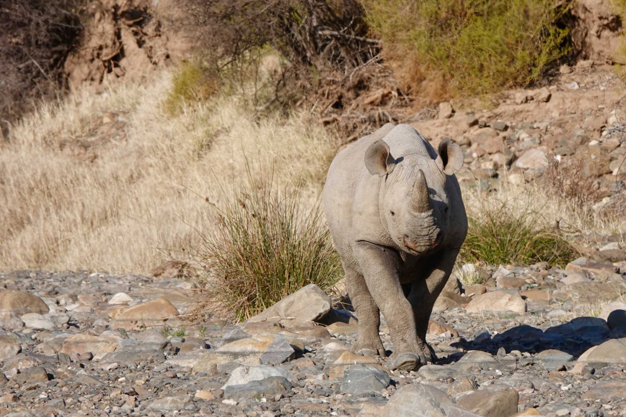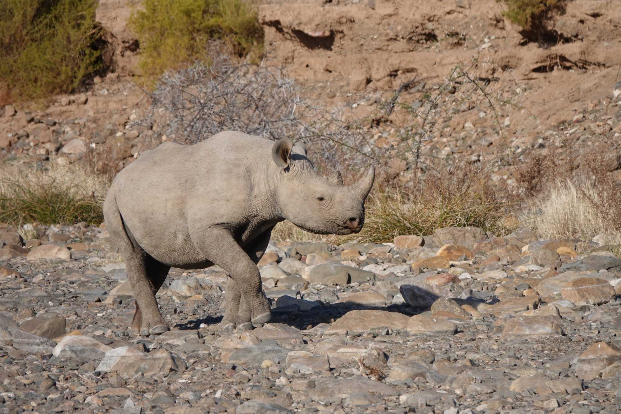 - Un jeune rhinocéros noir s’approche timidement, curieux, s’éloigne puis revient. Sa malice et sa curiosité nous font sourire.
