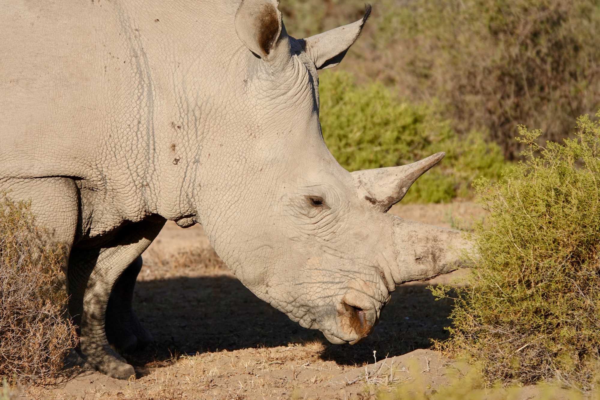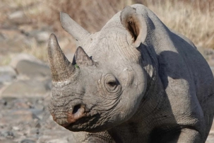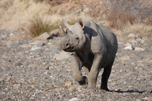 Le rhinocéros noir est plus petit, plus nerveux et vit généralement seul. Il se nourrit de feuilles et de branches qu’il attrape avec sa lèvre pointue et préhensile. Espèce menacée, il est farouche et prudent.