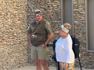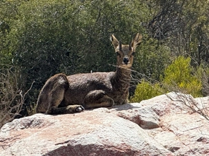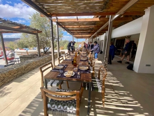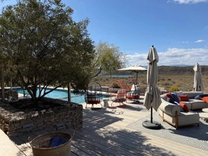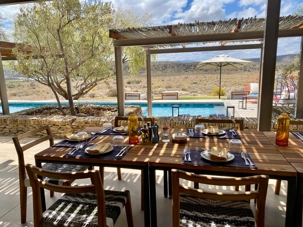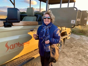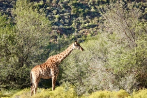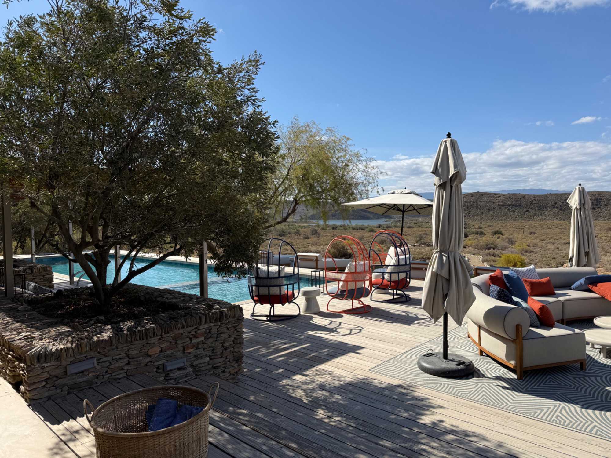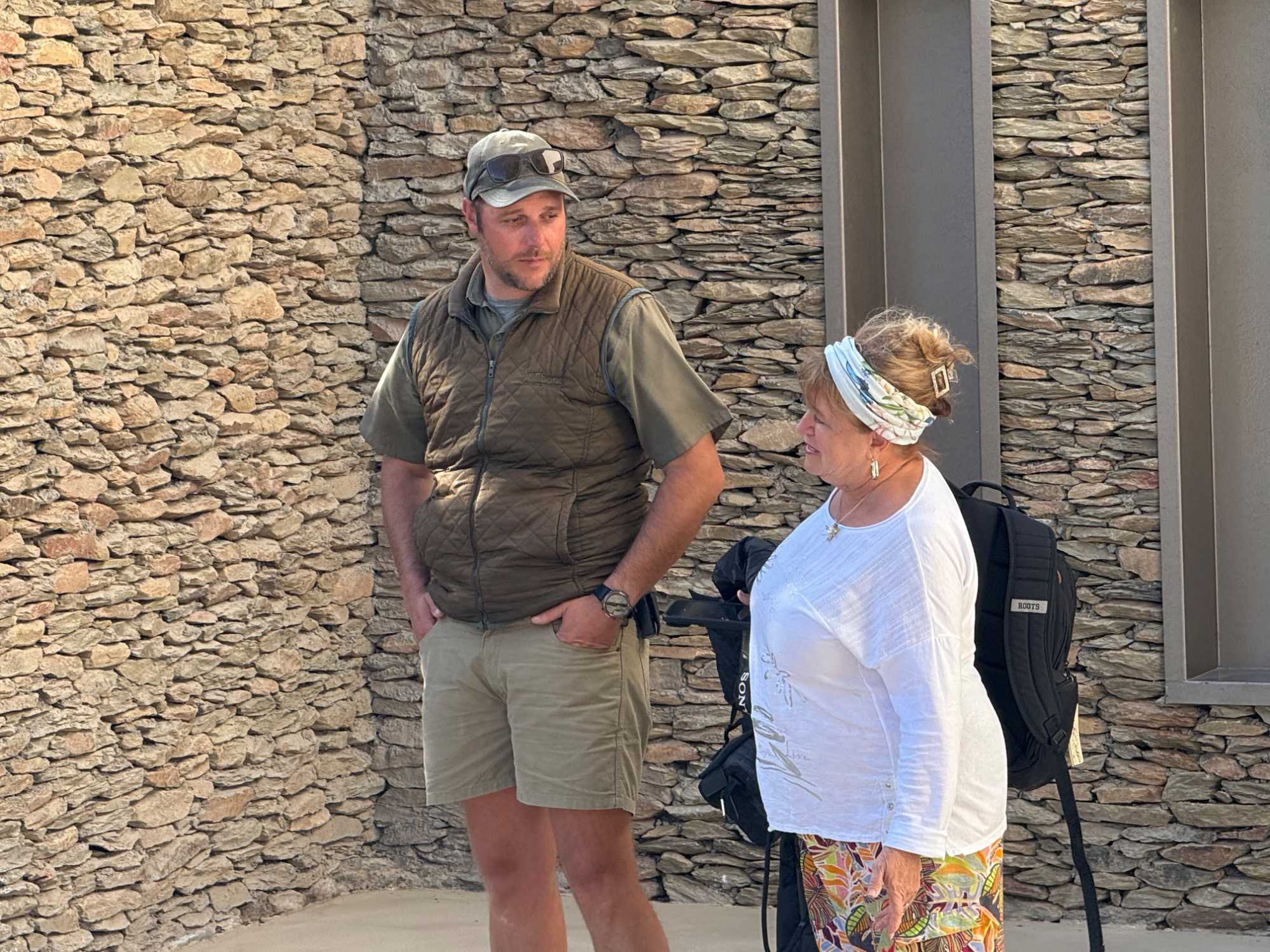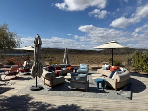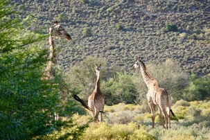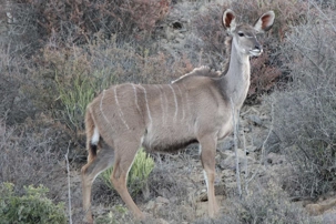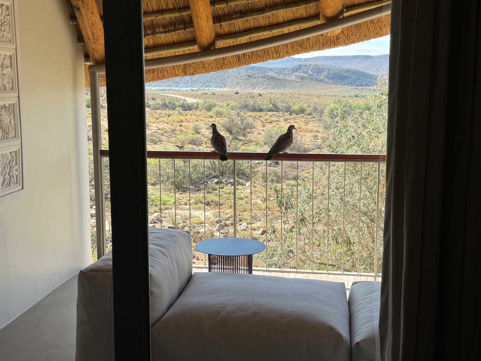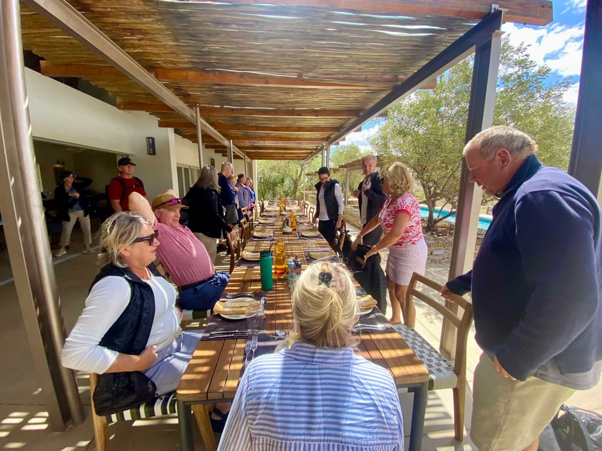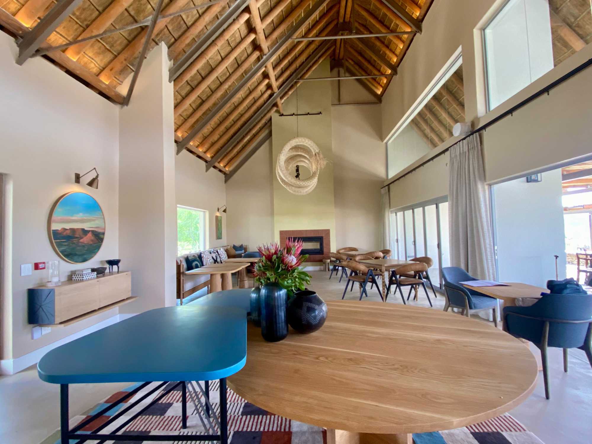 Vers 12 h 30, nous atteignons l’entrée de la réserve privée Sanbona, où nous passerons deux nuits. Le personnel du Gondwana Family Lodge nous accueille chaleureusement ; nous quittons notre autobus pour parcourir les 45 minutes qui nous séparent du lodge à bord de véhicules adaptés.