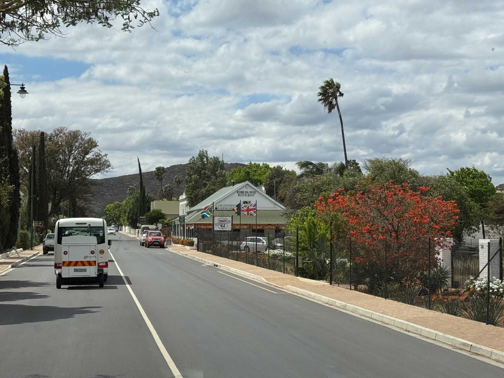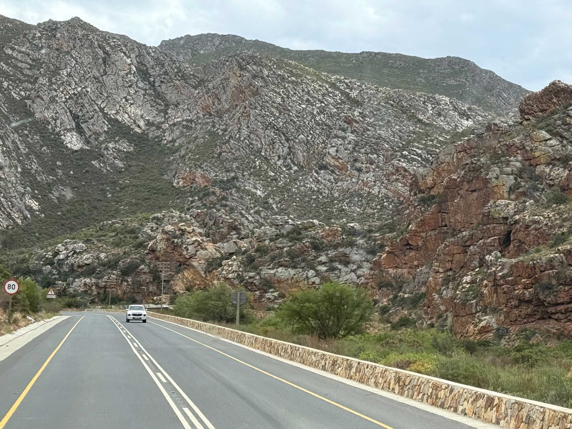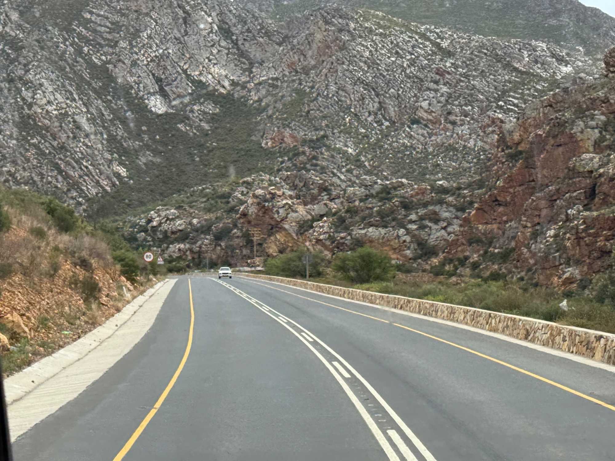Nous empruntons la fameuse Route 62, considérée comme la route panoramique la plus longue d’Afrique du Sud. Véritable sœur africaine de la Route 66, elle relie Cape Town à Port Elizabeth en traversant des vallées viticoles, des vergers et des montagnes spectaculaires. Chaque virage dévoile un nouveau décor : des hameaux colorés, des marchés d’artisans, des champs fleuris… Un trajet rempli d’authenticité et de beauté. 🌸🏞️
