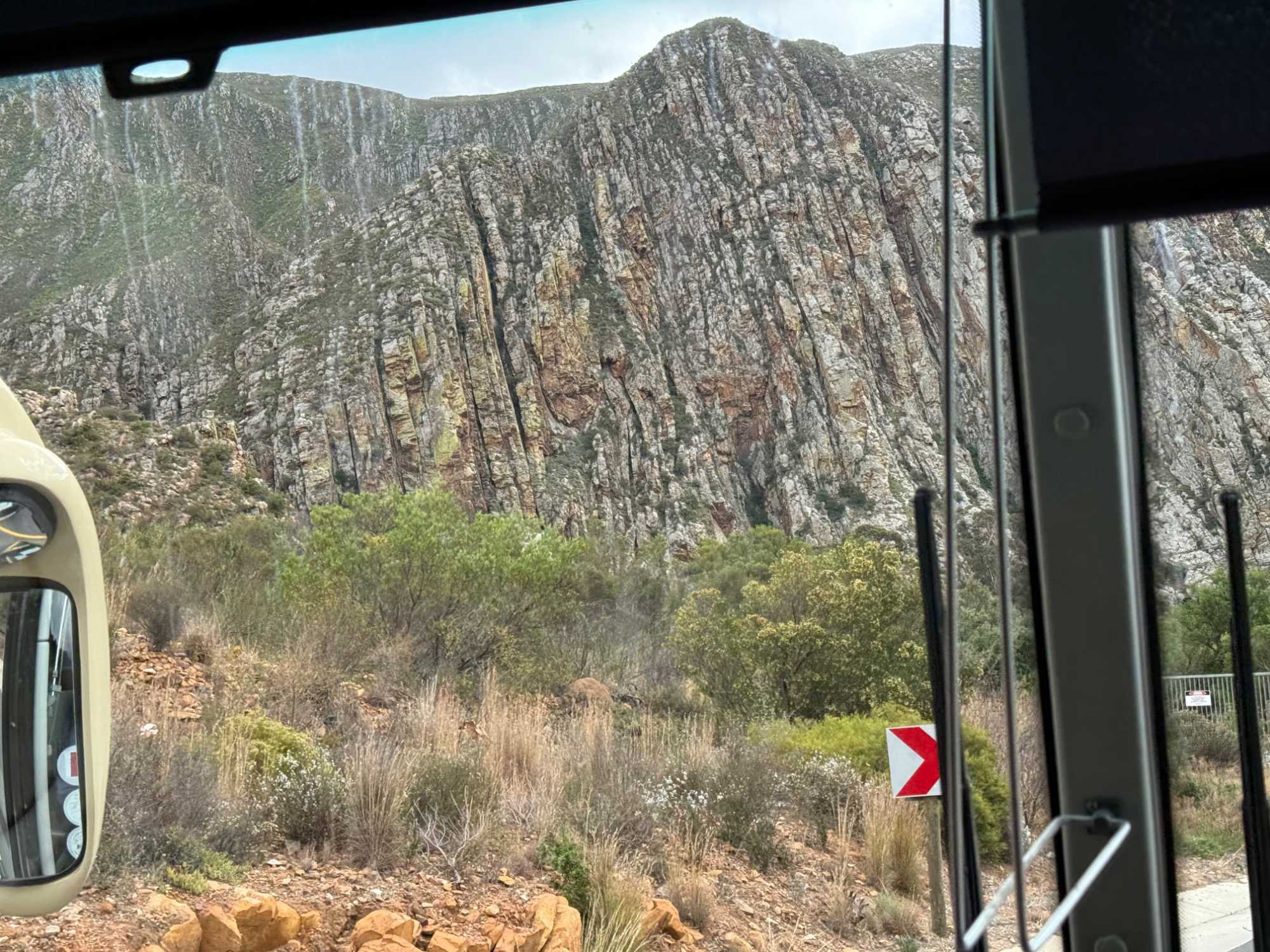 Ce matin, nous quittons notre magnifique hôtel The Marine Bay d’Hermanus vers 9 h, après un excellent petit-déjeuner. Le ciel est légèrement gris, la pluie est tombée durant la nuit, mais la température demeure agréable. Quelle chance nous avons eue la veille pour notre excursion aux baleines ! 🐋