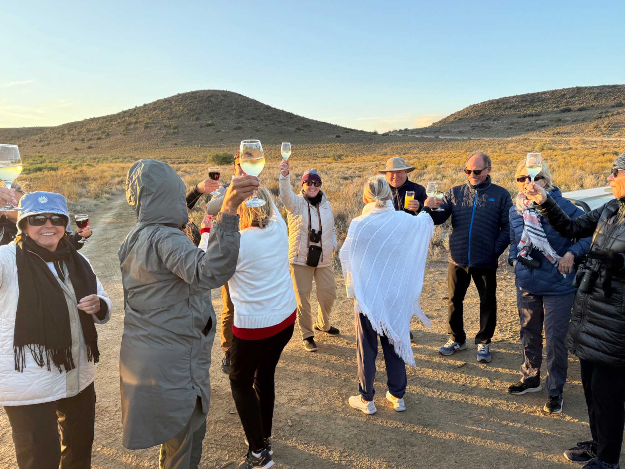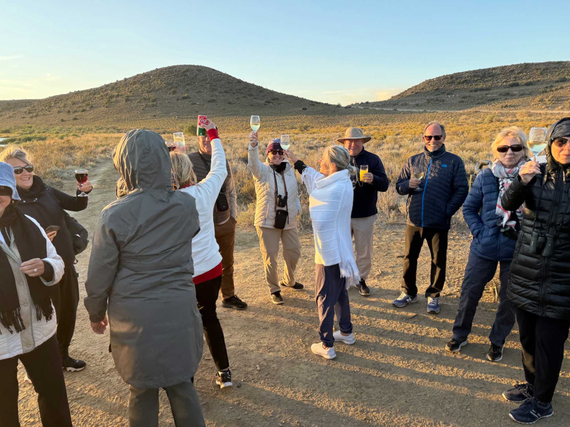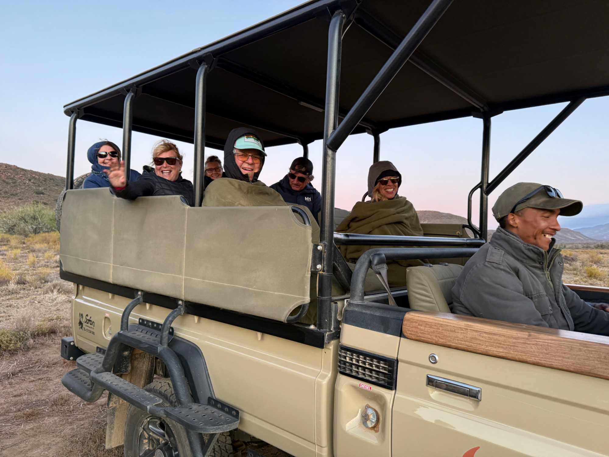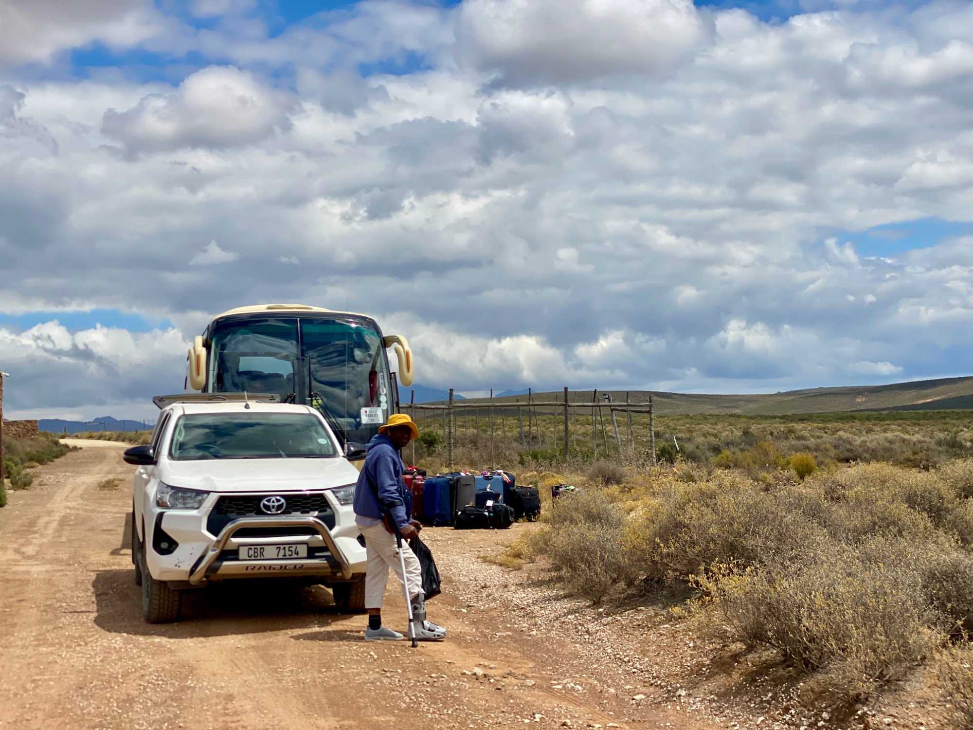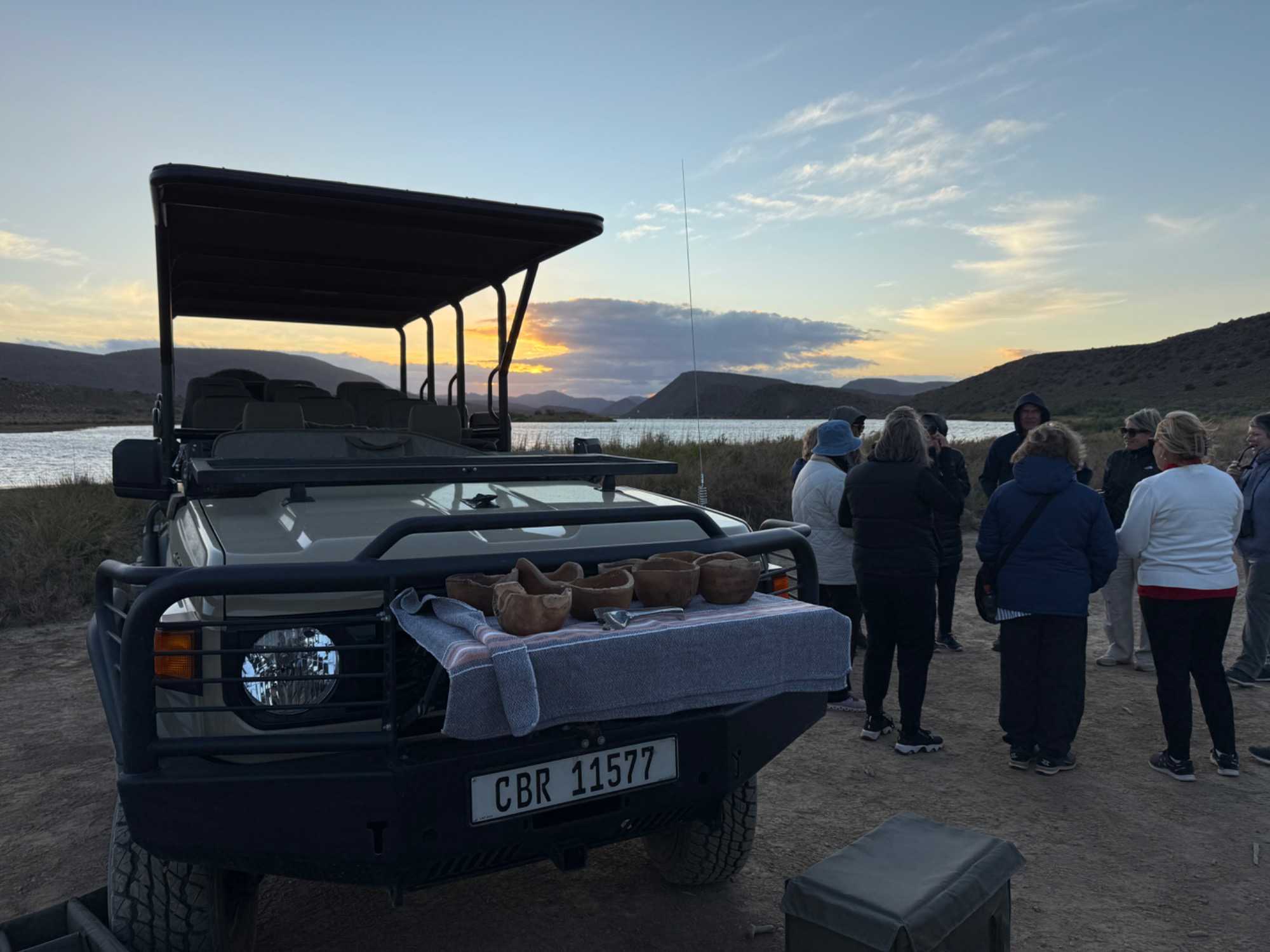 Valises prêtes, sourire aux lèvres, nous prenons la route vers Sanbona Wildlife Reserve, impatients de vivre notre tout premier safari africain ! Léonce, en pleine forme, commente le paysage, partage anecdotes et connaissances sur la végétation, les villages pittoresques et la vie locale.