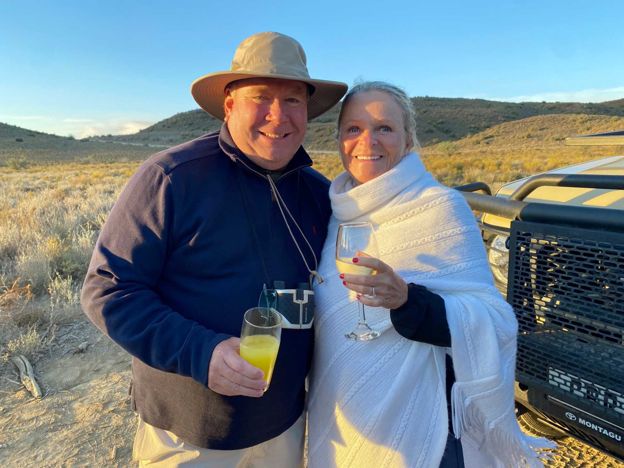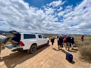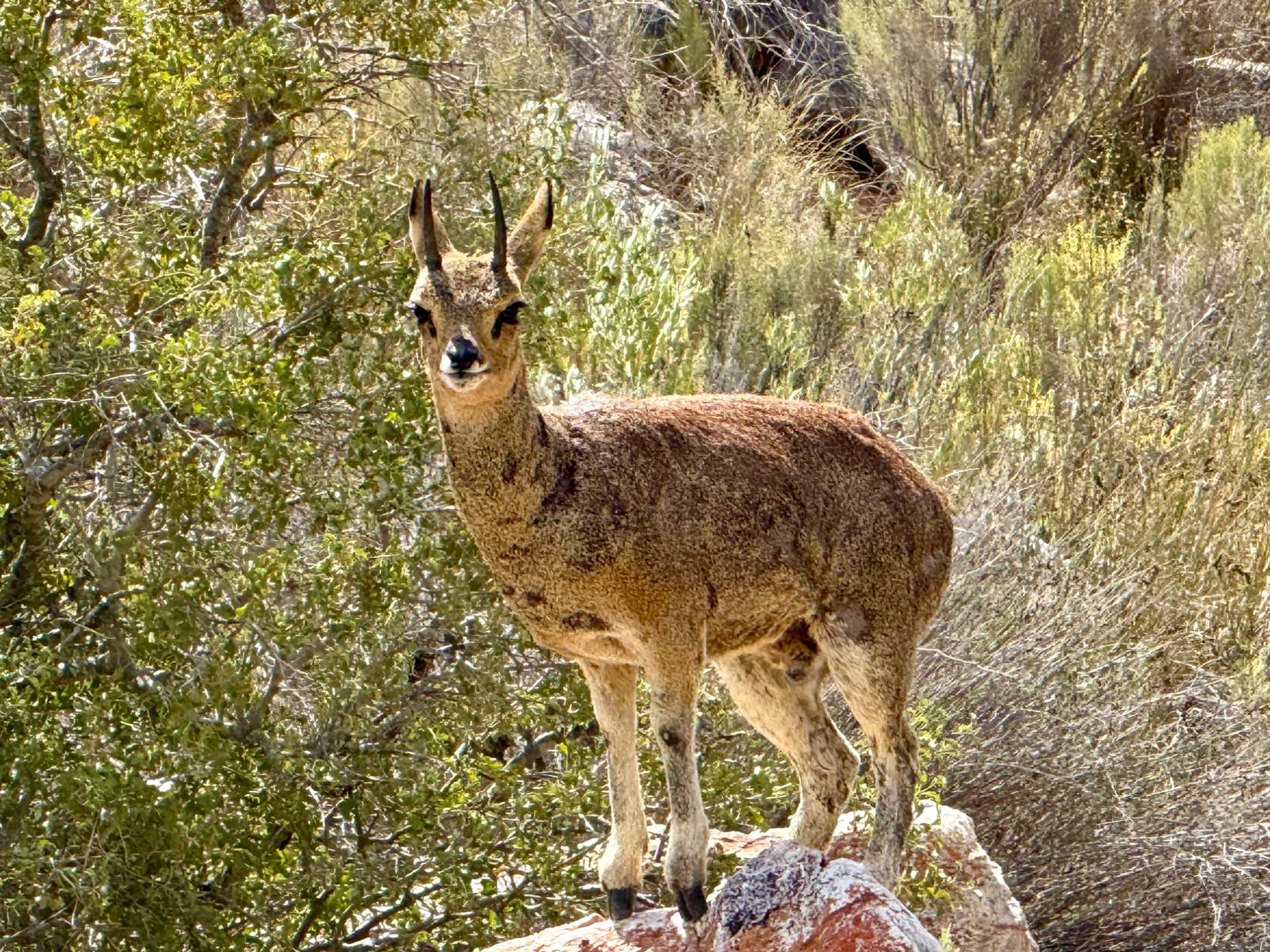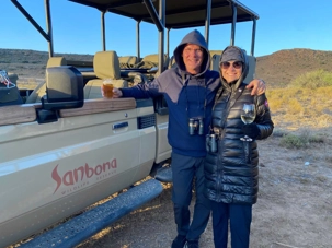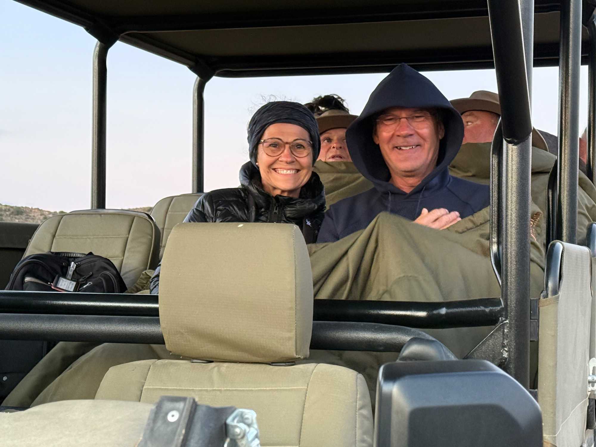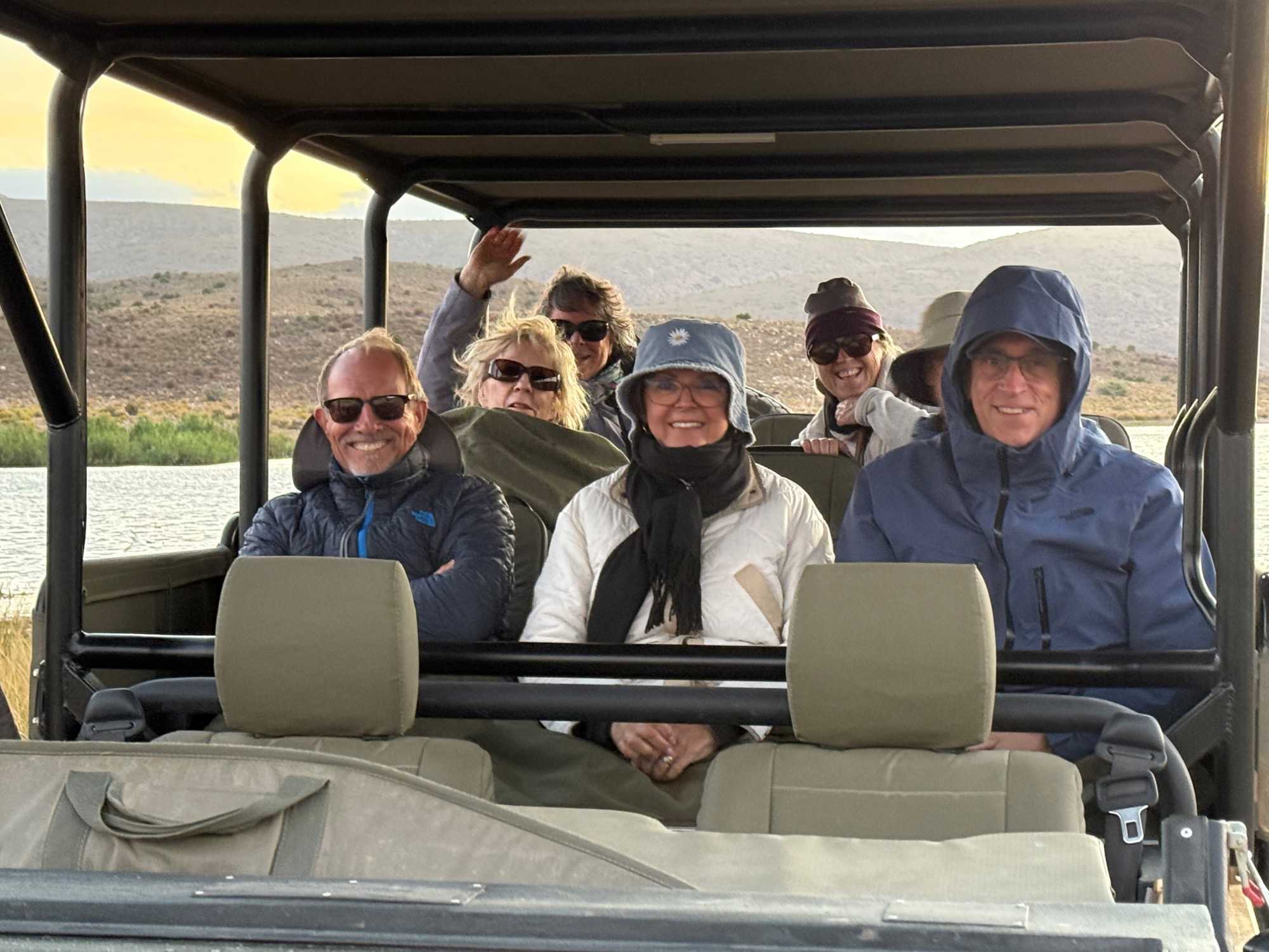 Valises prêtes, sourire aux lèvres, nous prenons la route vers Sanbona Wildlife Reserve, impatients de vivre notre tout premier safari africain ! Léonce, en pleine forme, commente le paysage, partage anecdotes et connaissances sur la végétation, les villages pittoresques et la vie locale.
