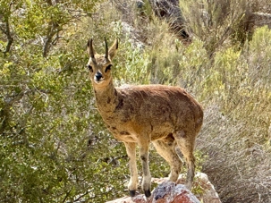 - Nous croisons aussi un gnou solitaire, des springboks bondissants et un superbe oiseau de proie au bec et aux pattes orange flamboyants. 🦅