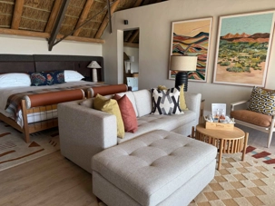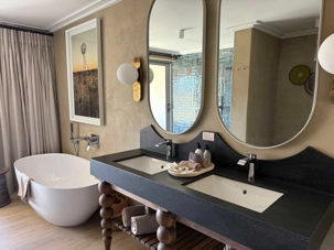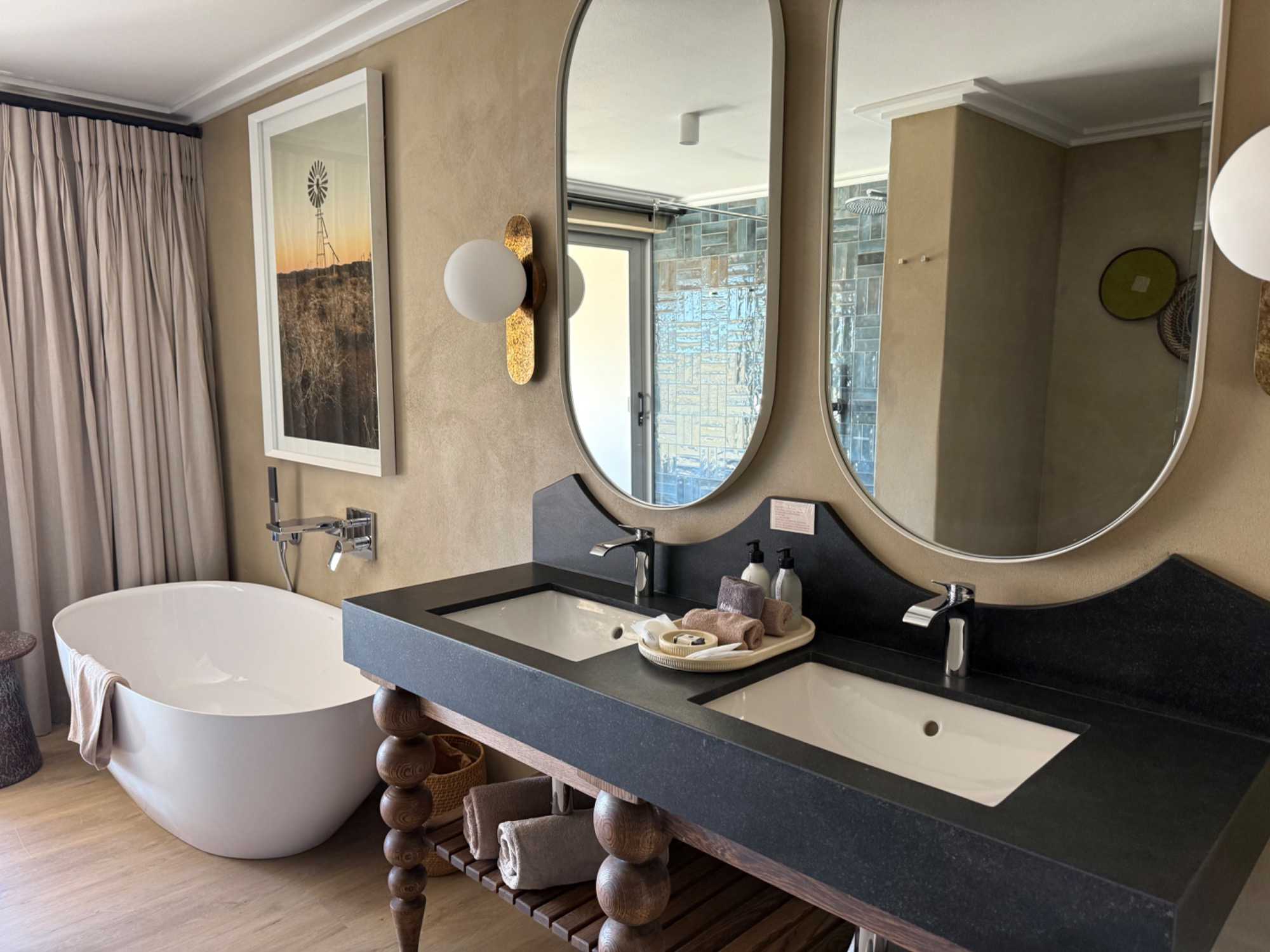 Le Sambona Lodge, un 5 étoiles privatisé pour notre groupe, est un vrai bijou. J’y étais venue il y a deux ans ; aujourd’hui, il a été rénové et se présente encore plus splendide : matériaux naturels, décor raffiné et atmosphère sereine. 🌿