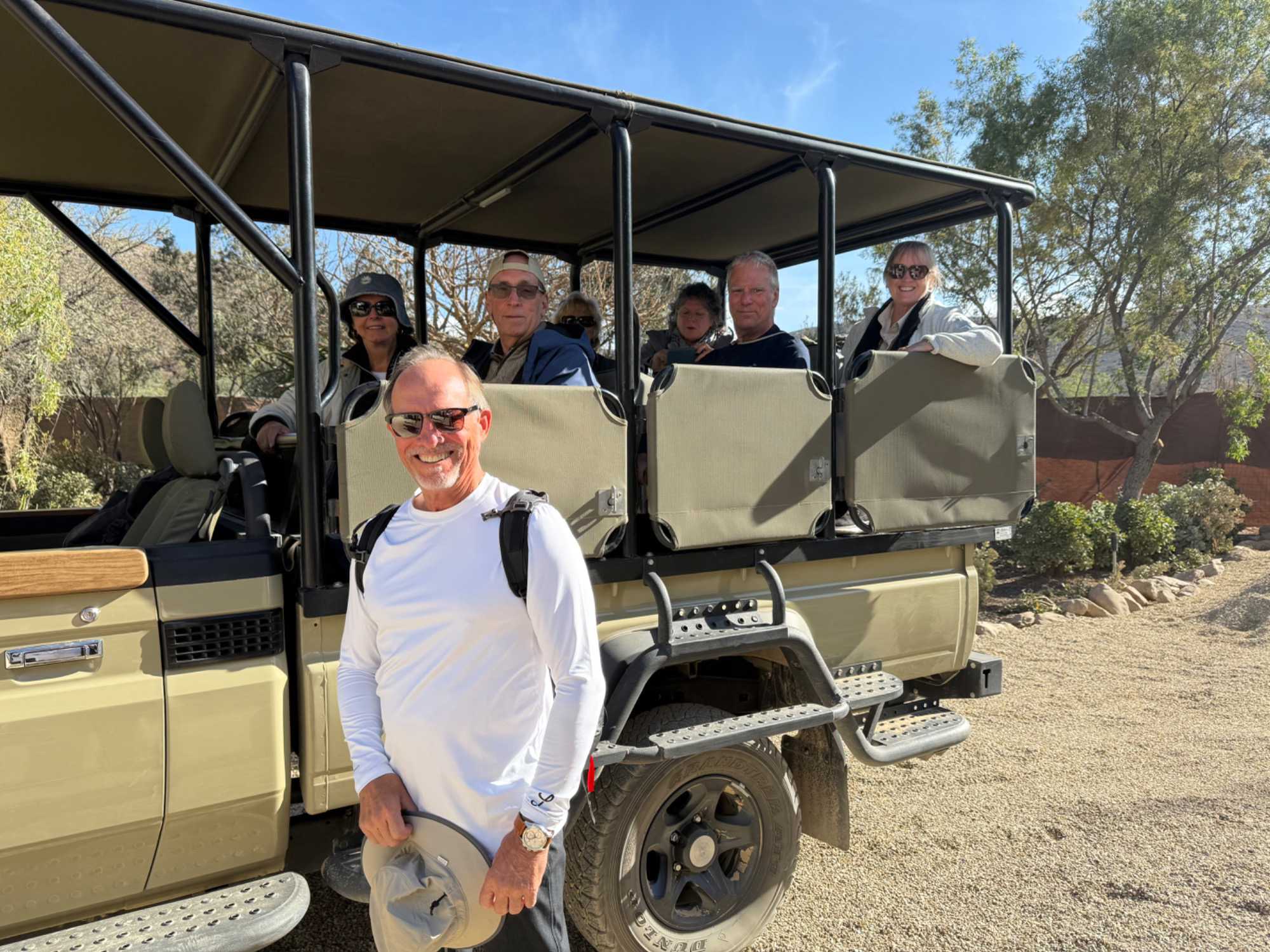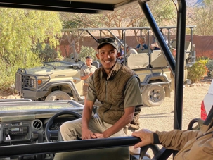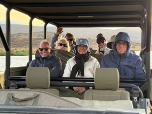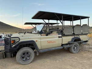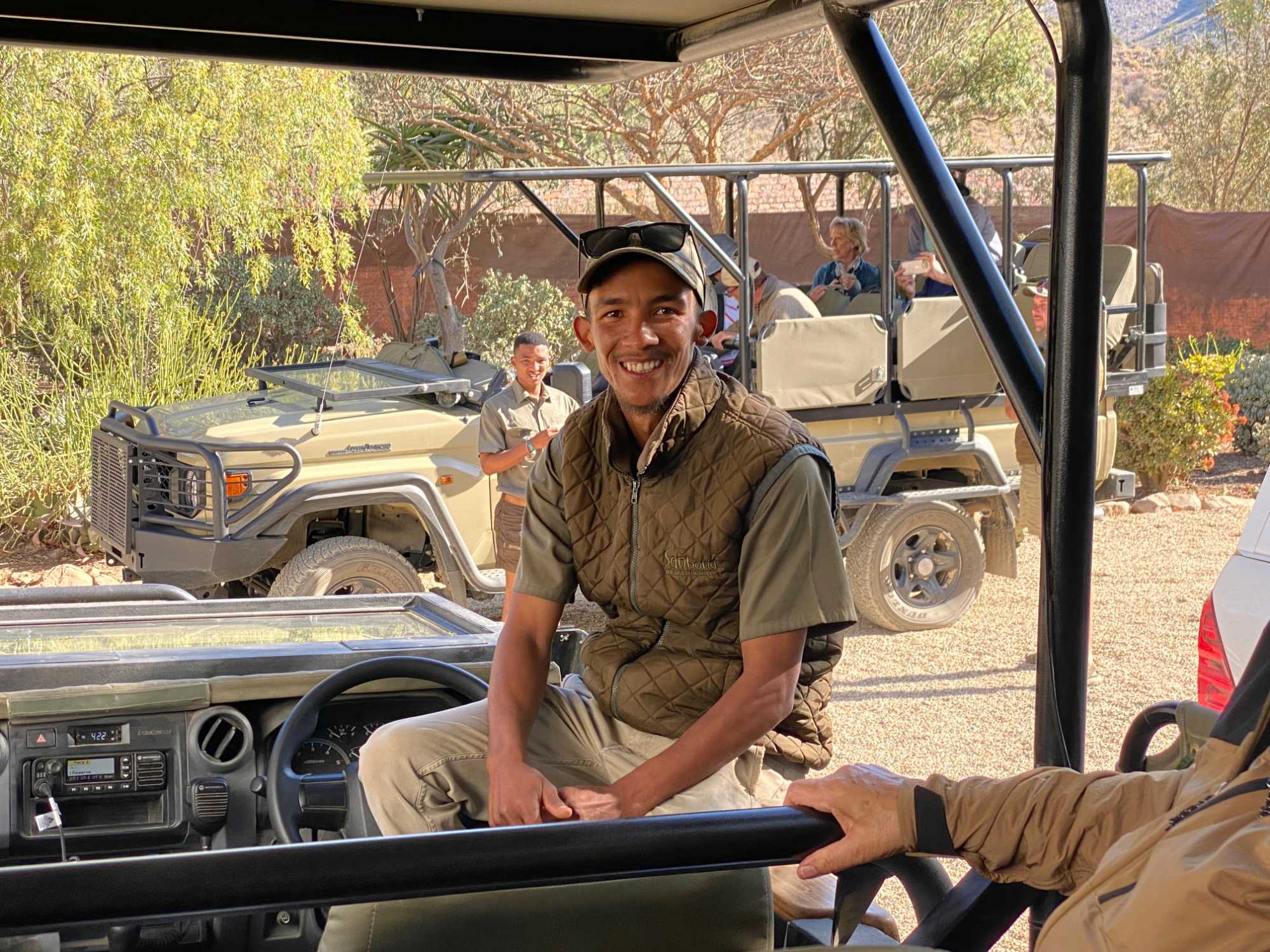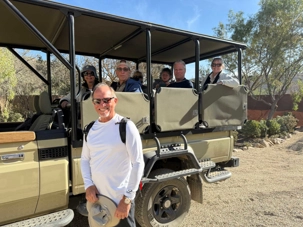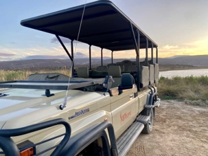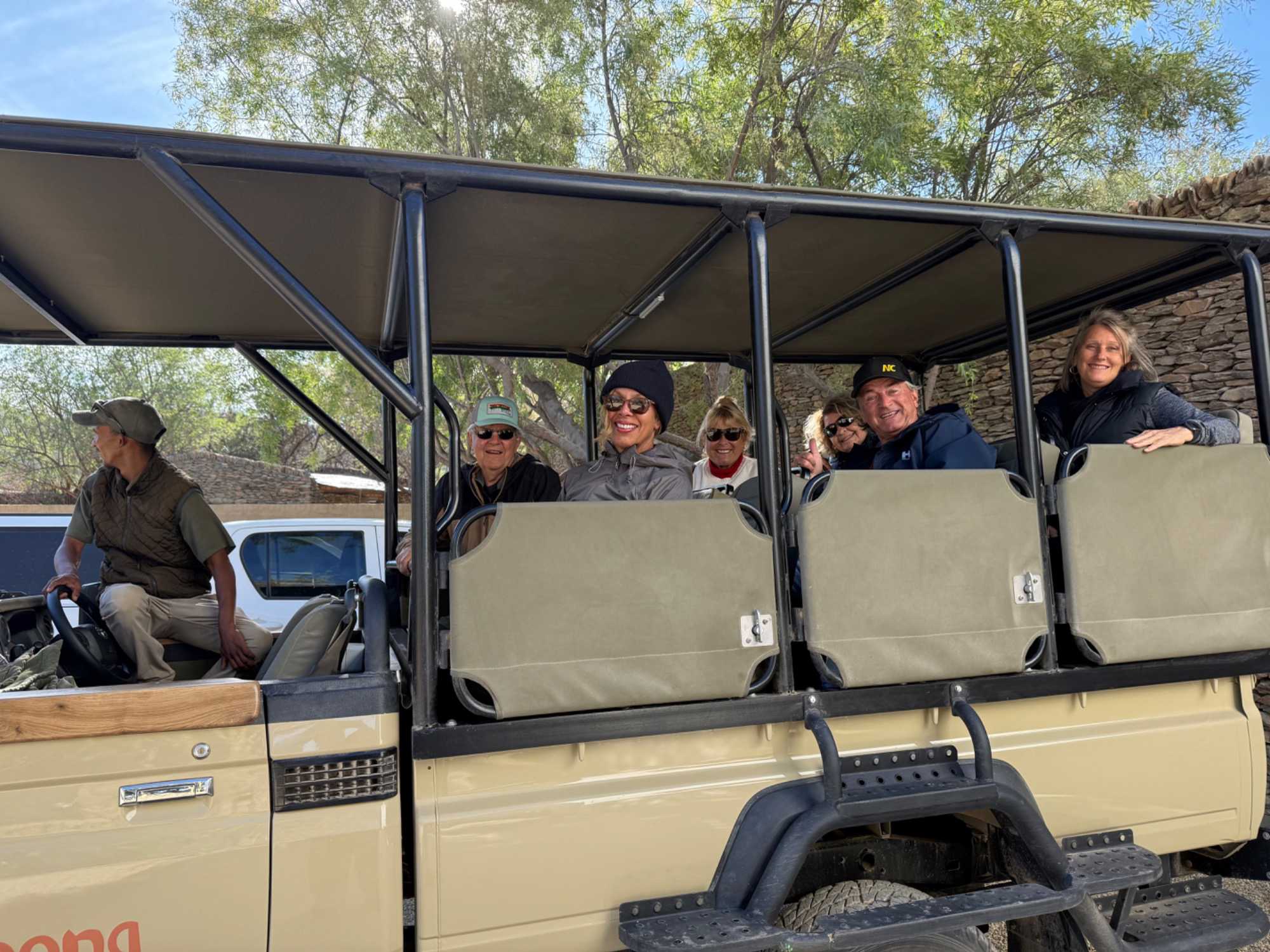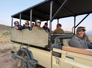 Nous sommes attendus pour un délicieux lunch en terrasse, face à un panorama infini. Après le repas et un moment de détente, tout le monde se prépare : à 16 h, nous embarquons pour notre premier safari !