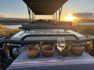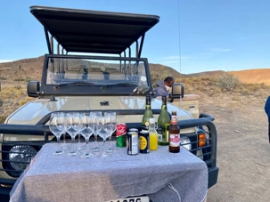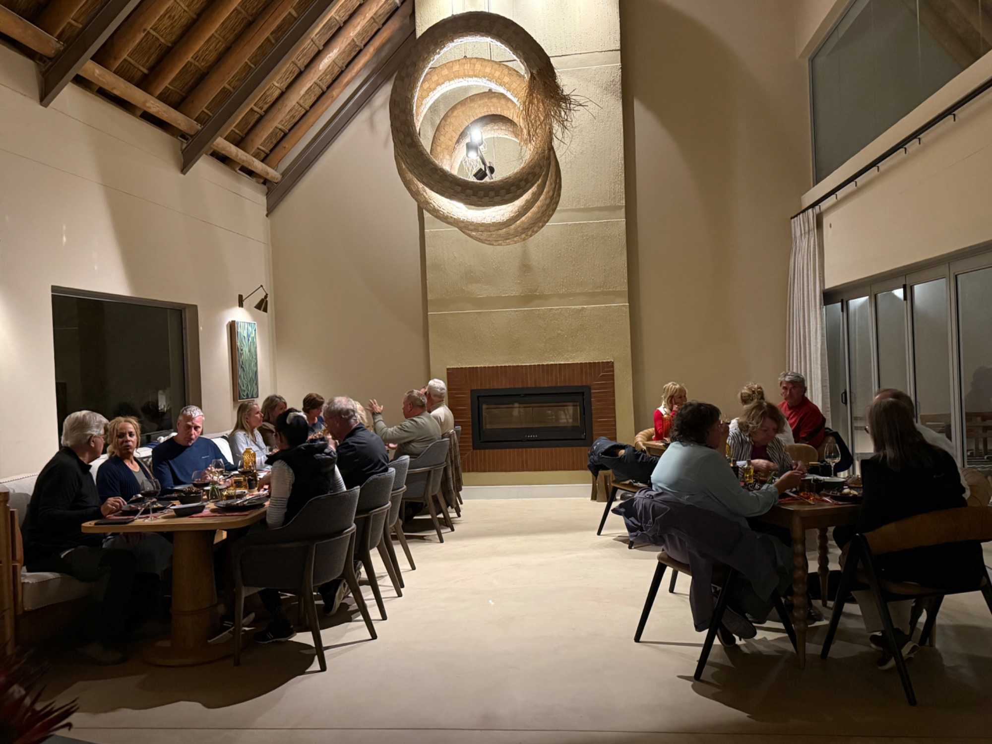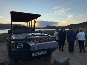 De retour au lodge, nous partageons un barbecue africain : viandes sauvages, crevettes géantes, légumes colorés et vins du pays. 🍷 Une soirée conviviale et savoureuse avant le repos bien mérité – car demain, réveil à 5 h 30 pour repartir vers de nouvelles découvertes ! 🌄